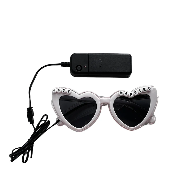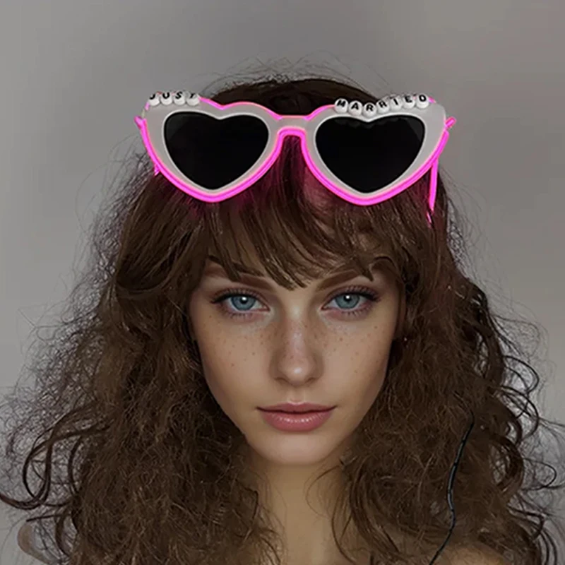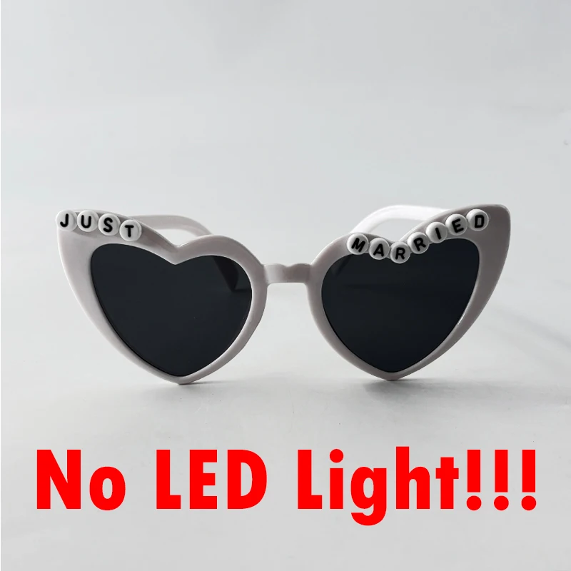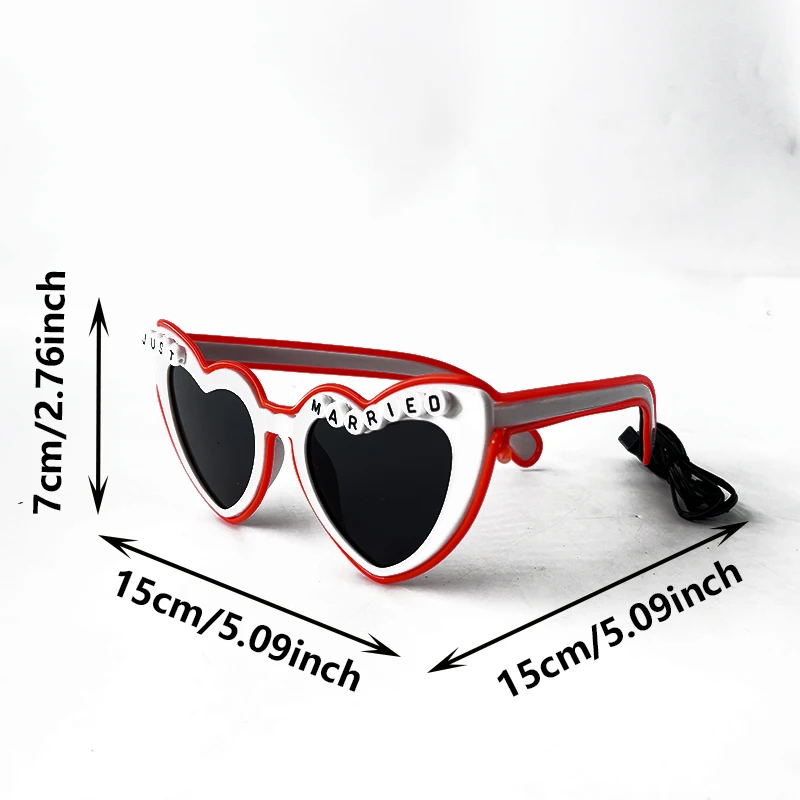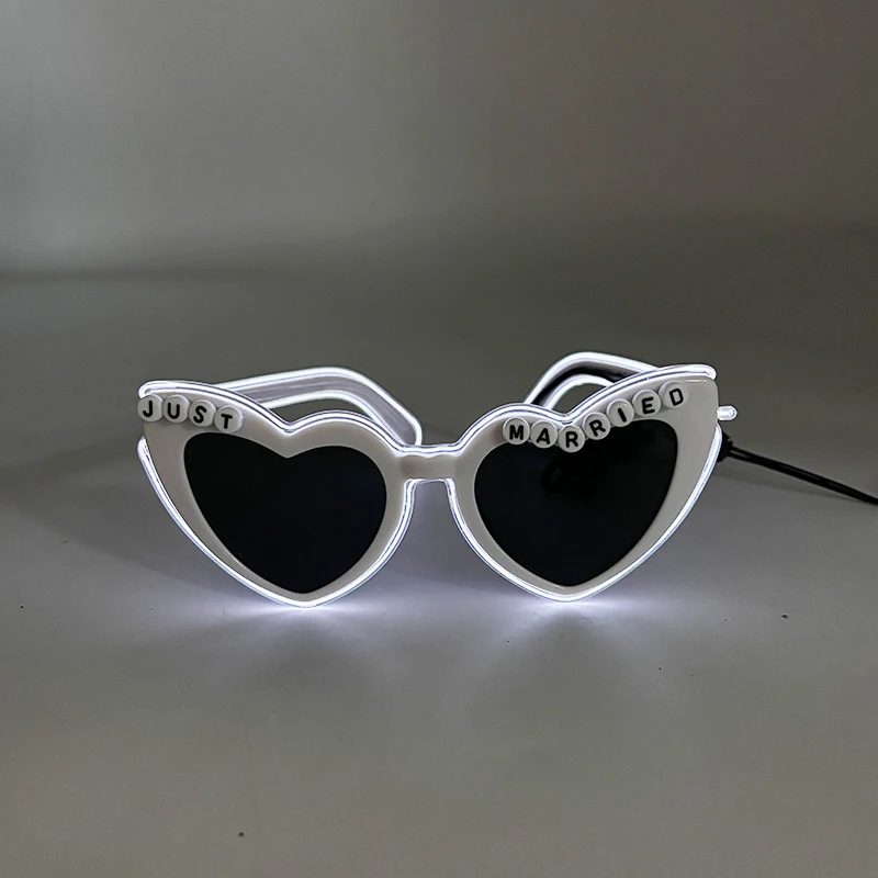 Branco casado led óculos luminosos em forma de coração el neon óculos decorativos noivado casamento chá de panela adereços