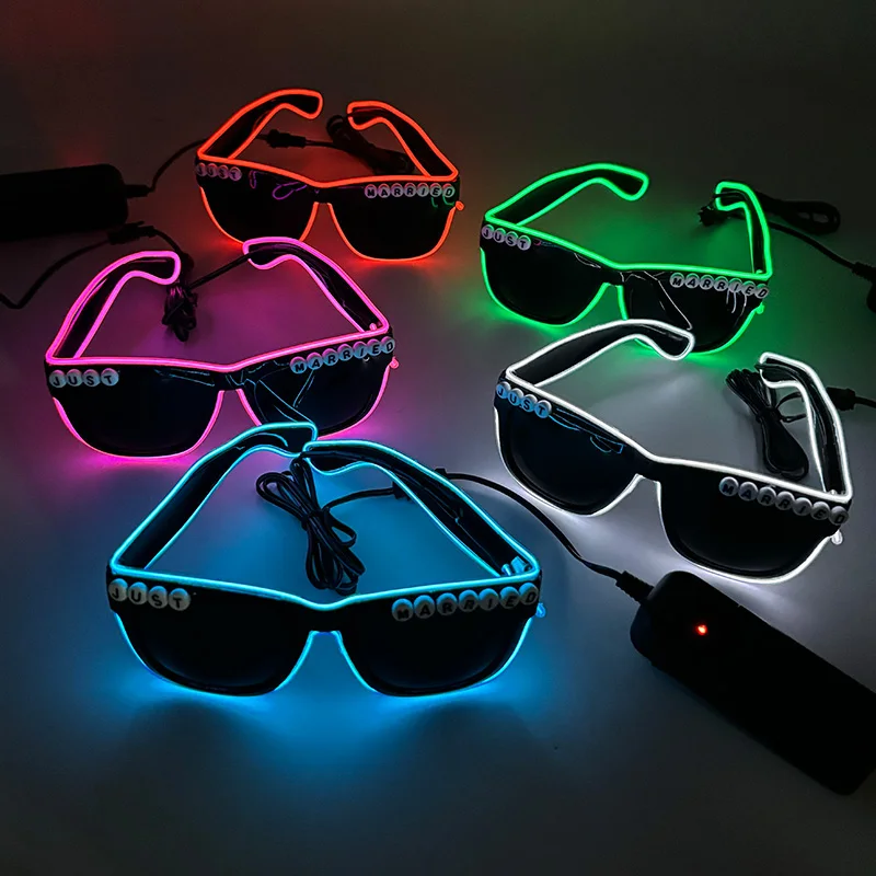 Material: moldura de plástico e óculos de lente de plástico + fio EL + placa PCB