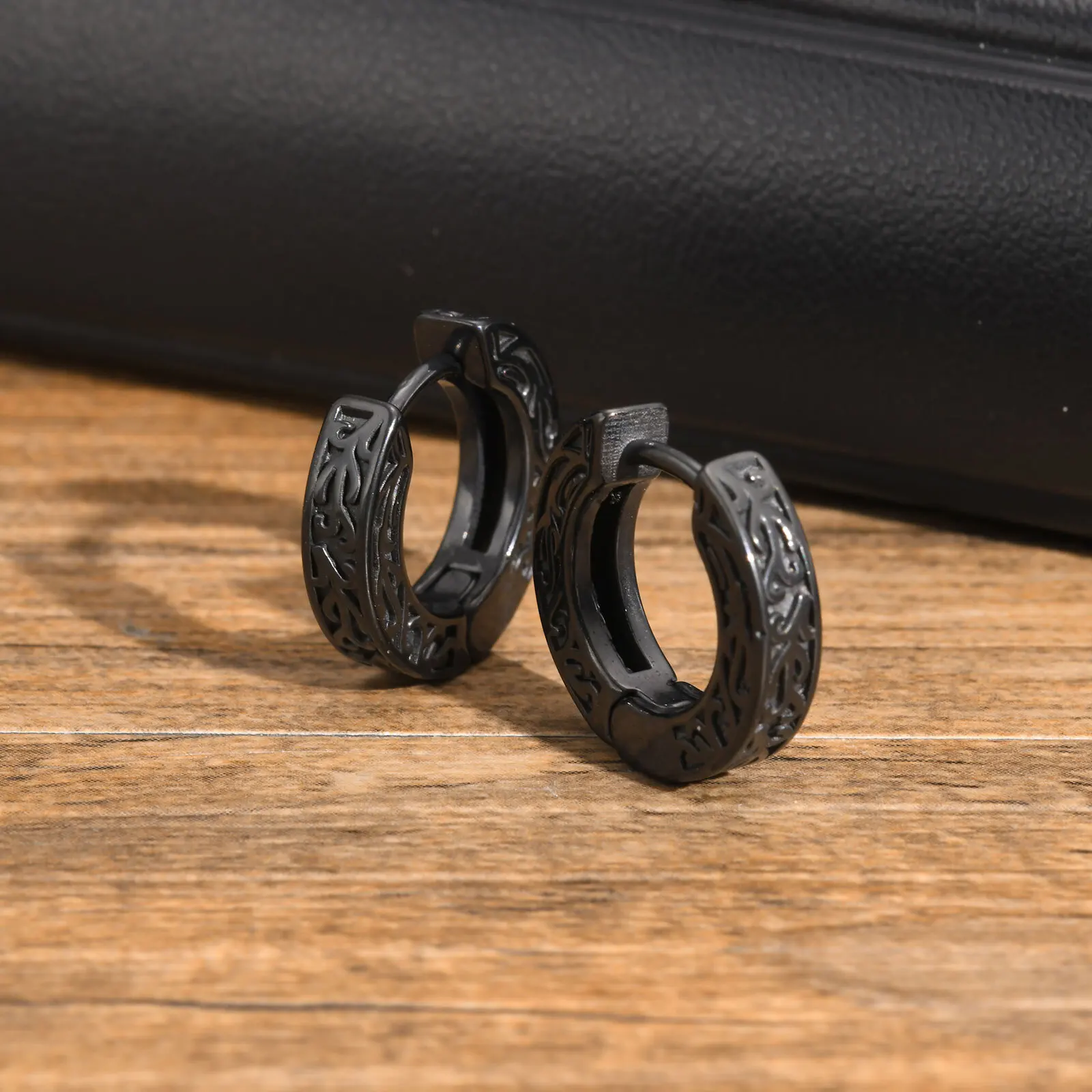 Brincos de argola totem para homens adolescentes, brincos Huggies de aço inoxidável preto Anit Allergy, joias de orelha punk rock