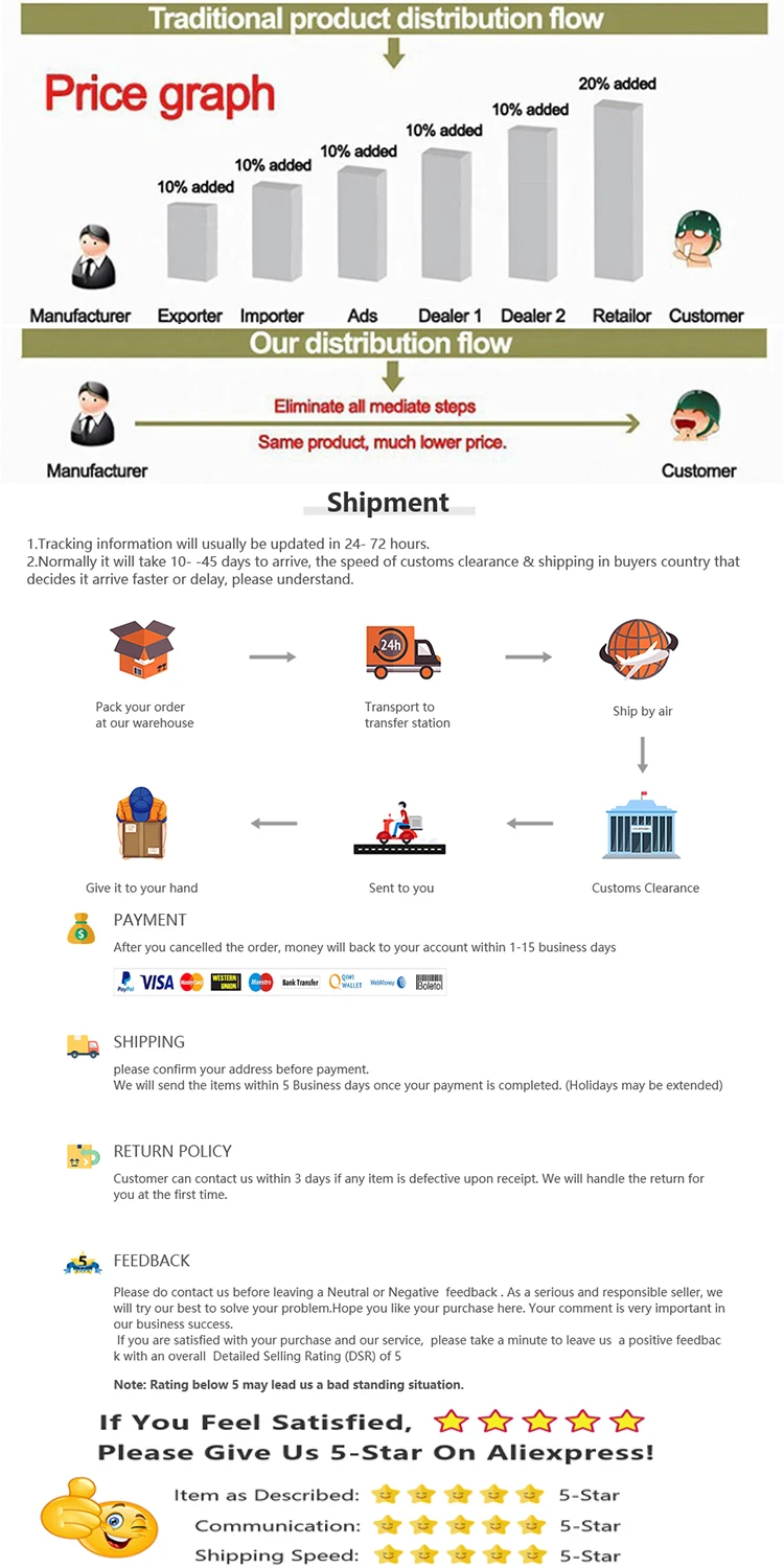 2. Please contact us if you are not satisfied with the item after received, we would offer you a satisfactory solution before your leave us neutral or negative feedback.