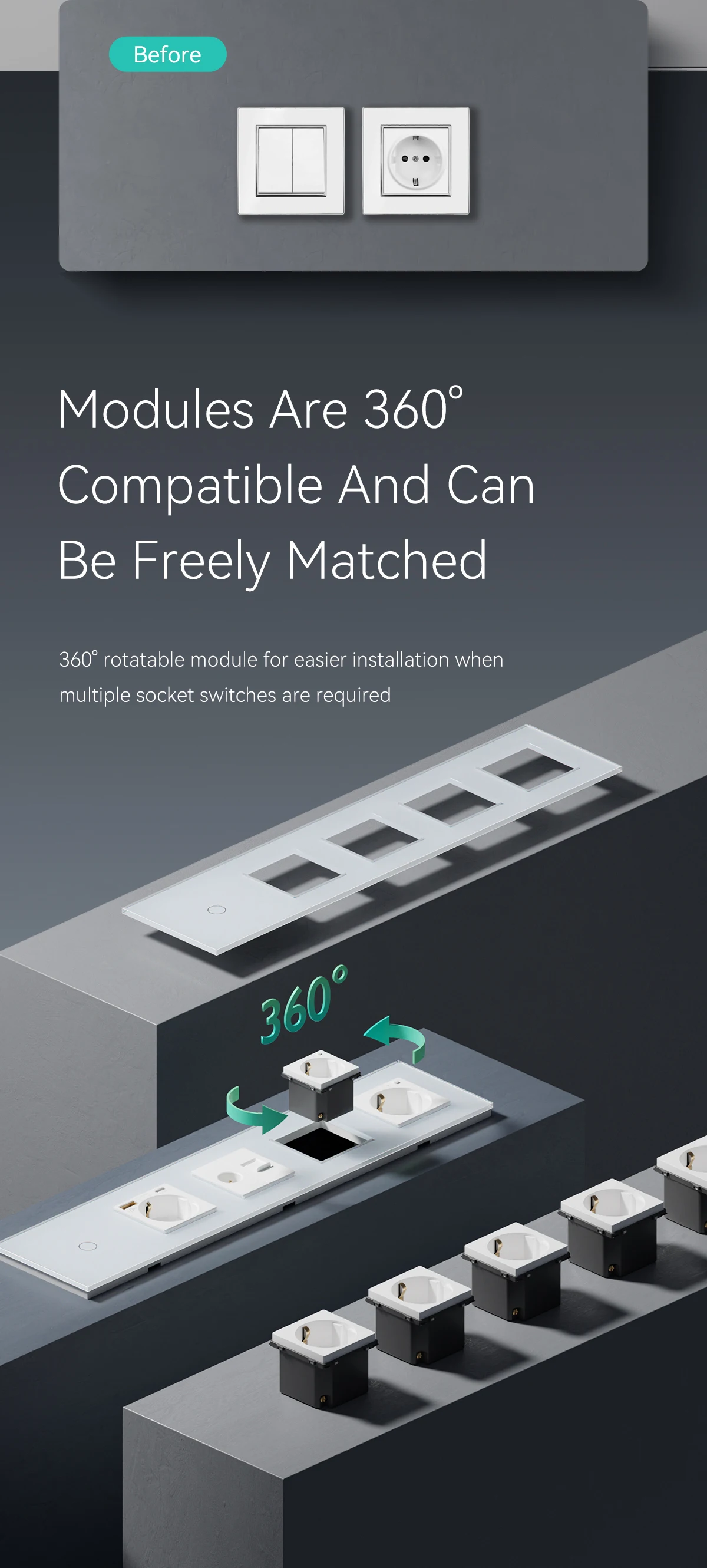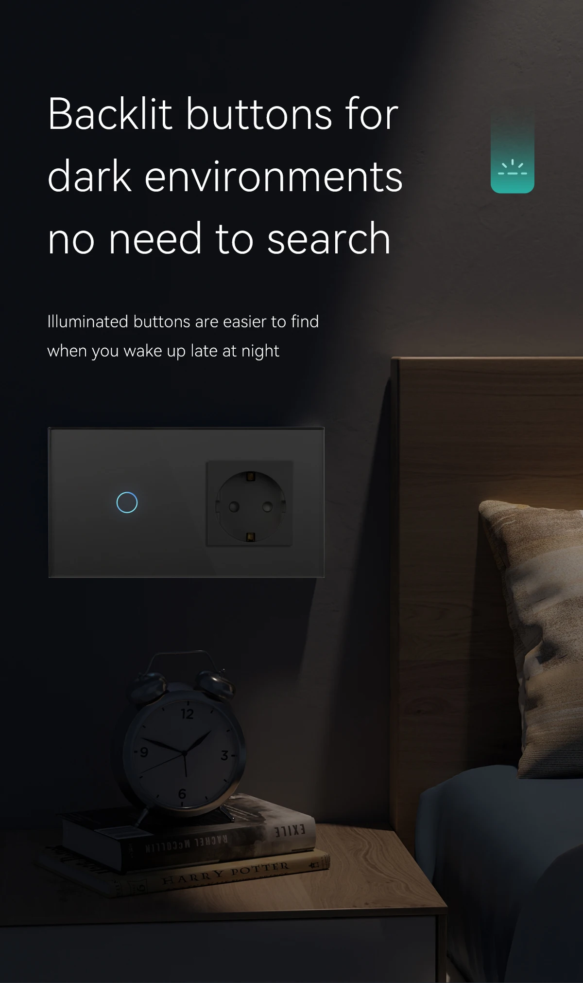 Material: Glass Panel &Iron Plate & Plastic Switch Module