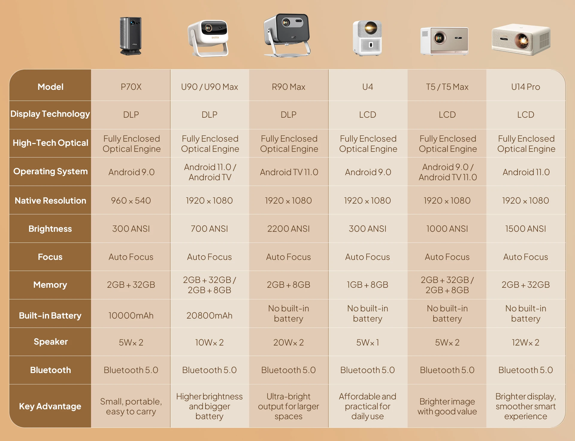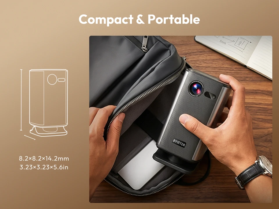 - > BYINTEK P70X Mini Projetor Portátil com Bateria Embutida 4K Suporte 3D Wifi para Filmes Ao Ar Livre Noite Projetores de Home Theater