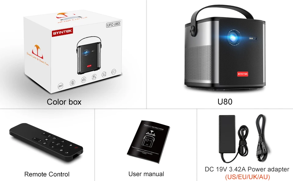 - > BYINTEK U80 Max Projetor 3D 4K Cinema Android 11.0 WiFi Mini Portátil 1080P Projetor de Vídeo DLP de Home Theater com Bateria