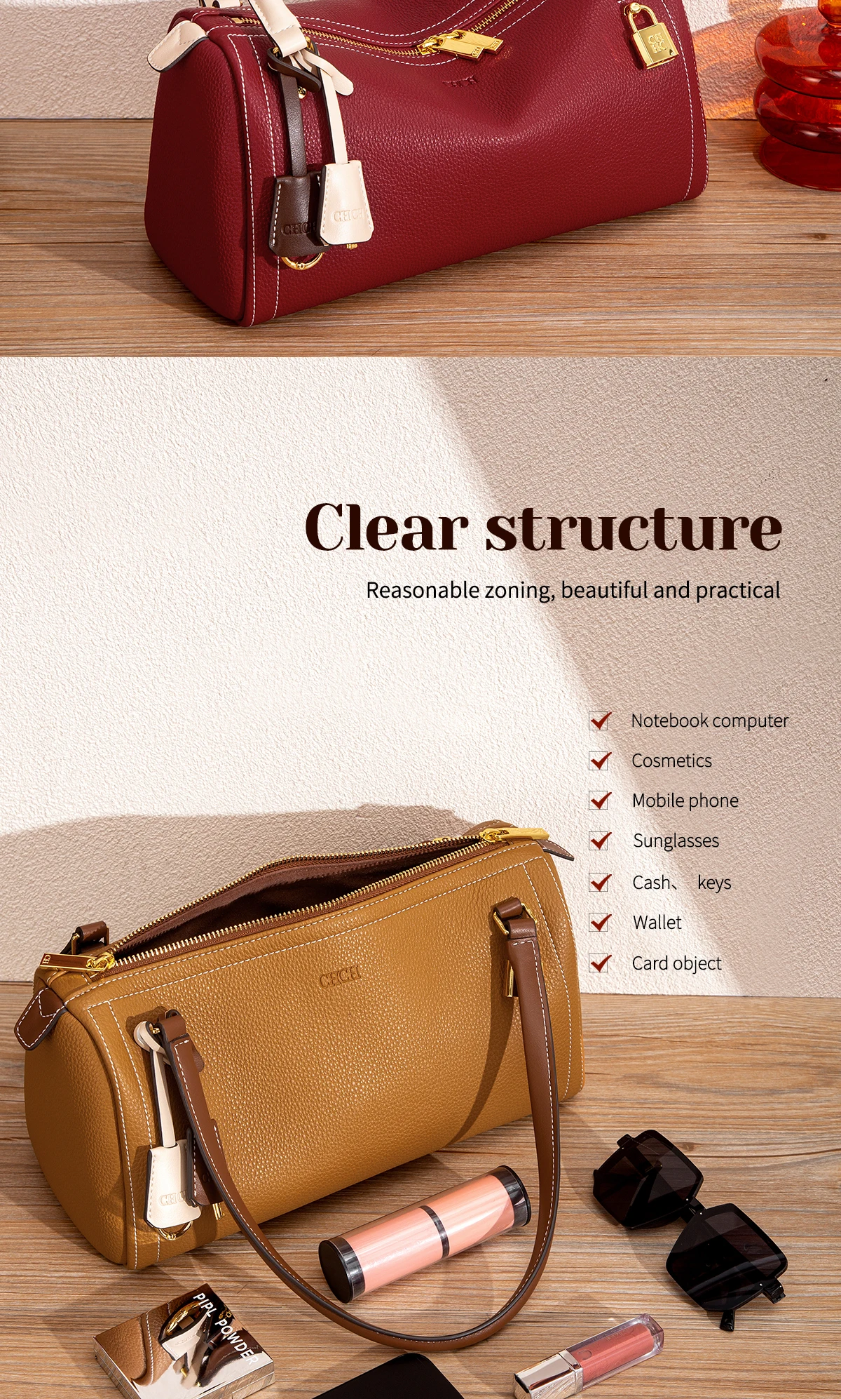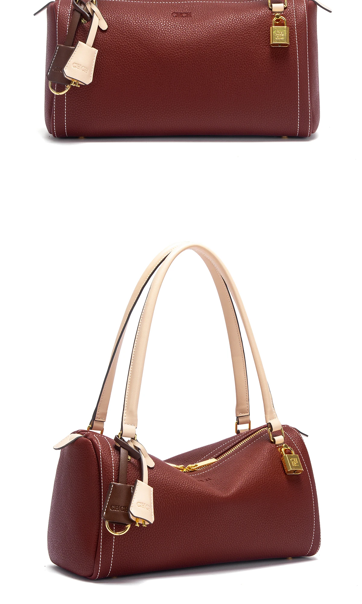 C-H bolsa de ombro feminina boston saco outono novo simples marrom alta qualidade textura bolsas