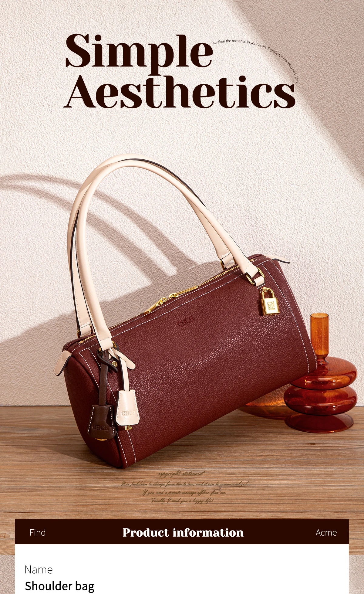 - > C-H bolsa de ombro feminina boston saco outono novo simples marrom alta qualidade textura bolsas