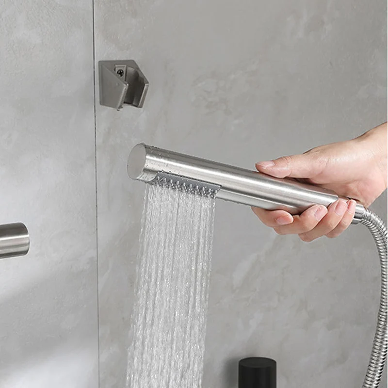 Cabeça de chuveiro cilíndrica portátil de aço inoxidável, conjunto de cabeça de chuveiro universal para casa e hotel