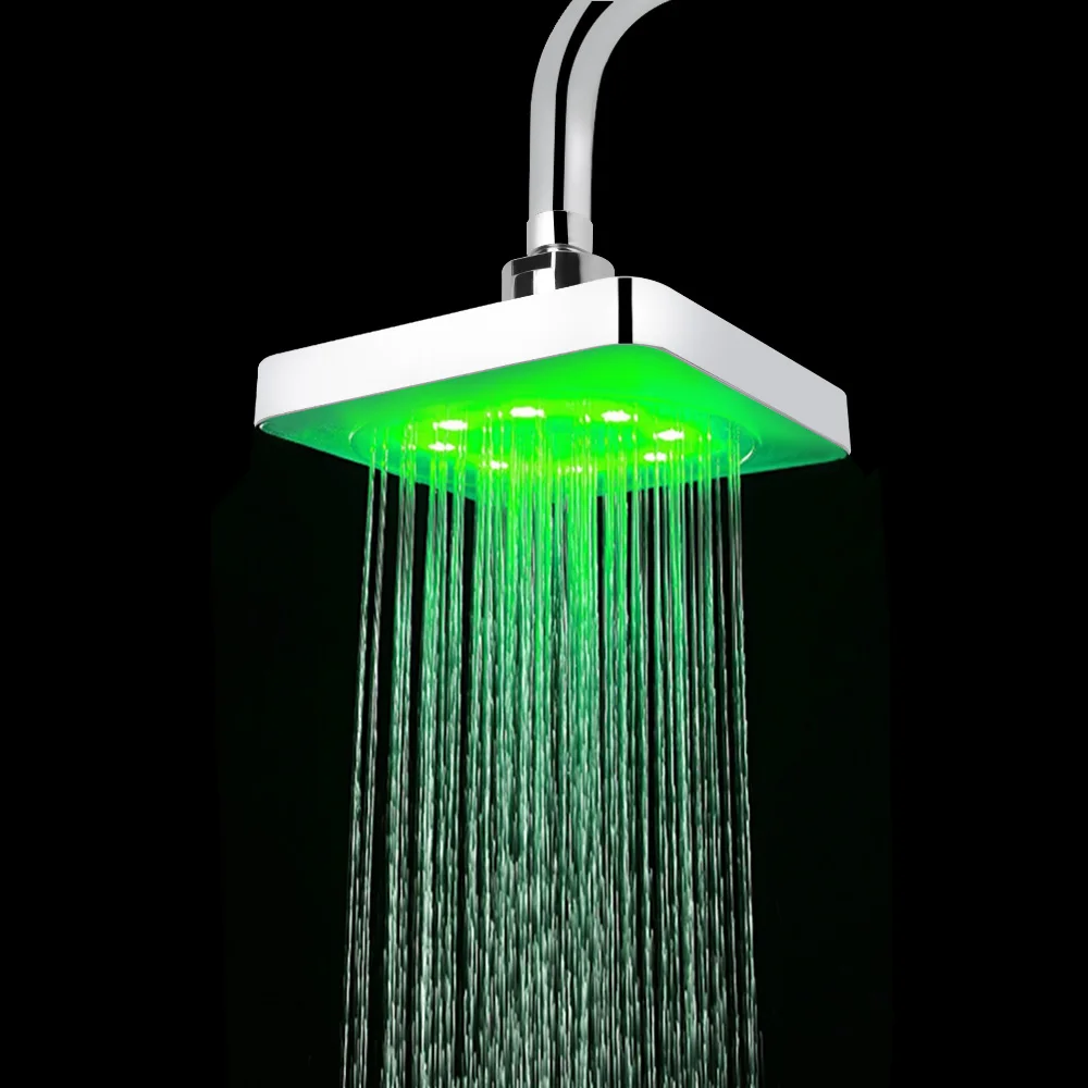 Cabeça de chuveiro led chuvas spray superior ultra-silencioso 3 cores sensor de temperatura 7 cores mudança gradual quadrado fixo chuveiro