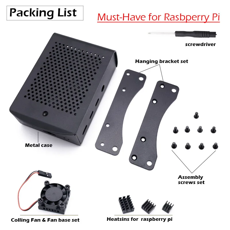 - > Caixa de alumínio Raspberry Pi 4 Modelo B com kit de dissipadores de calor de ventilador de resfriamento, caixa de metal com ventilador de resfriamento integrado (Pi 4B não incluído)