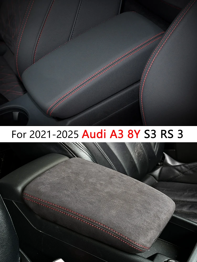 - > Caixa de apoio de braço de controle central capa protetora de camurça para audi a3 8y acessórios 2021 2022 2023 2024 2025 audi s3 8y e rs 3 8y