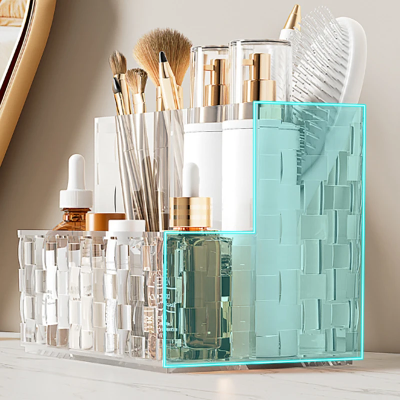 - > Caixa de armazenamento de mesa transparente luz luxo multi-grade organizador de maquiagem caixa de cosméticos de grande capacidade suporte de controle remoto