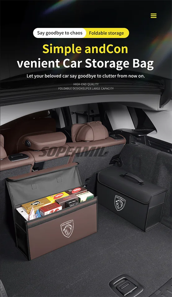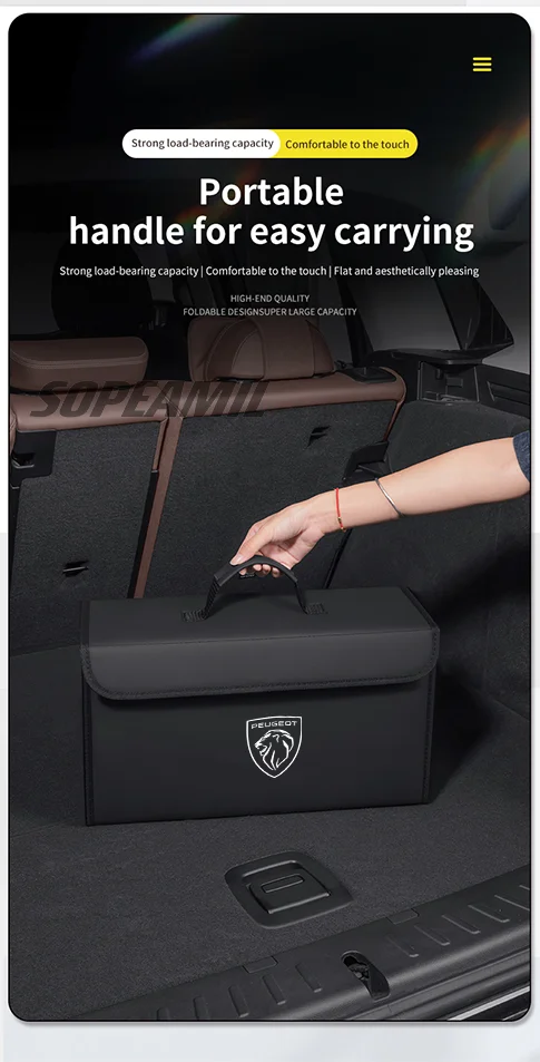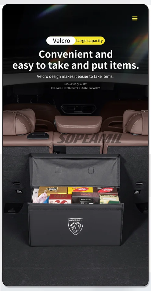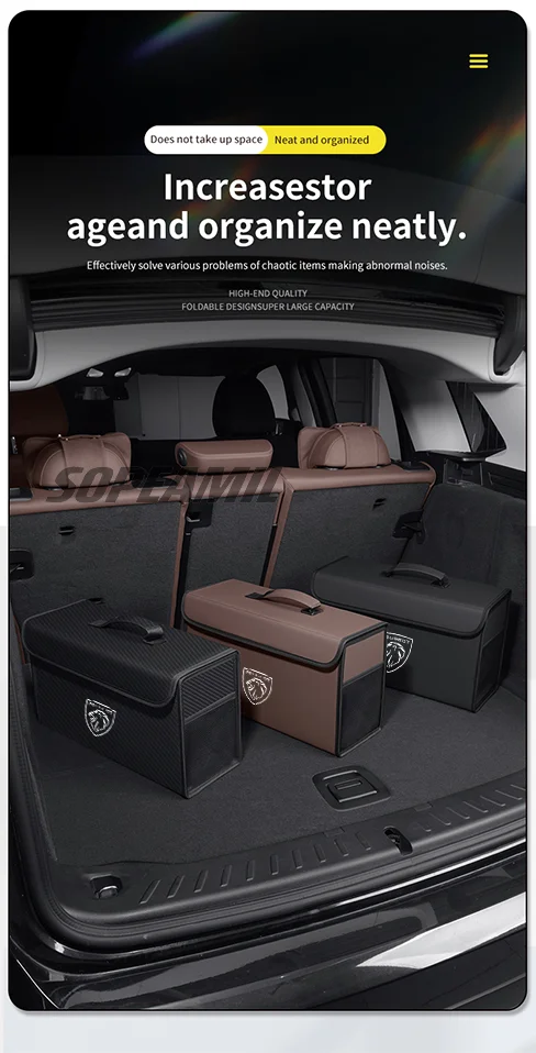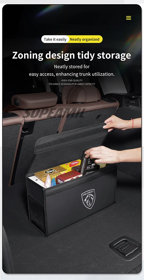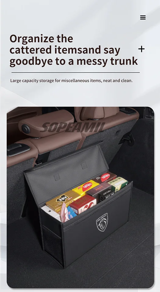 Caixa de armazenamento e organização do porta-malas do carro para Peugeot 106 108 206 207 208 301 307 308 406 407 408 508 607 2008 3008 5008 RCZ Rifter
