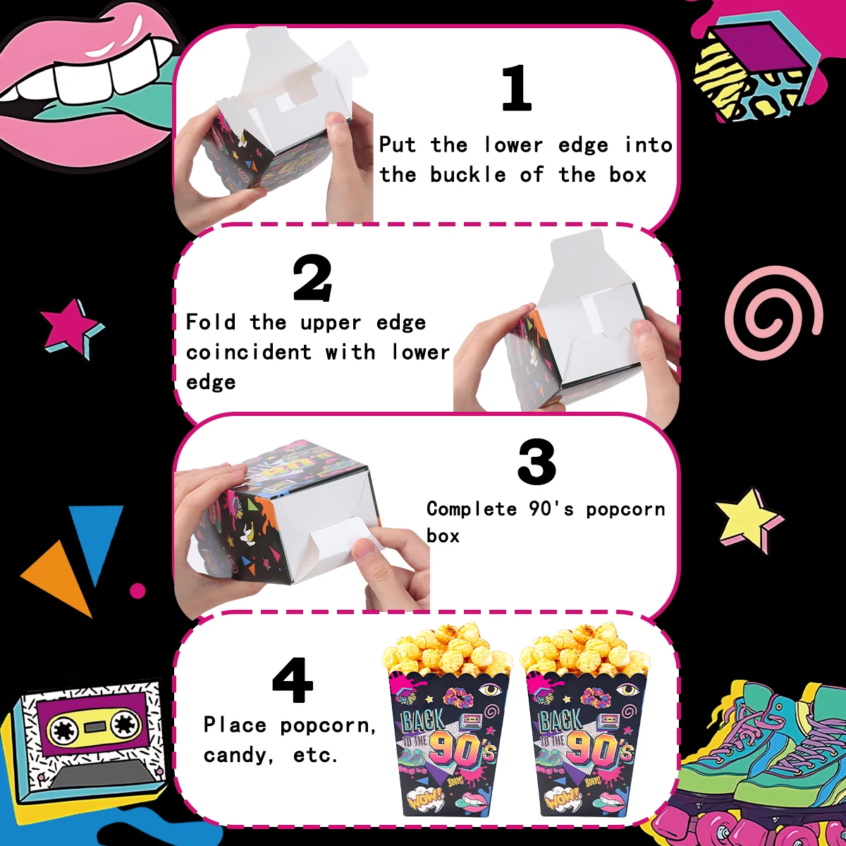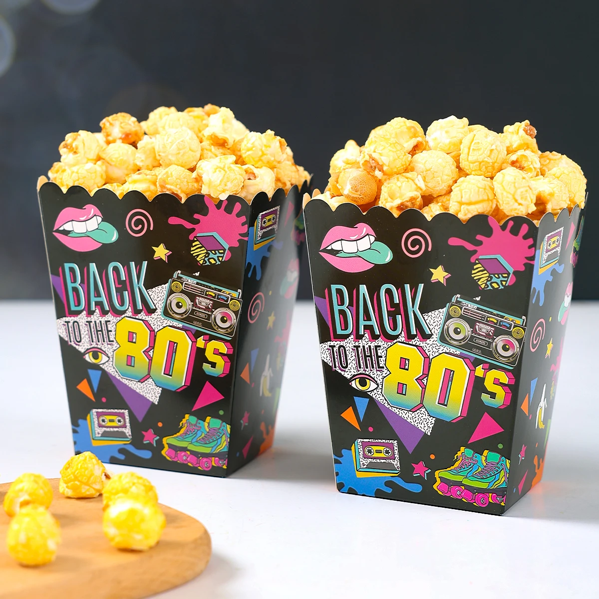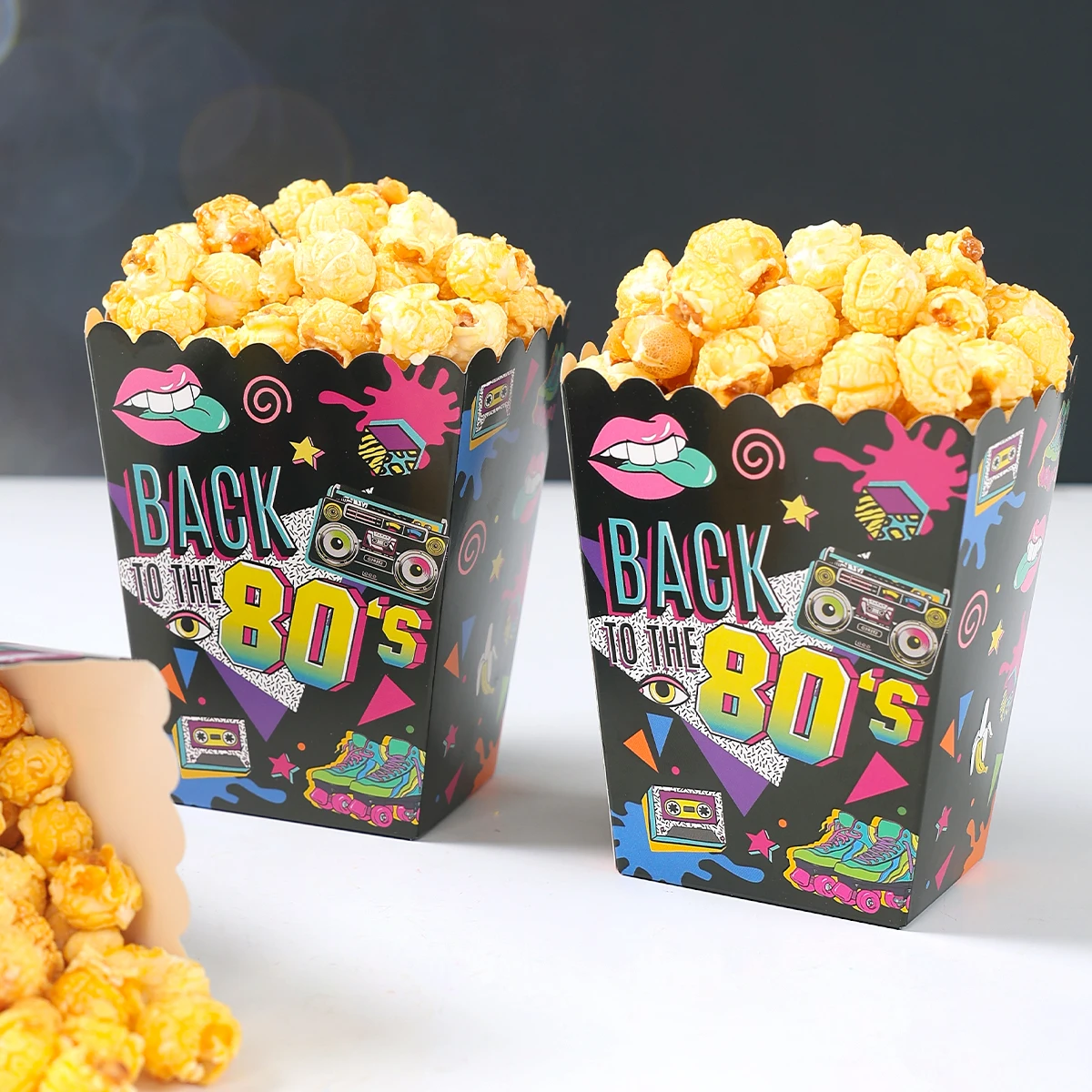 Caixa de pipoca de papel dos anos 80 e 90, decoração de festa de aniversário dos anos 80 e 90, suprimentos para festa de aniversário adulto, lembranças de presente, aniversário