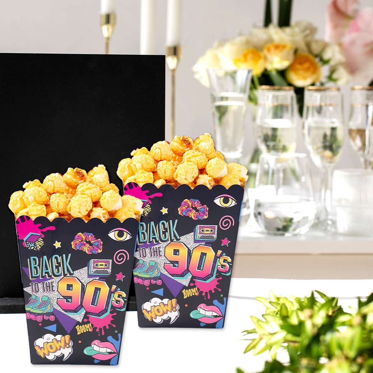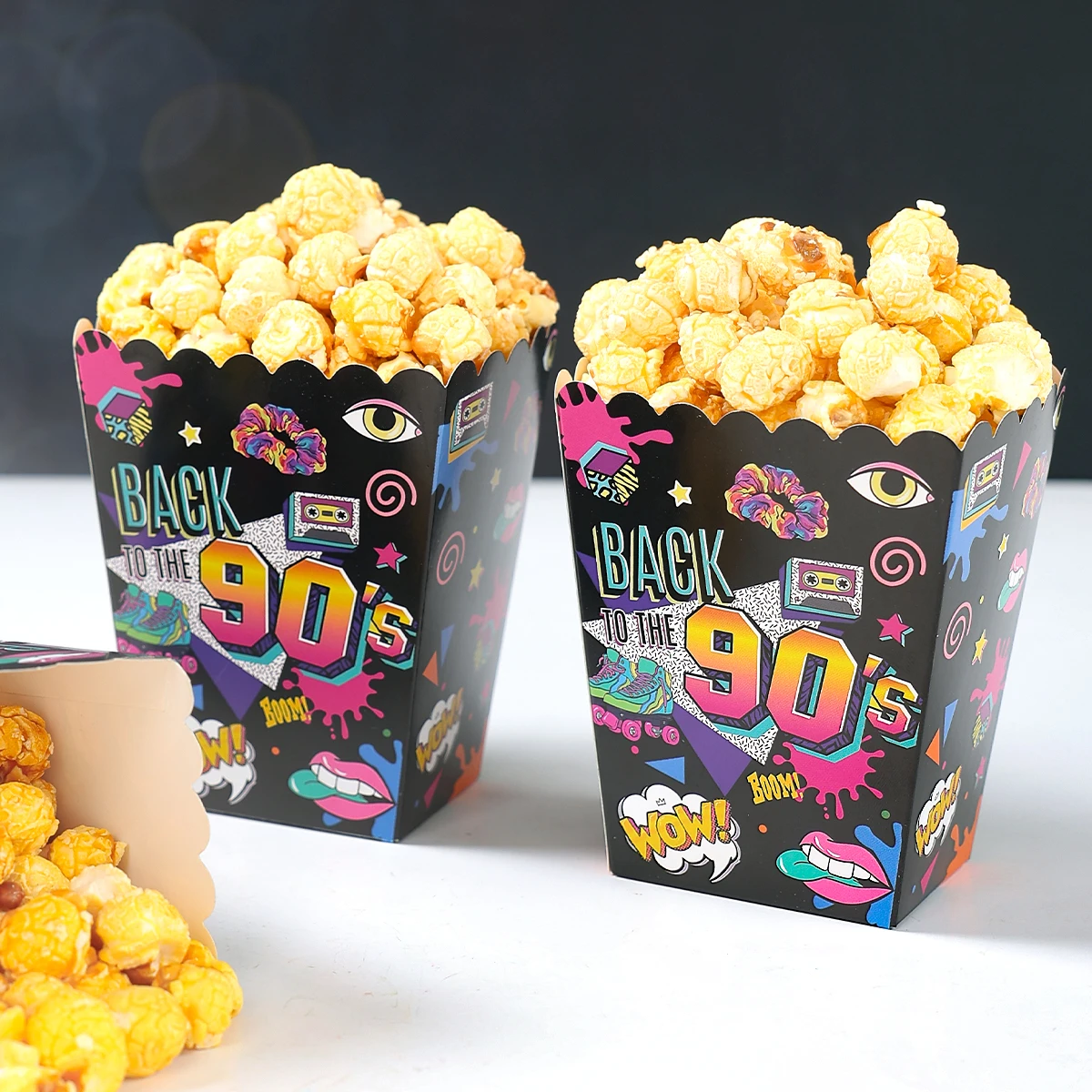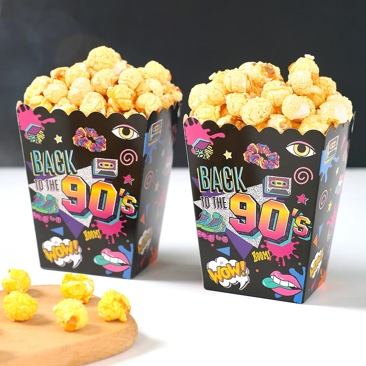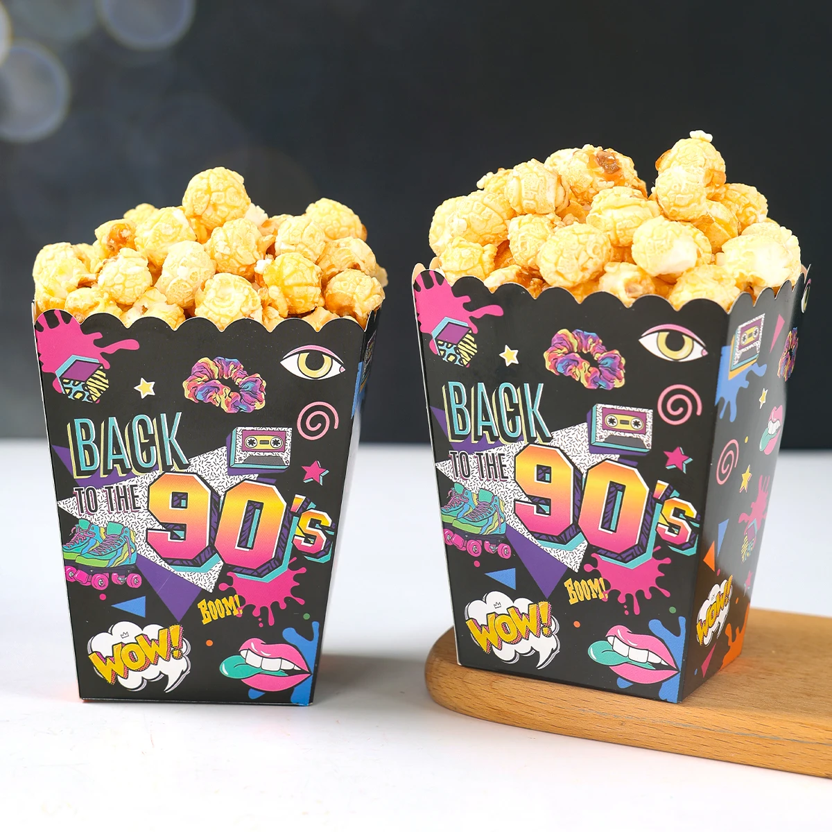 Caixa de pipoca de papel dos anos 80 e 90, decoração de festa de aniversário dos anos 80 e 90, suprimentos para festa de aniversário adulto, lembranças de presente, aniversário