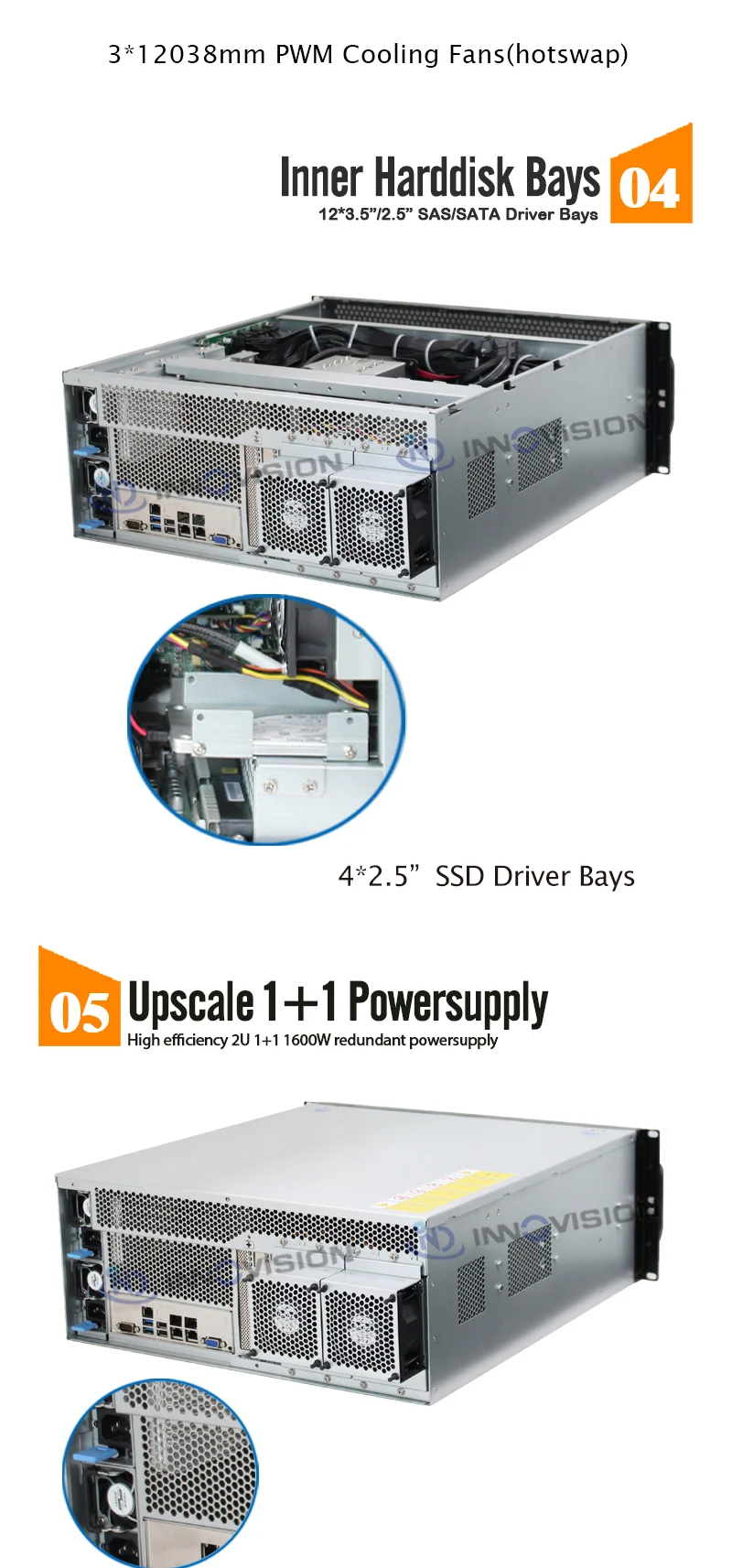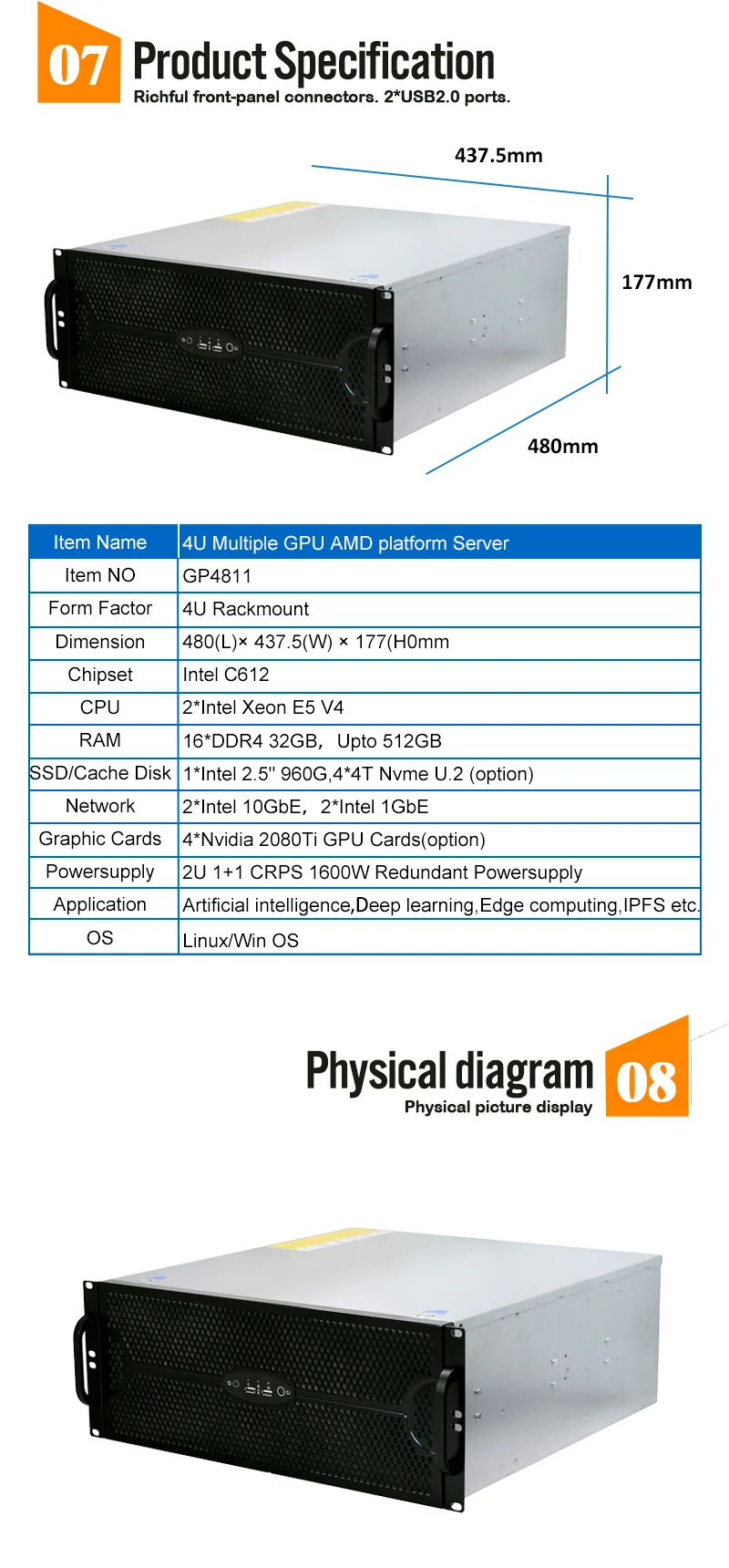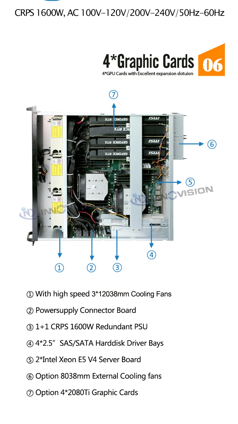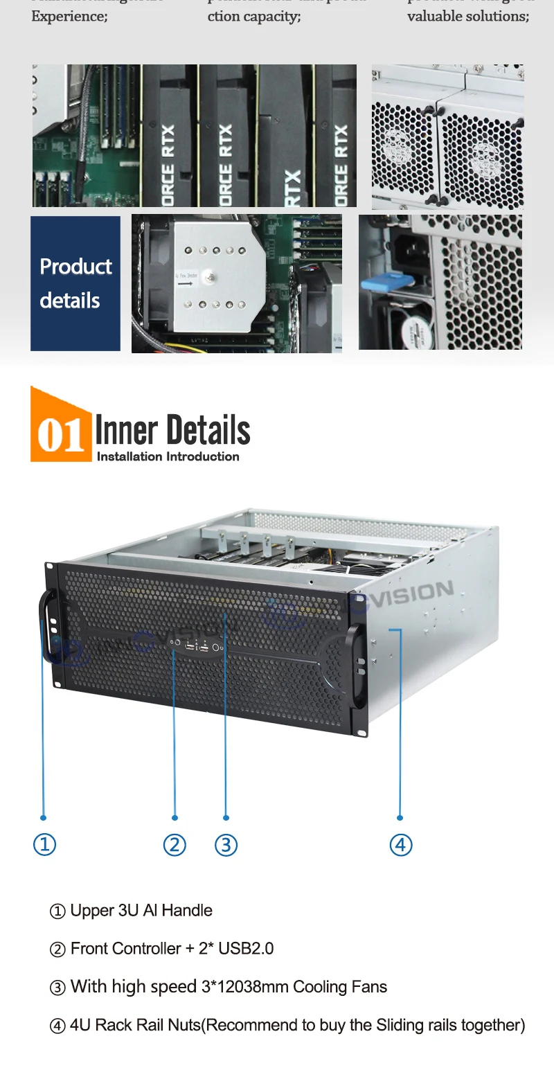 - > Caixa de servidor gpu de rack múltiplo 4u, suporte para 4 placas gpu daul, suporte máximo, placa-mãe de 15.2 "x 13.2", 11 slots de expansão de perfil completo