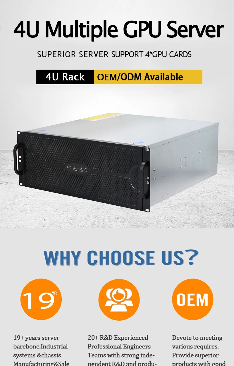 Caixa de servidor gpu de rack múltiplo 4u, suporte para 4 placas gpu daul, suporte máximo, placa-mãe de 15.2 "x 13.2", 11 slots de expansão de perfil completo