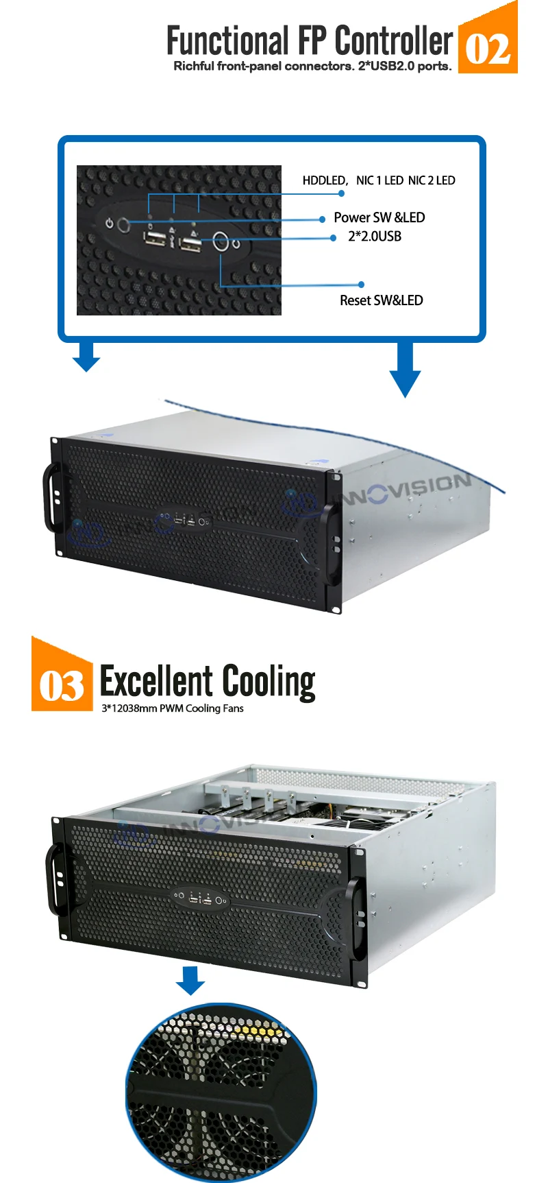 Nota: Este chassi inclui apenas ventiladores PWM de alta velocidade 3x12038 e 2x8038