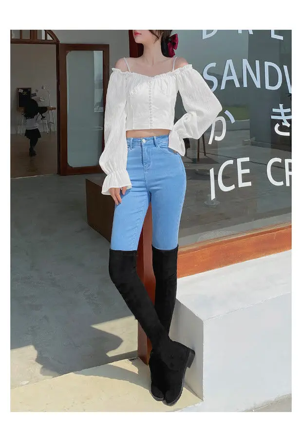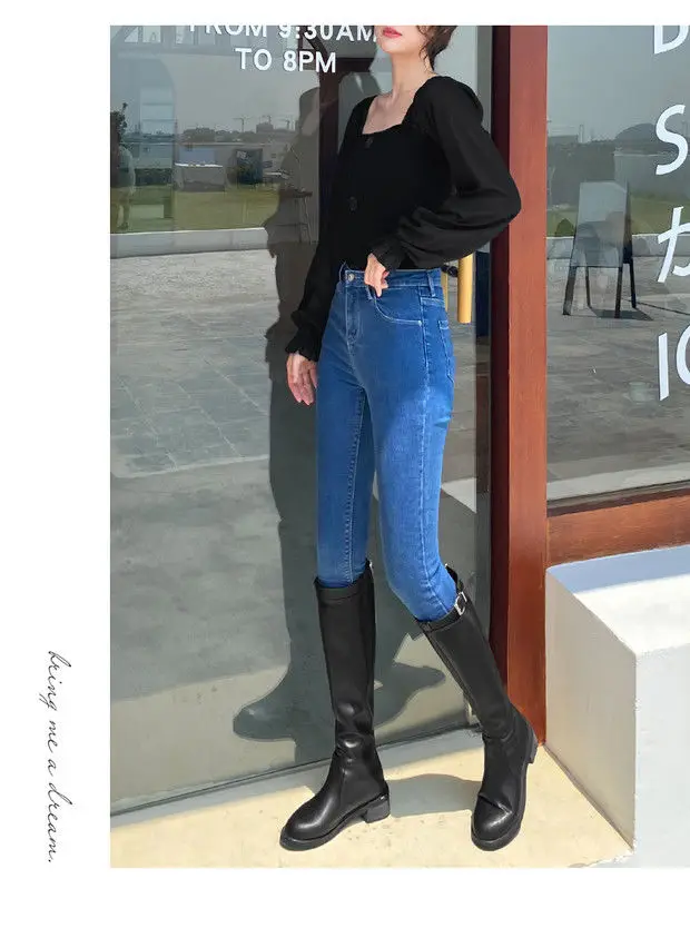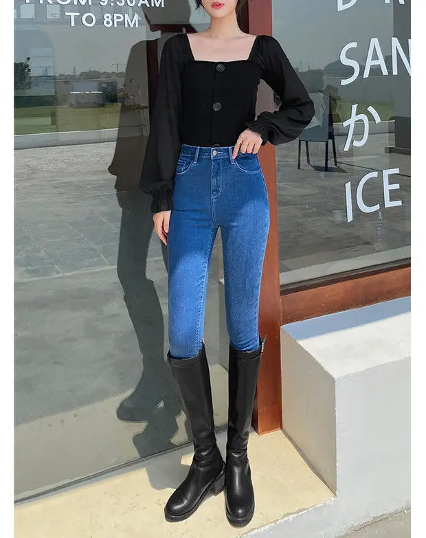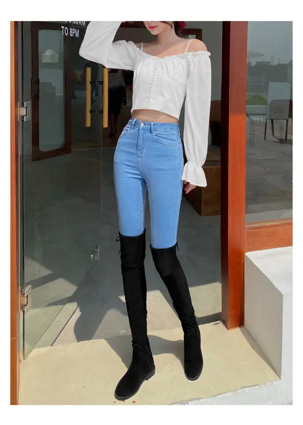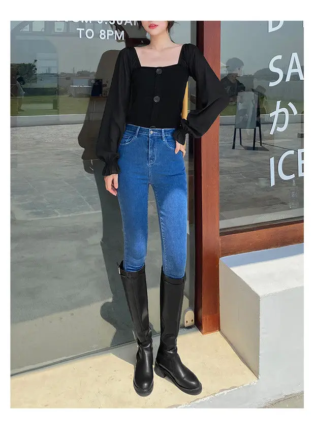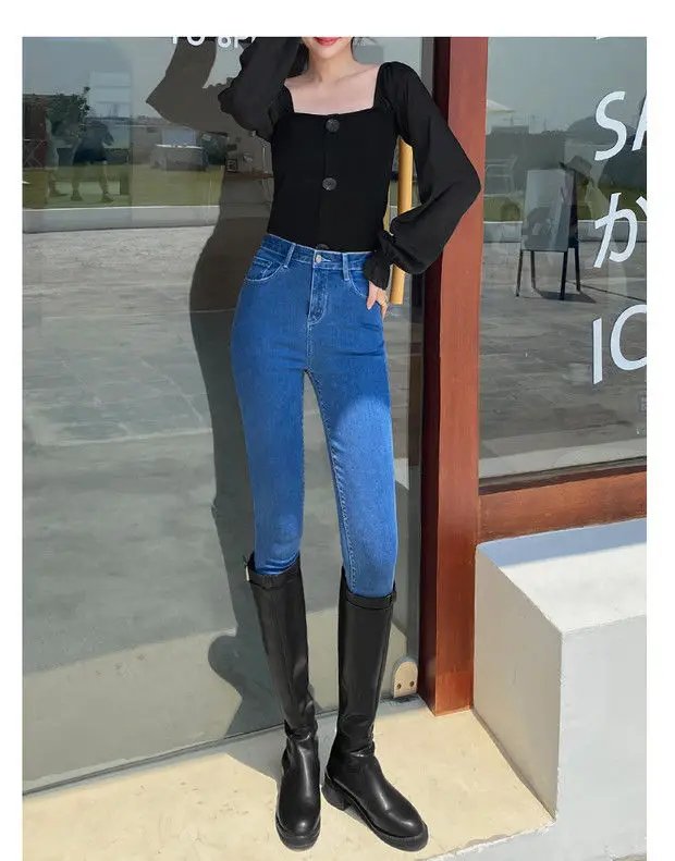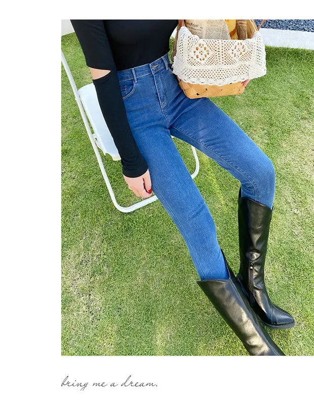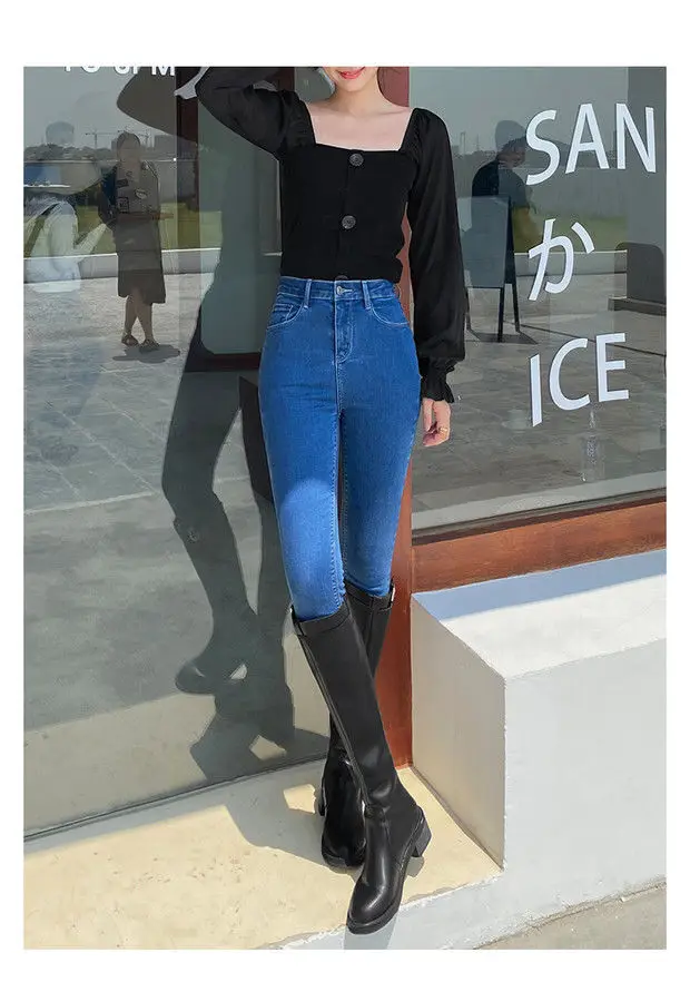 Com um estilo coreano moderno, estas calças de jeans são uma escolha elegante para qualquer ocasião.
