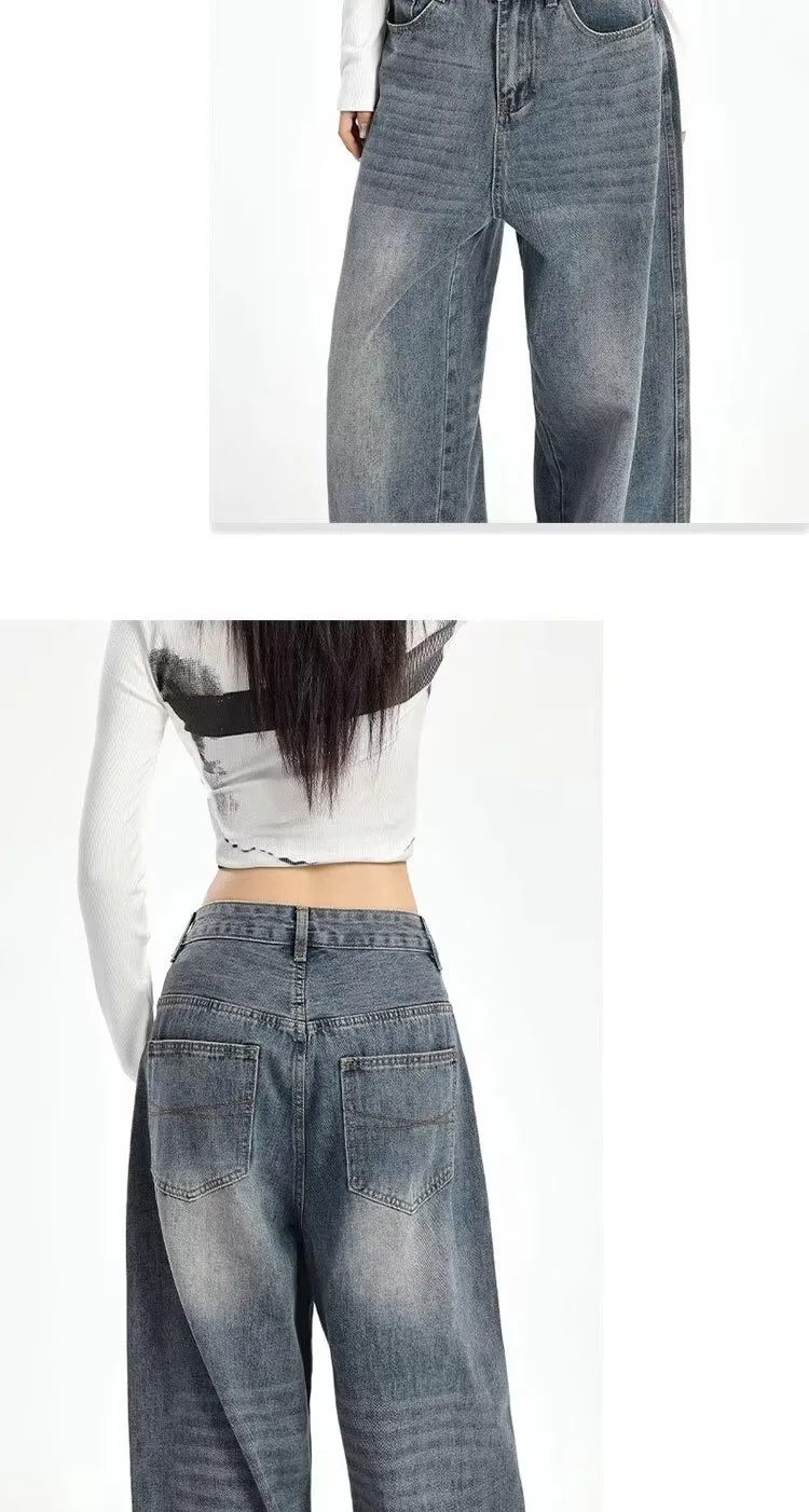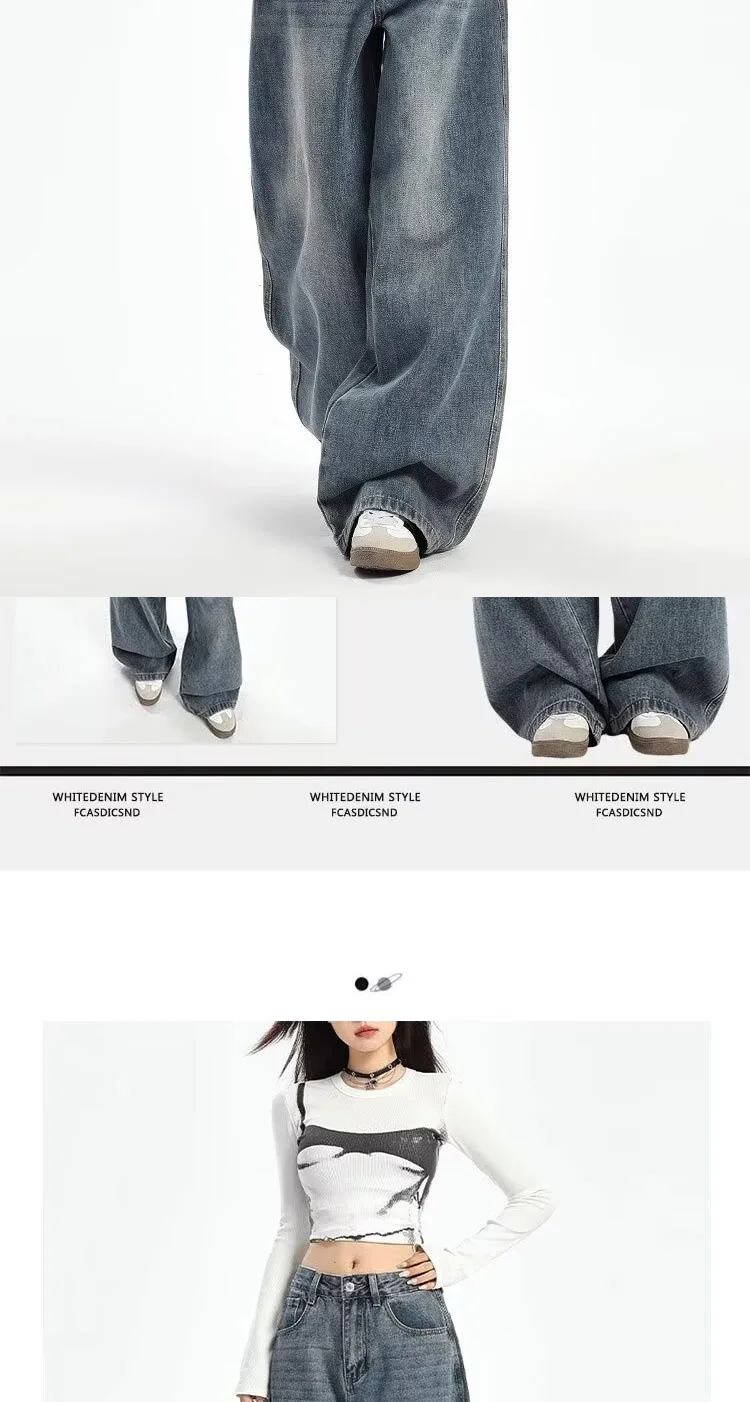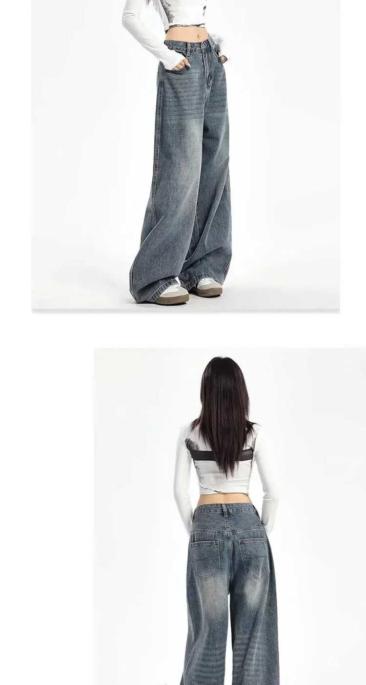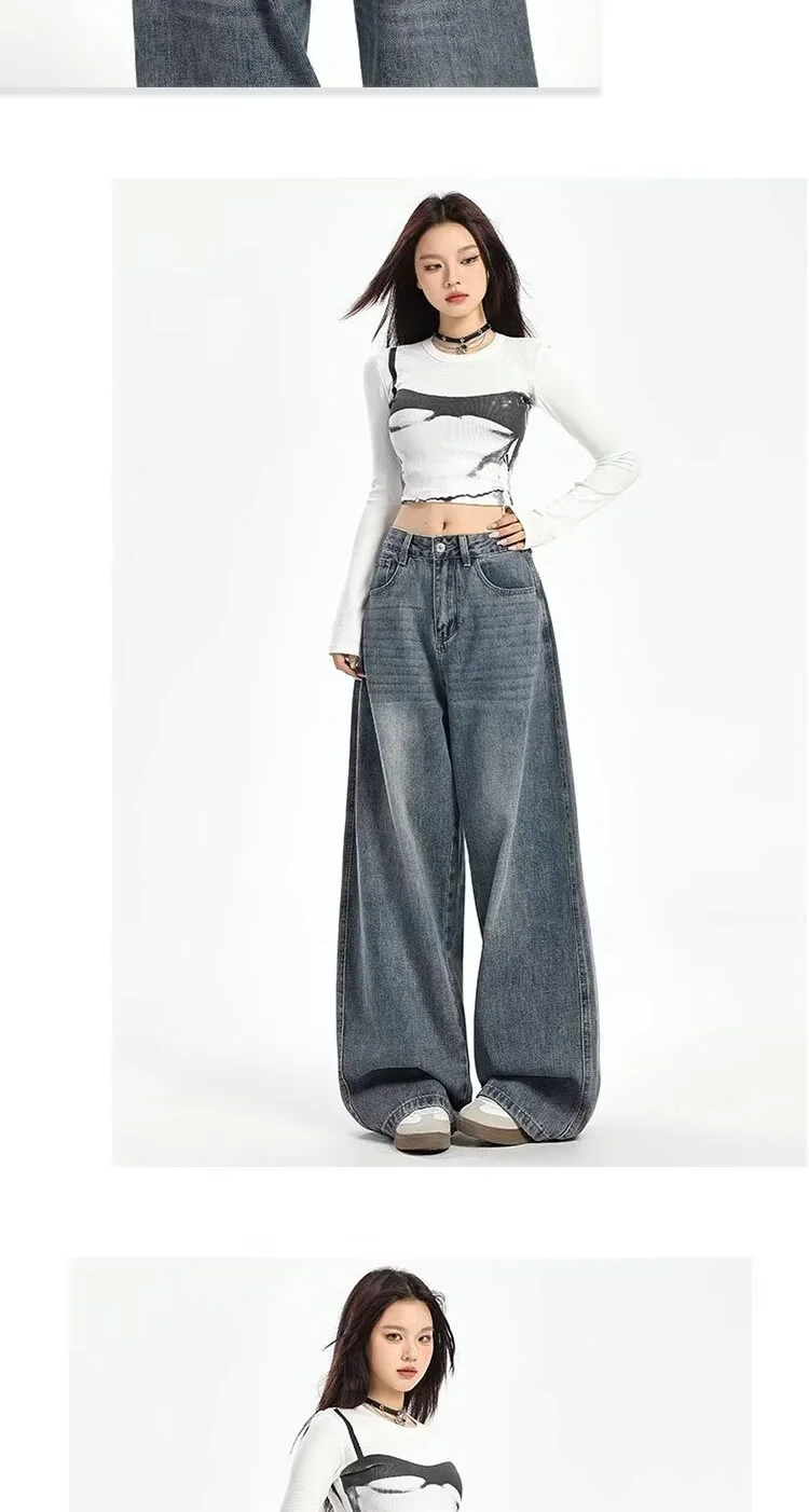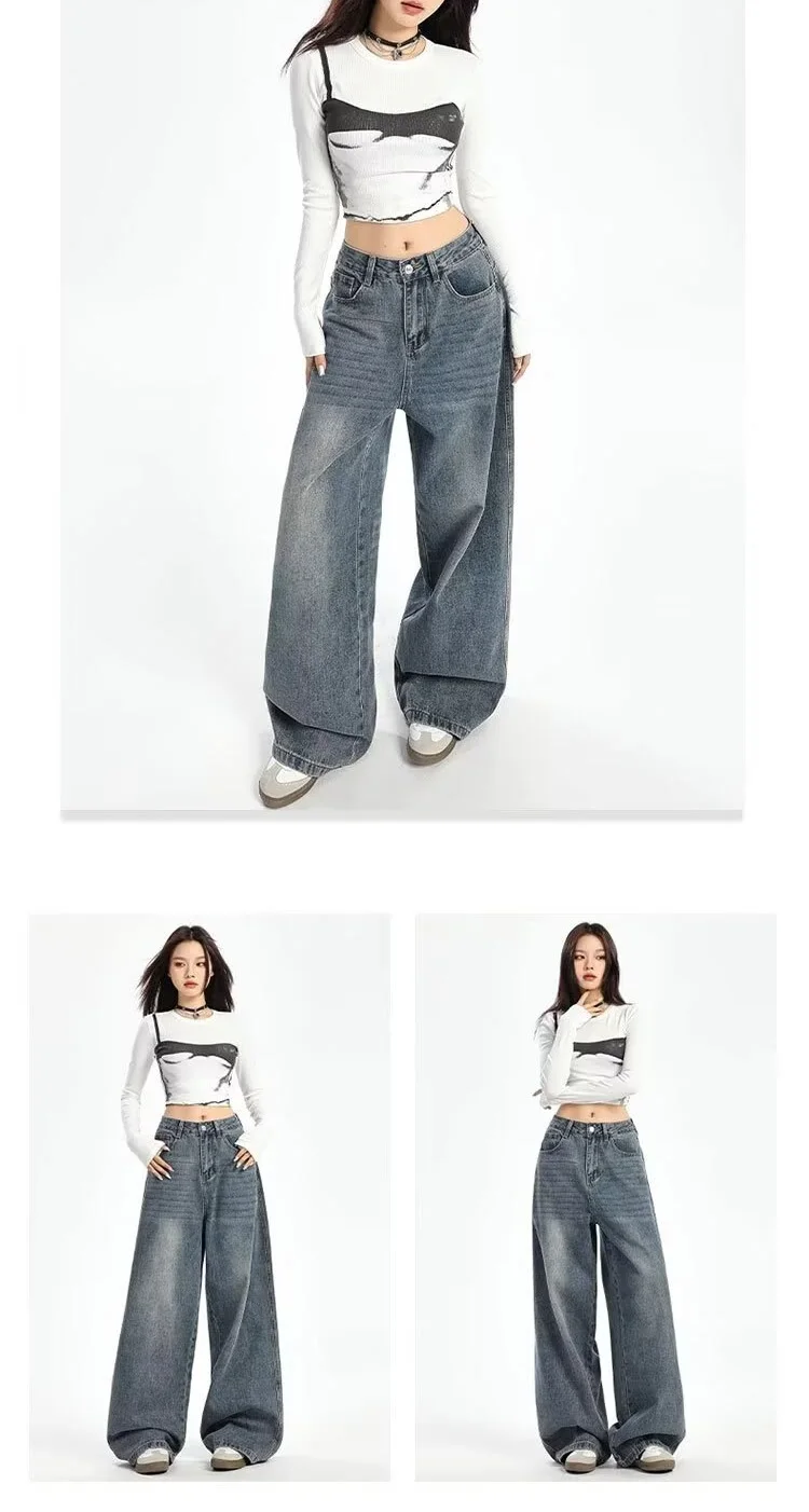 Calça Jeans Fena Retrô de Cintura Alta com Perna Larga, Nova Coleção de Verão, Tamanhos andes, Solta, Efeito Emaecedo...