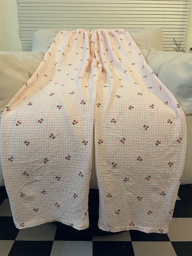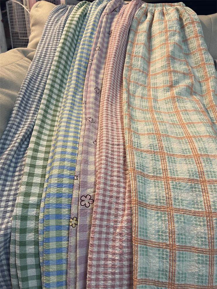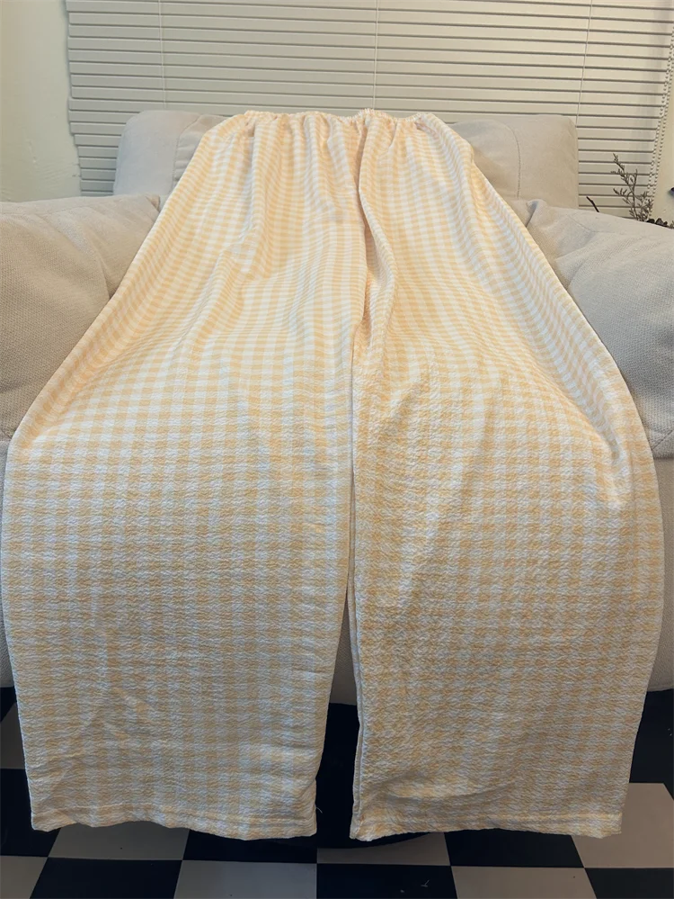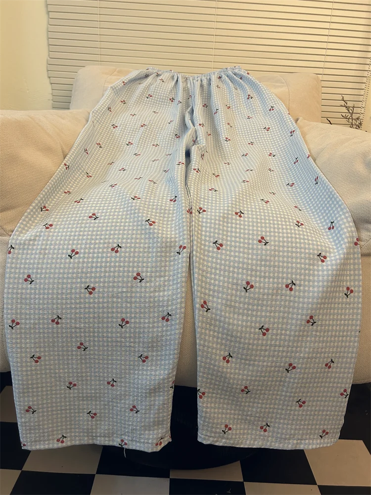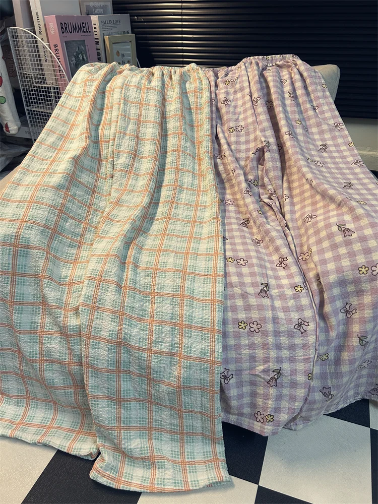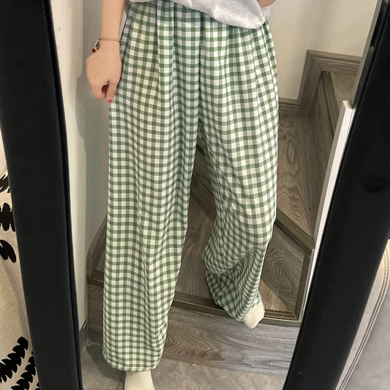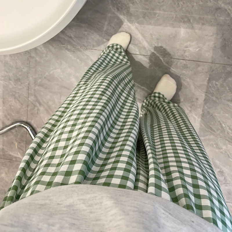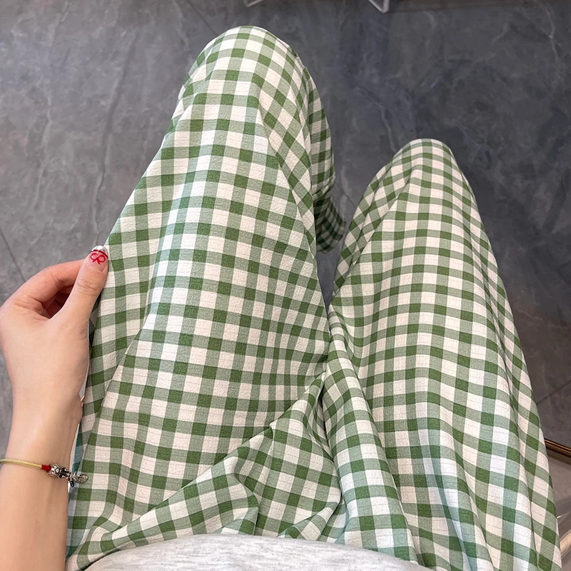 Calças de Pijama Fenas Longas para Mulheres Altas, Estampa Xadrez, Finas, para Casa, Verão, Primavera, Outono, Perna Larg...