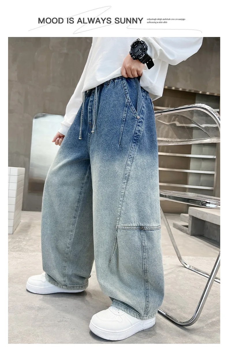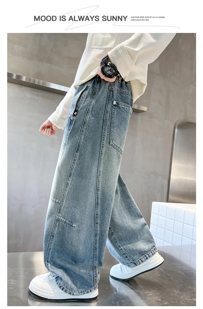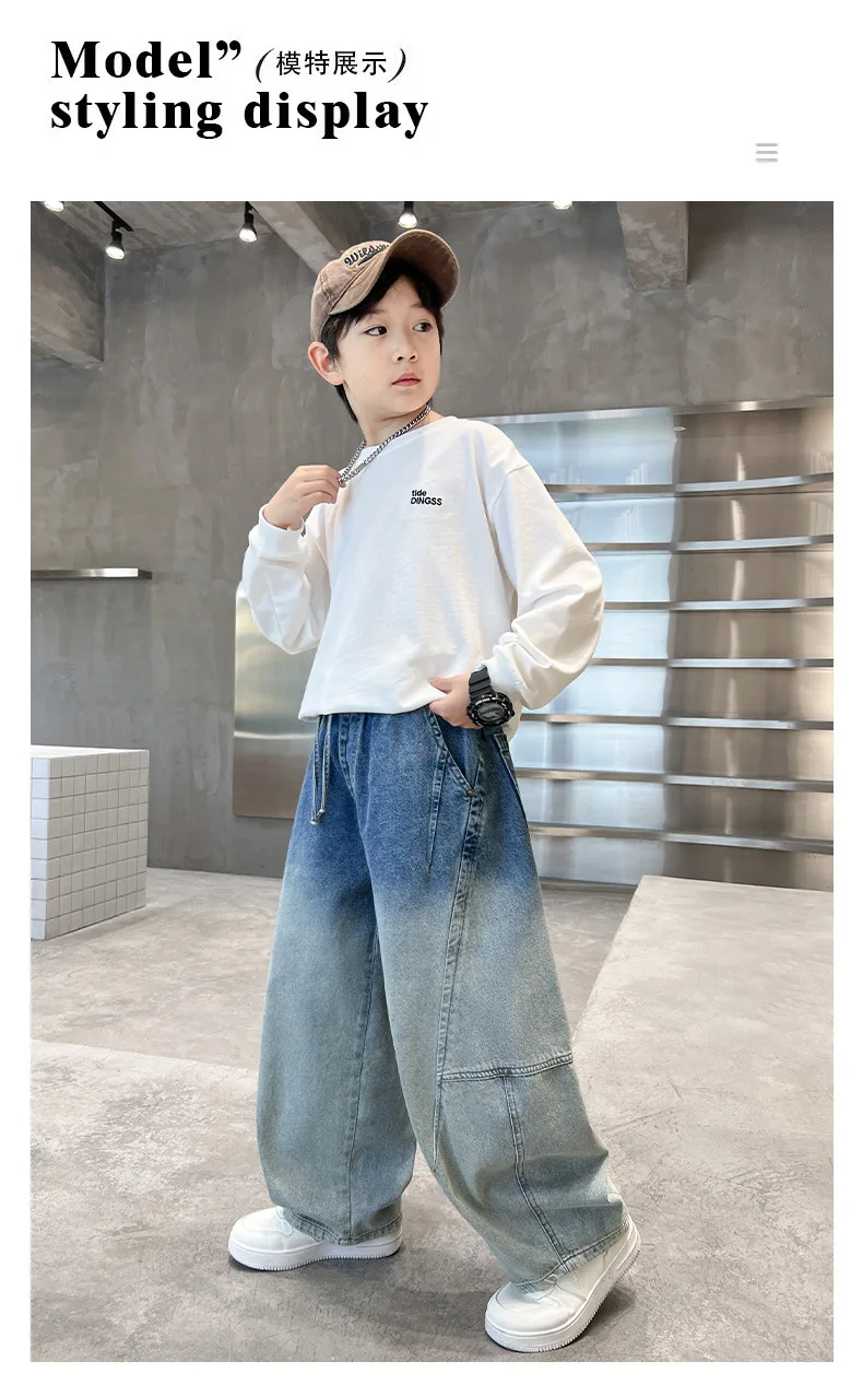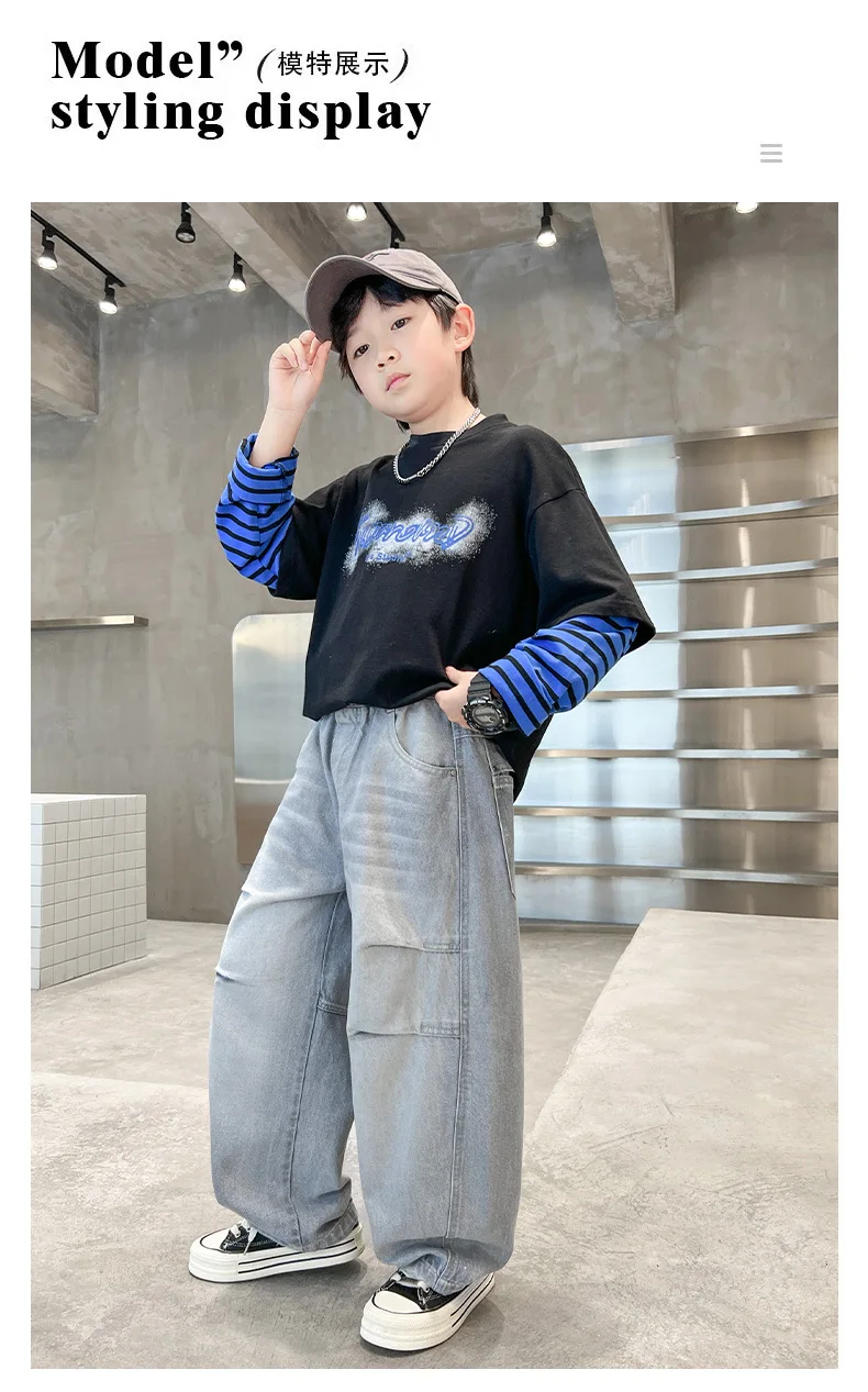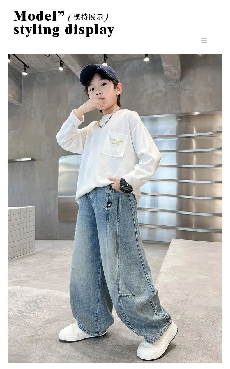 Calças Jeans Casuais para Meninos Moda Primavera Calças Confortáveis para Crianças Roupas Largas para Adolescentes Moda Streetwear Infantil