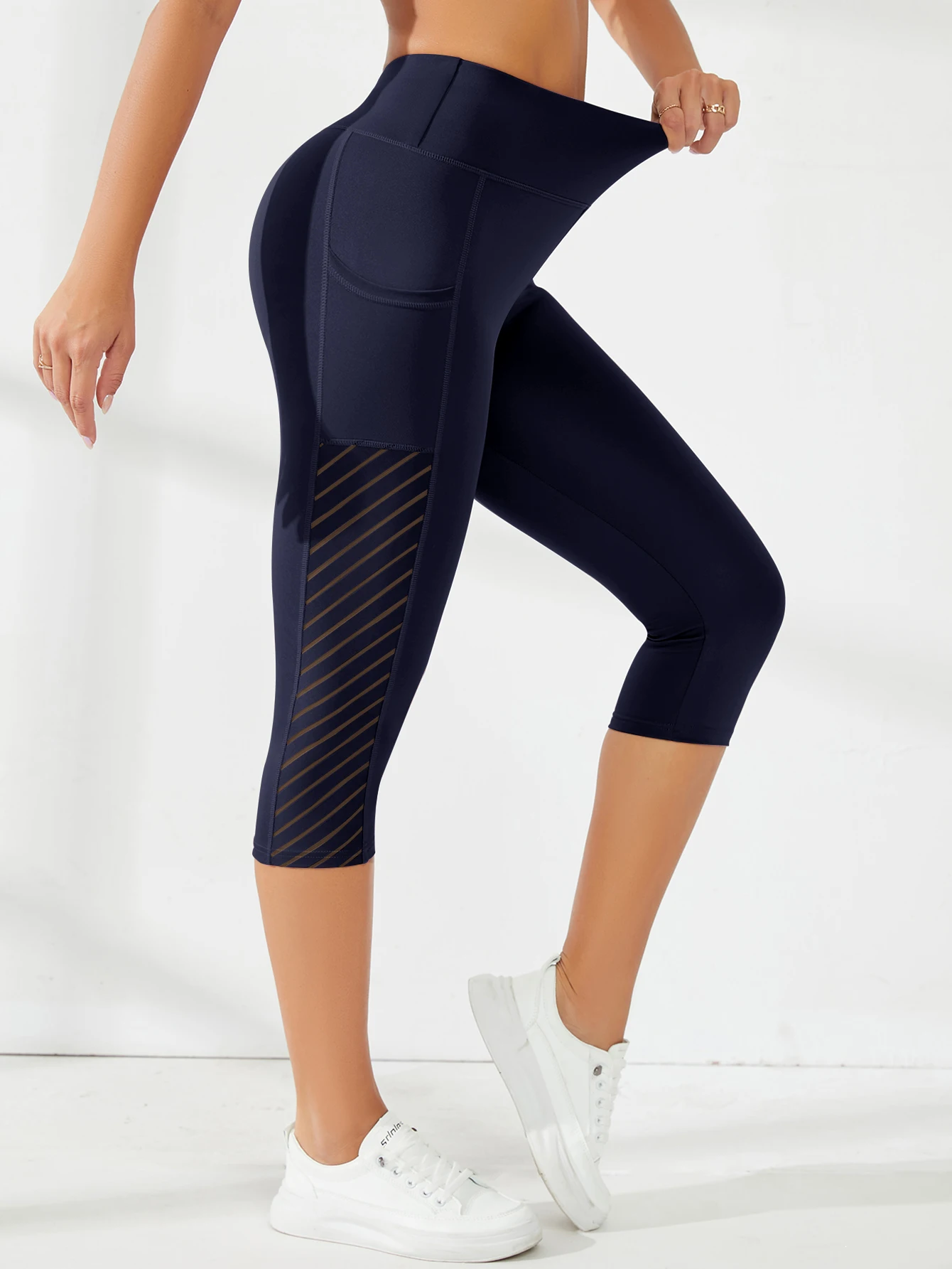 Calções esportivos calças cortadas feminino fitness nudez cintura alta hip elevador correndo yoga bolsos laterais collants secagem rápida ginásio roupas esportivas