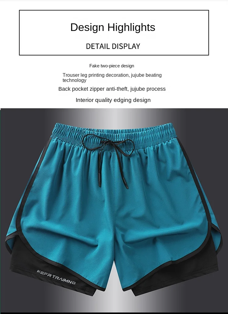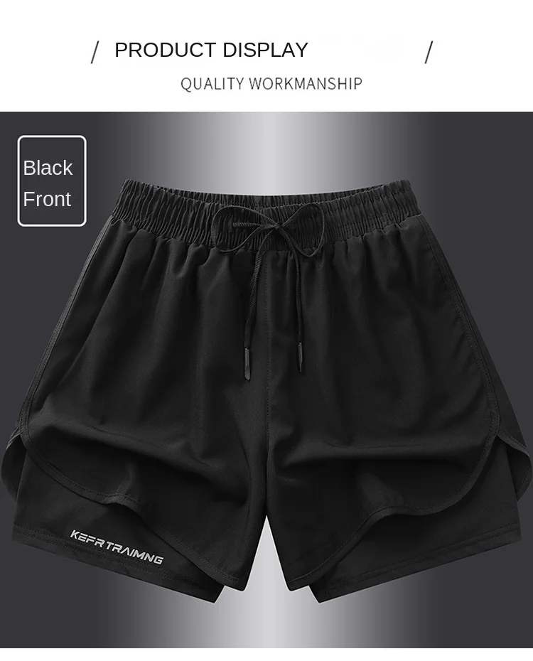 Calções Esportivos de 2 Peças Falsas Homem e Mulher, Secagem Rápida, 3 Pontos, Treino de Corrida, Forro Invisível Americano B, Verão