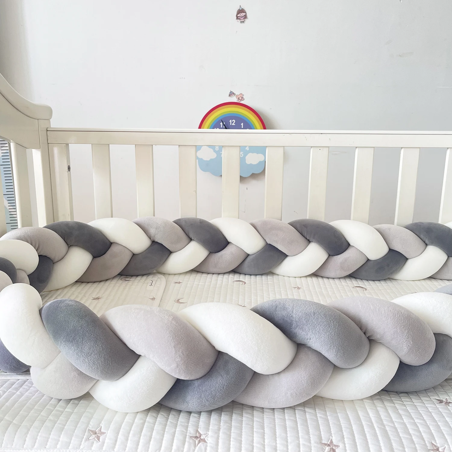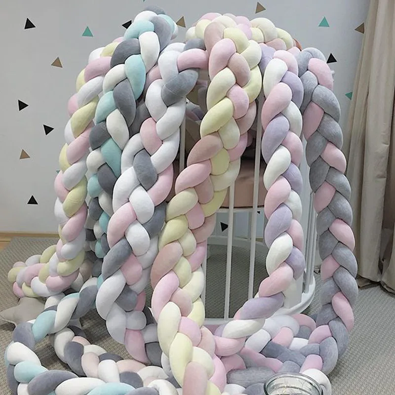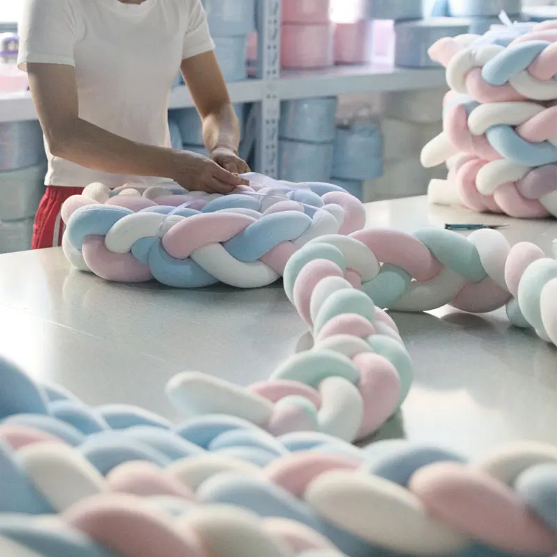 Cama de bebê pára-choques berço anticolisão proteção recém-nascido nó trança travesseiro almofada protetor berço conjunto cama 1m/2m3m/4m