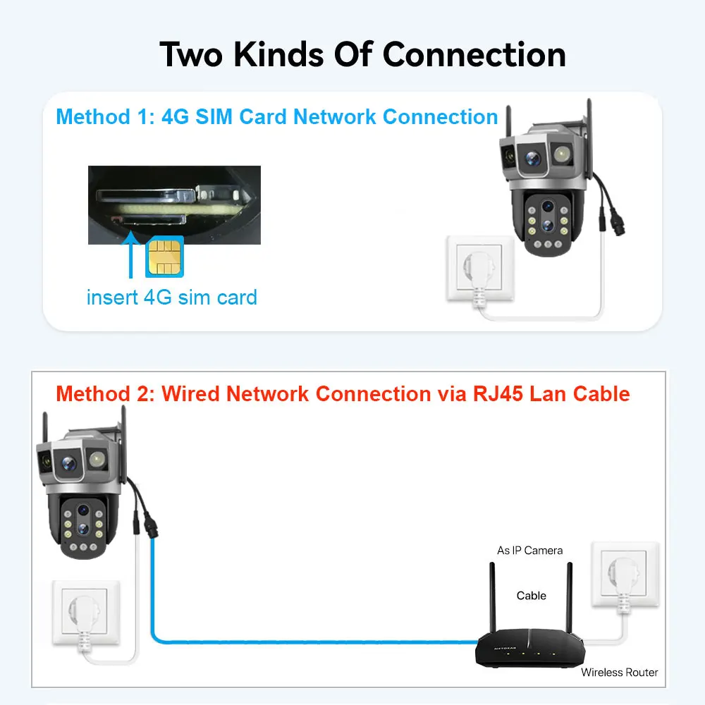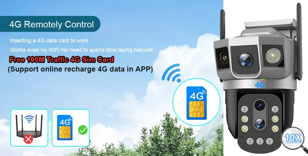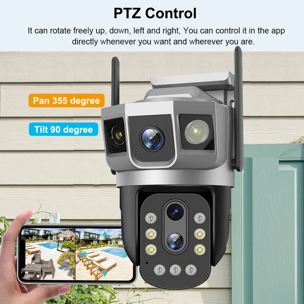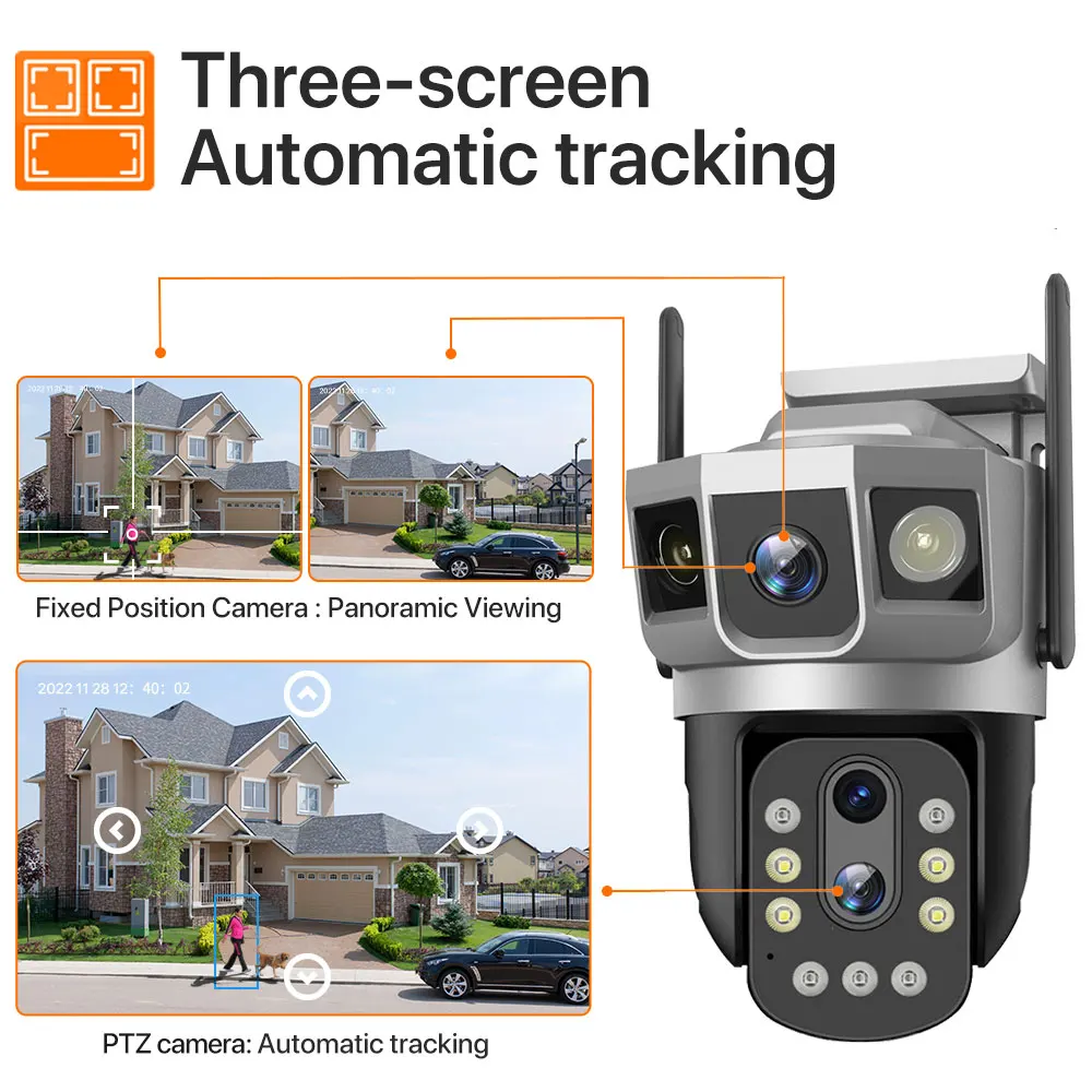4G IP Camera With 4G Sim Card 12MP 6K Triple Screens Optical Zoom PTZ Motion Detect Color Night Vision V380 Pro Security Monitor