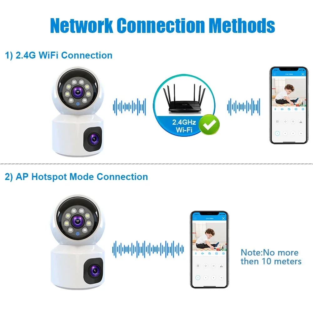 Câmera sem fio de lente dupla V380 Pro, Wi-Fi, Proteção Inteligente em Casa, CCTV, Interior, Áudio Bidirecional, 8MP