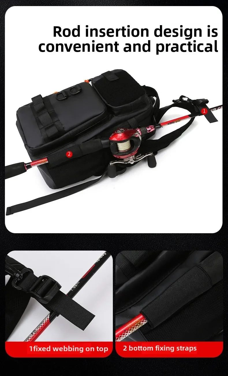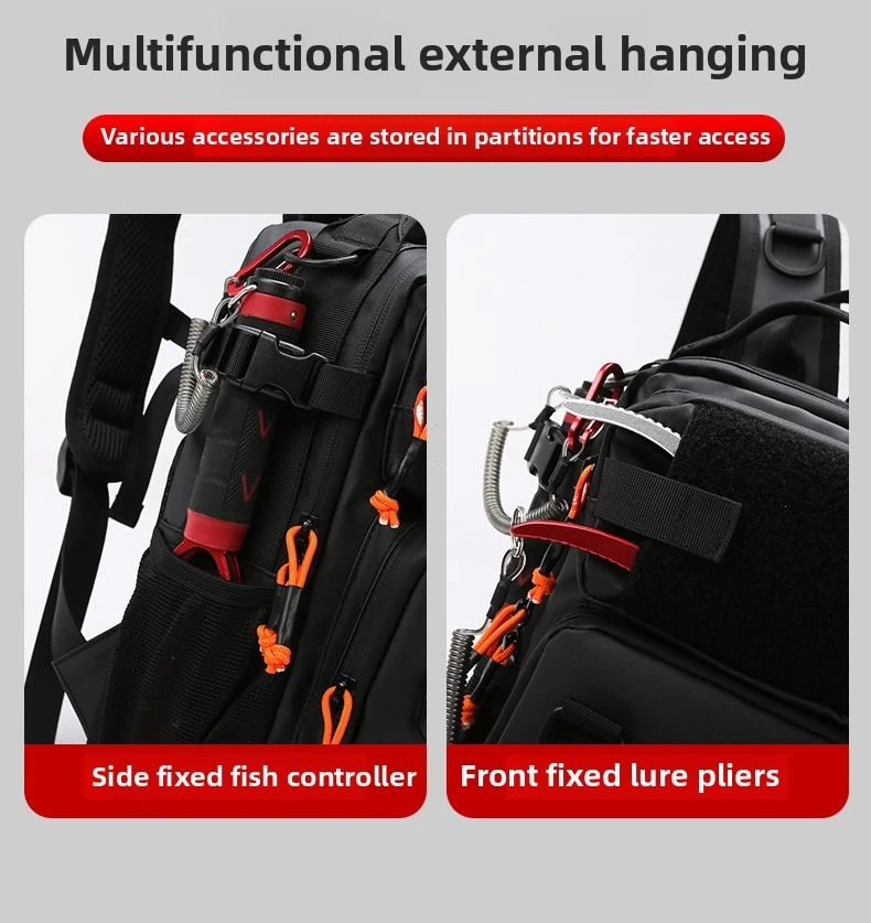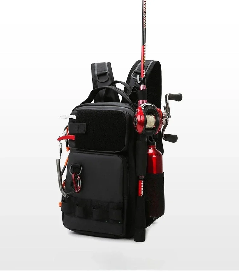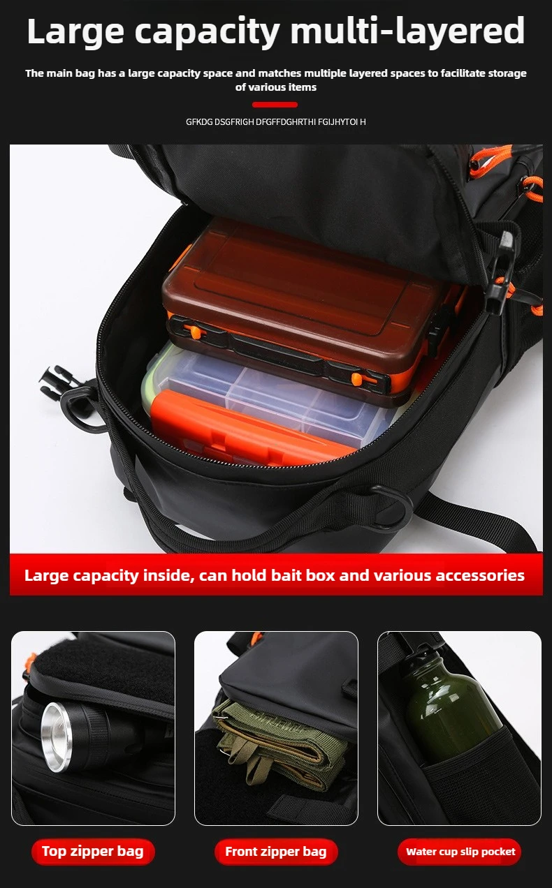 - > Caminhadas ao ar livre ombro acampamento escalada mochila multifuncional isca de pesca mochila com suportes de haste saco de peito