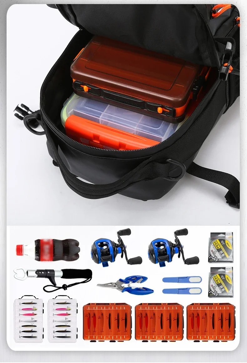 Caminhadas ao ar livre ombro acampamento escalada mochila multifuncional isca de pesca mochila com suportes de haste saco de peito