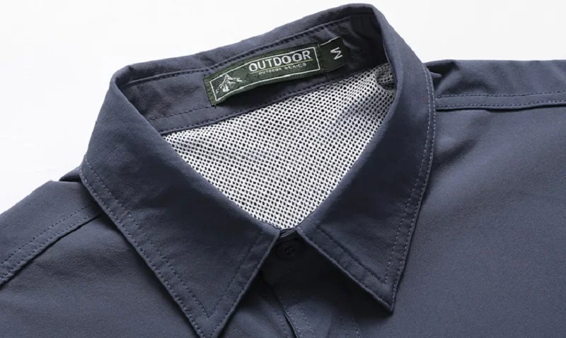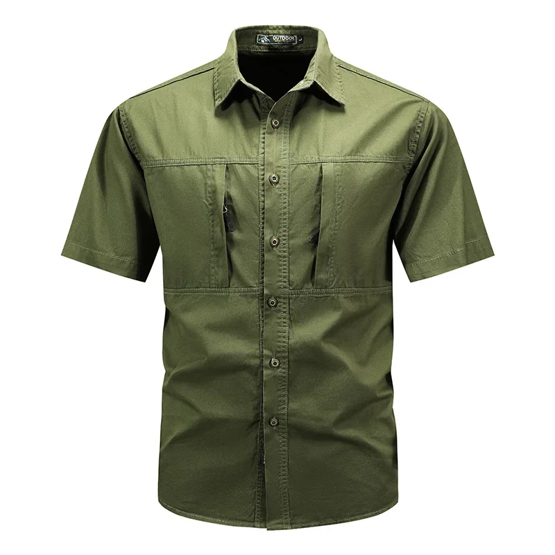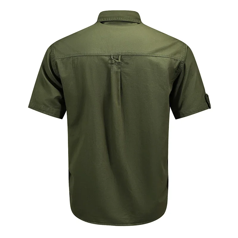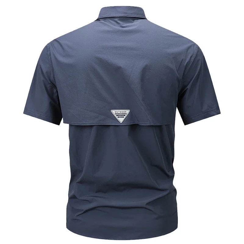 Camisa casual de manga curta masculina, camisa polo respirável, top impermeável com bolso, apto para acampamento ao ar livre, caminhada, trabalho, verão