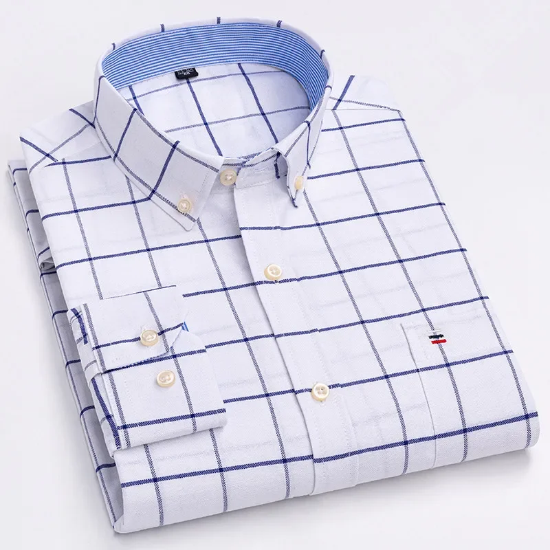 - > Camisa Casual Masculina 100% Algodão, Manga Longa, Estampa Xadrez Oxford, Cor Sólida, Ajuste Regular, Camisa de Vestir Oversized 6XL