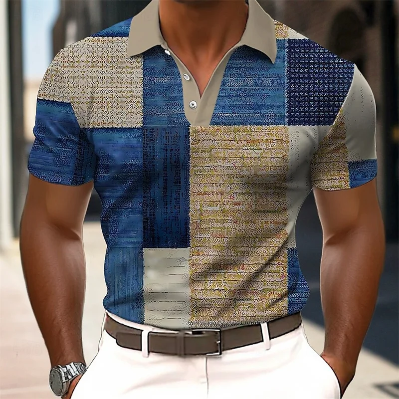 - > Camisa de emenda masculina manga curta camisa polo impressão nova verão roupas de rua casual moda masculina topo