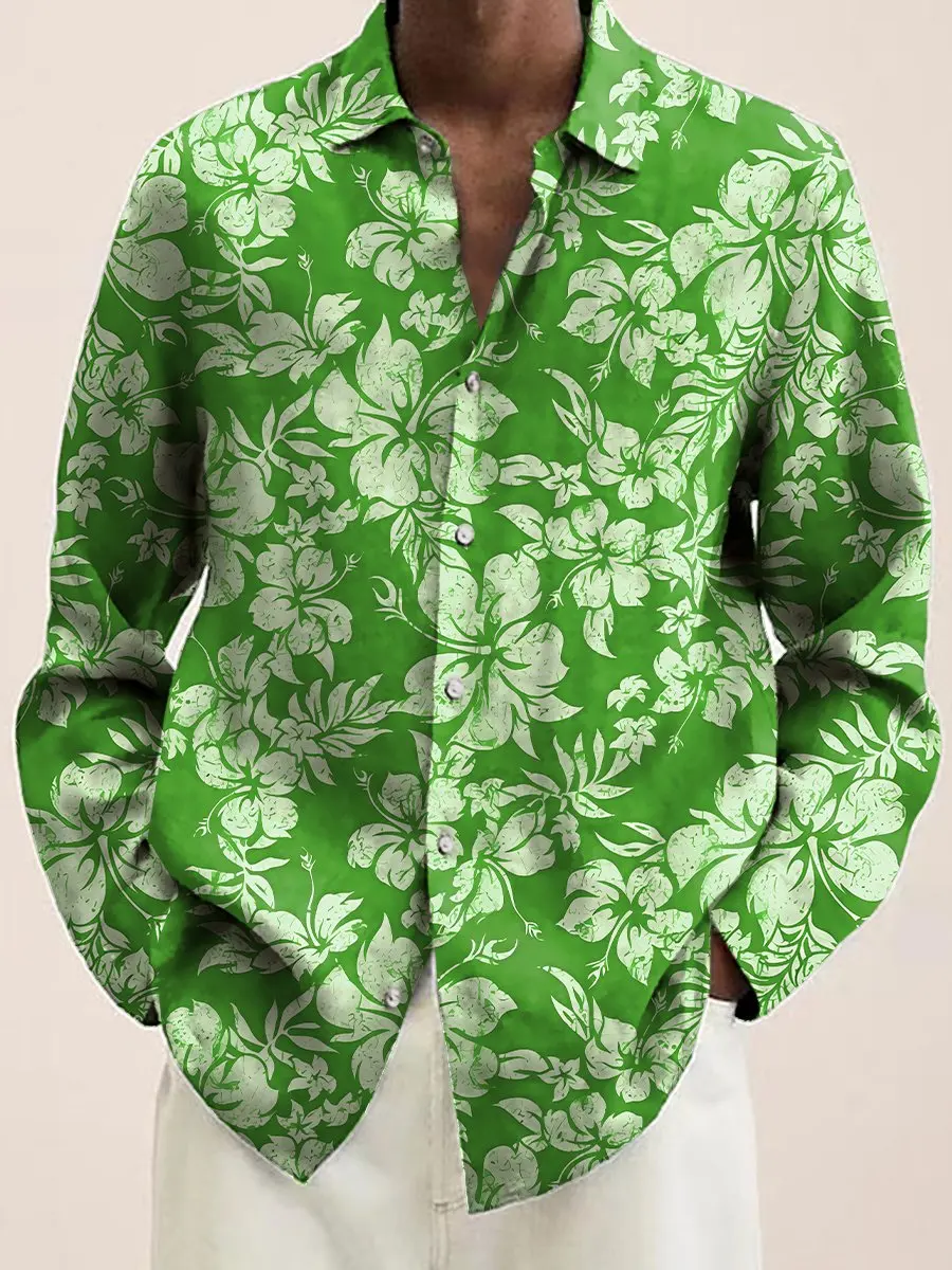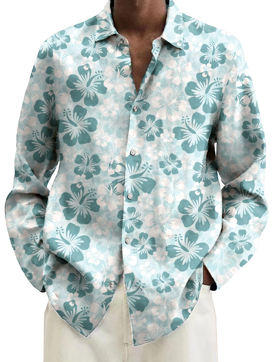 - > Camisa de manga longa com estampa floral vermelha masculina 2023 design de moda luxo manga longa topos masculino quatro estações botão lapela camisa