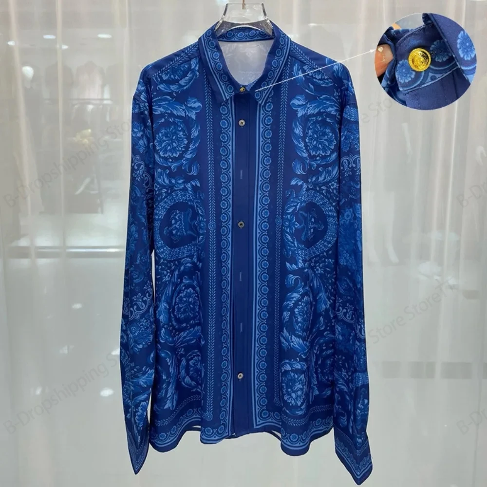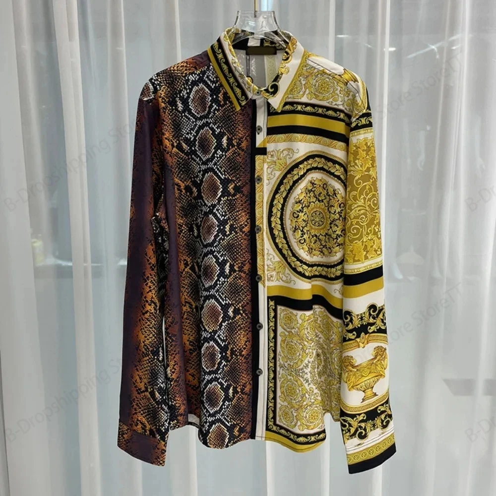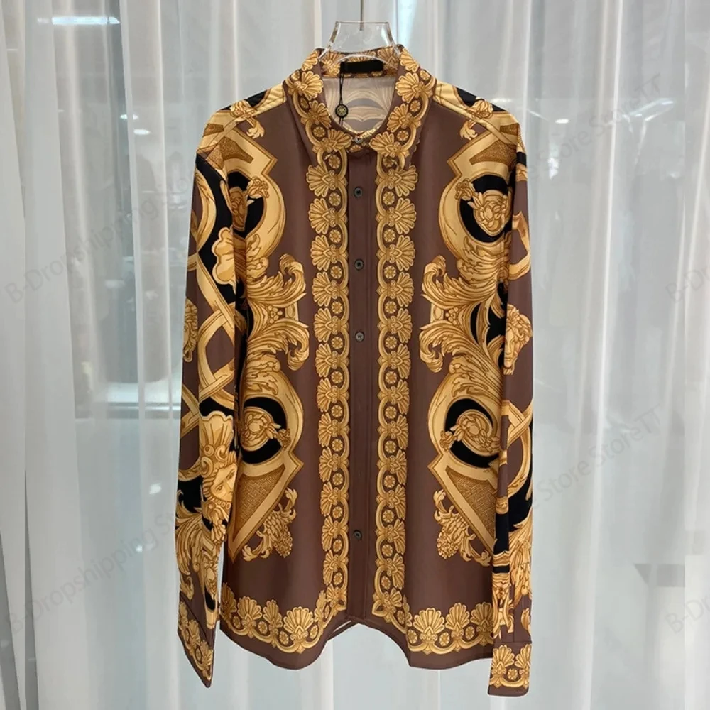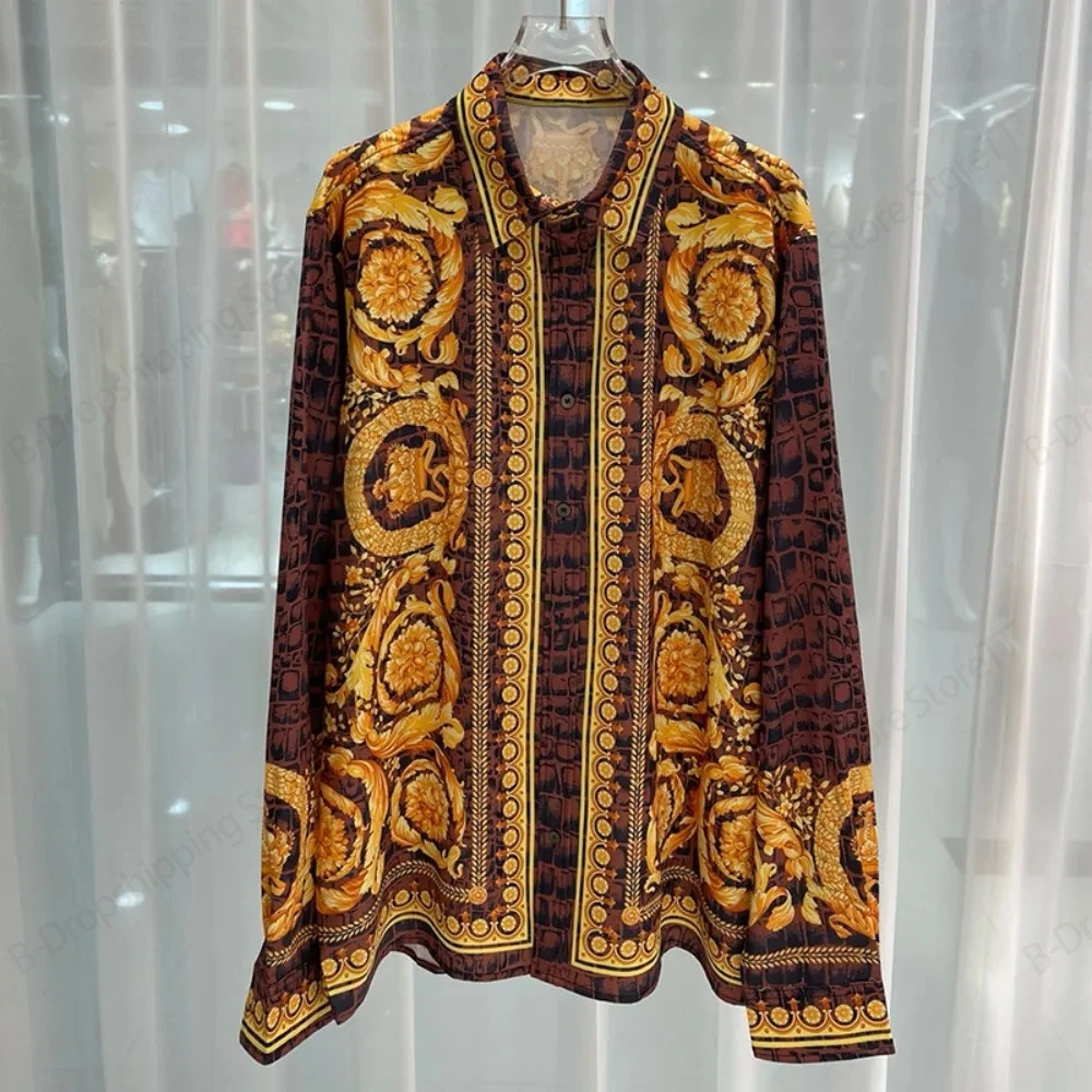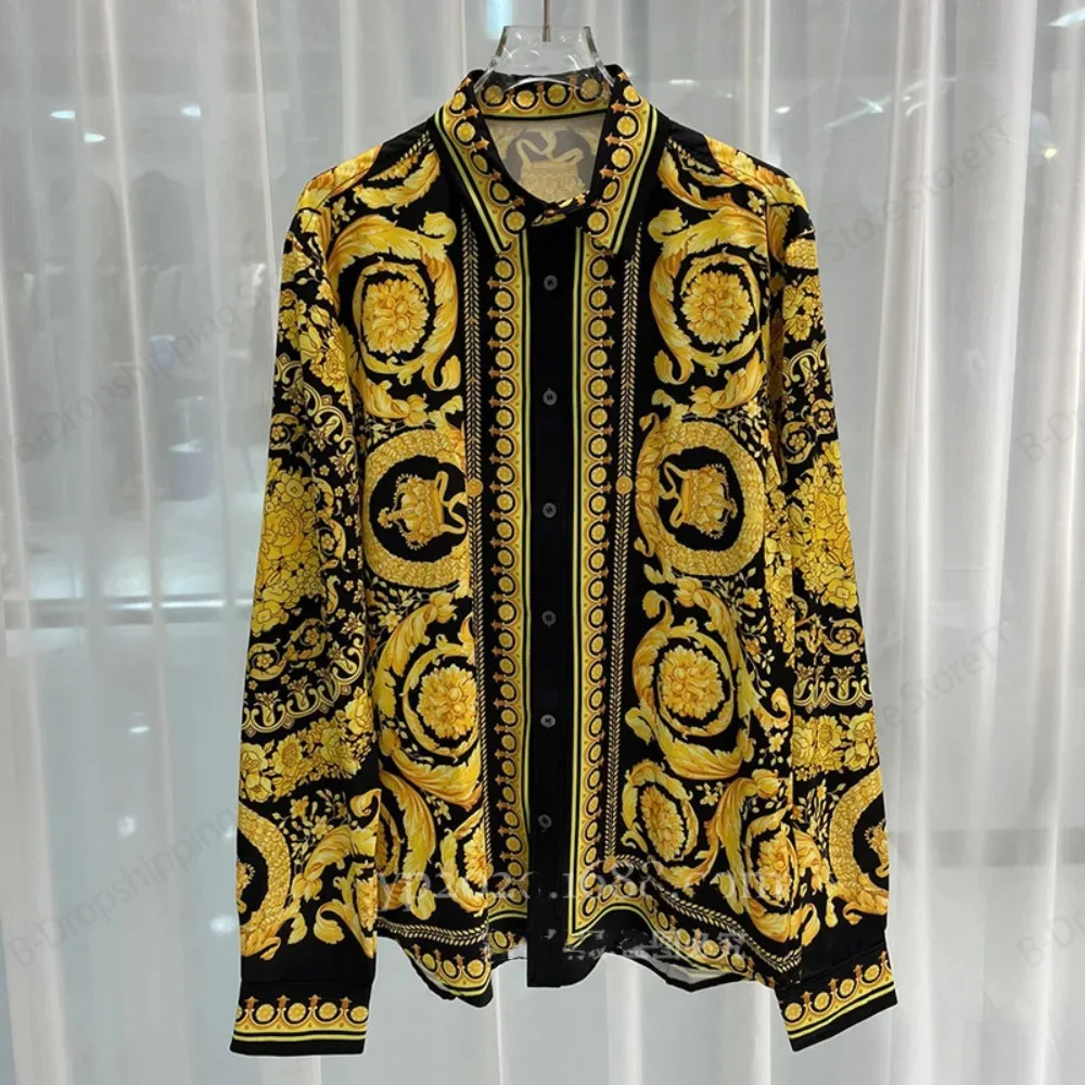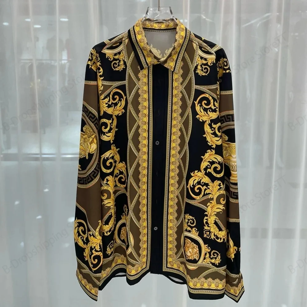 - > Camisa havaiana de manga comprida preta dourada floral 3d impressa camisa masculina/feminina moda casual camisas de luxo estilo europeu americano