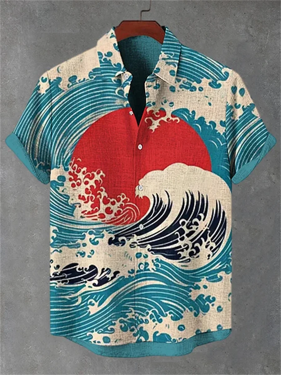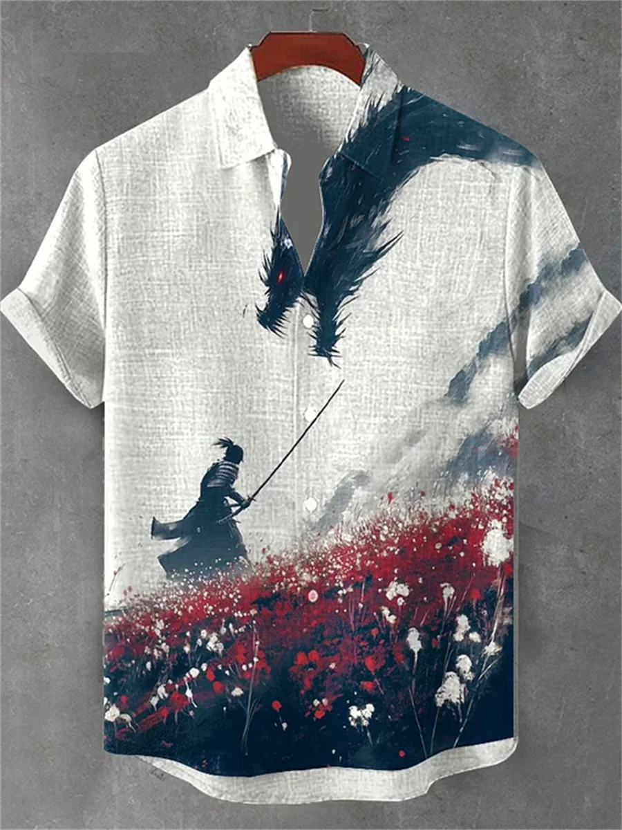 - > Camisa masculina de manga curta, estampa elegante de jato de combate, top casual respirável, padrão retrô moderno, camisa havaiana personalizada.