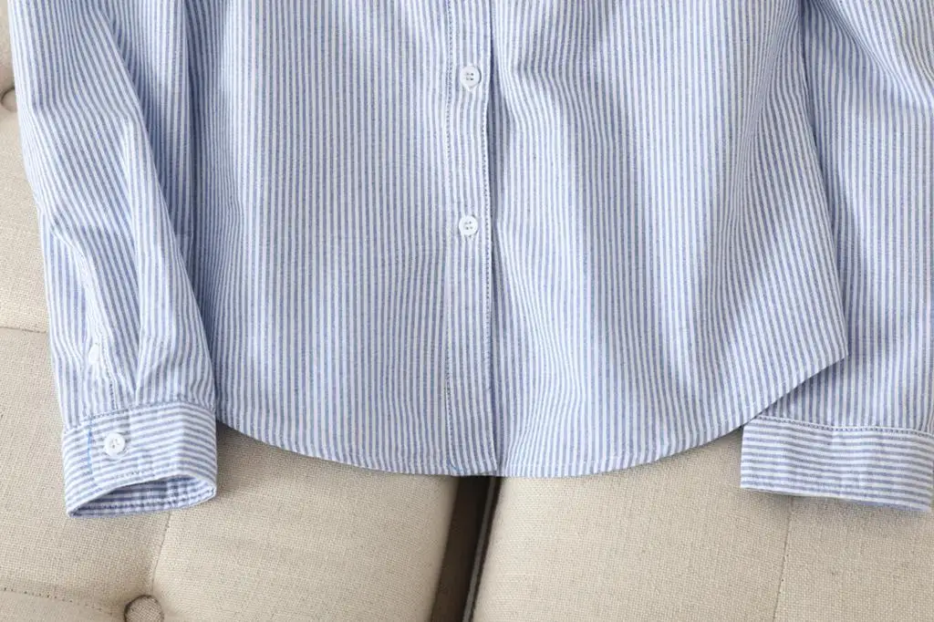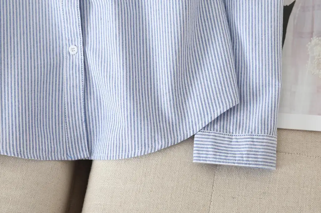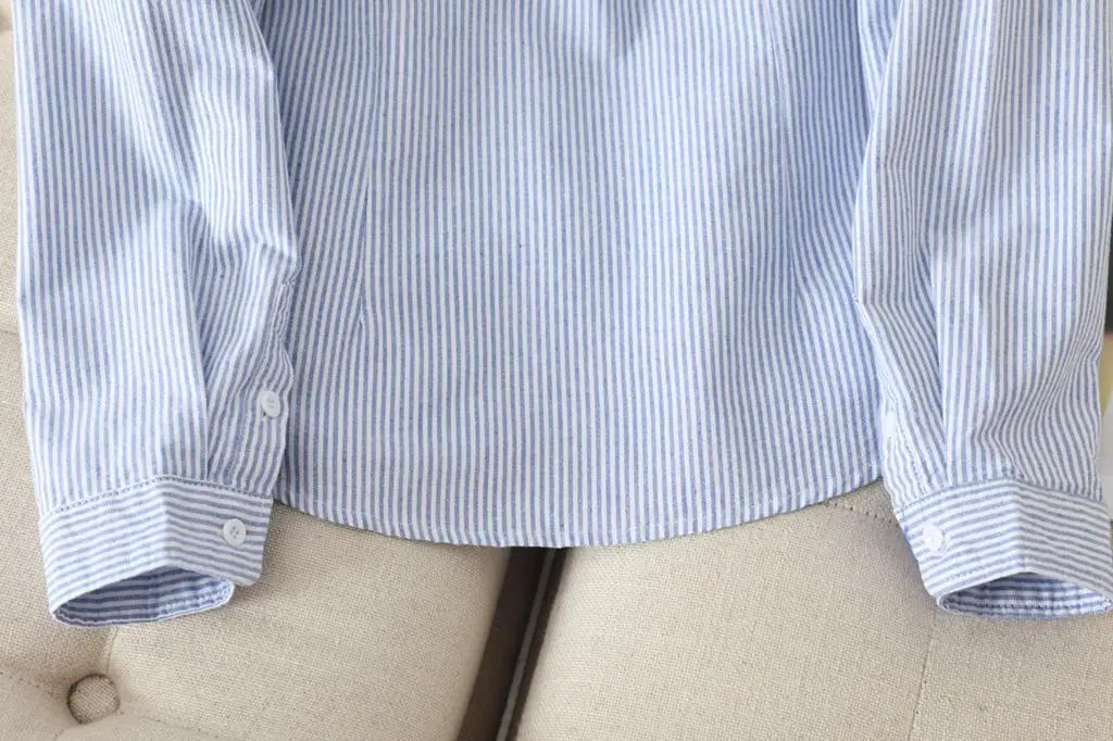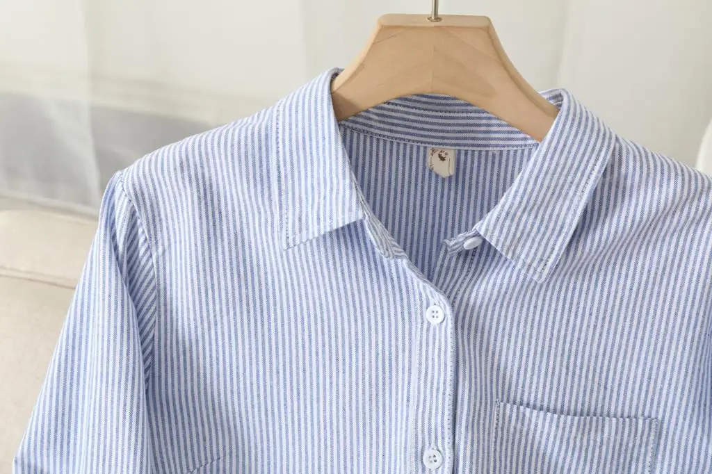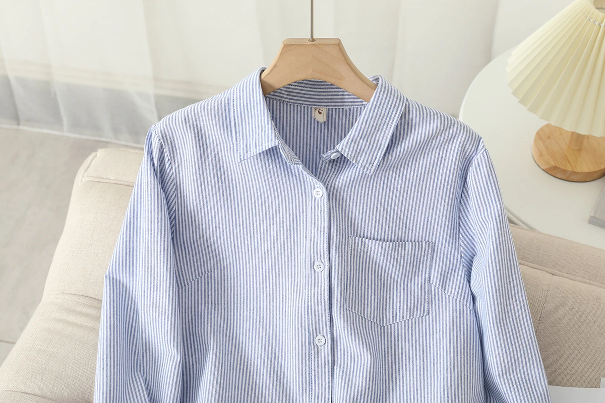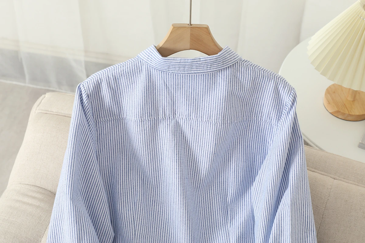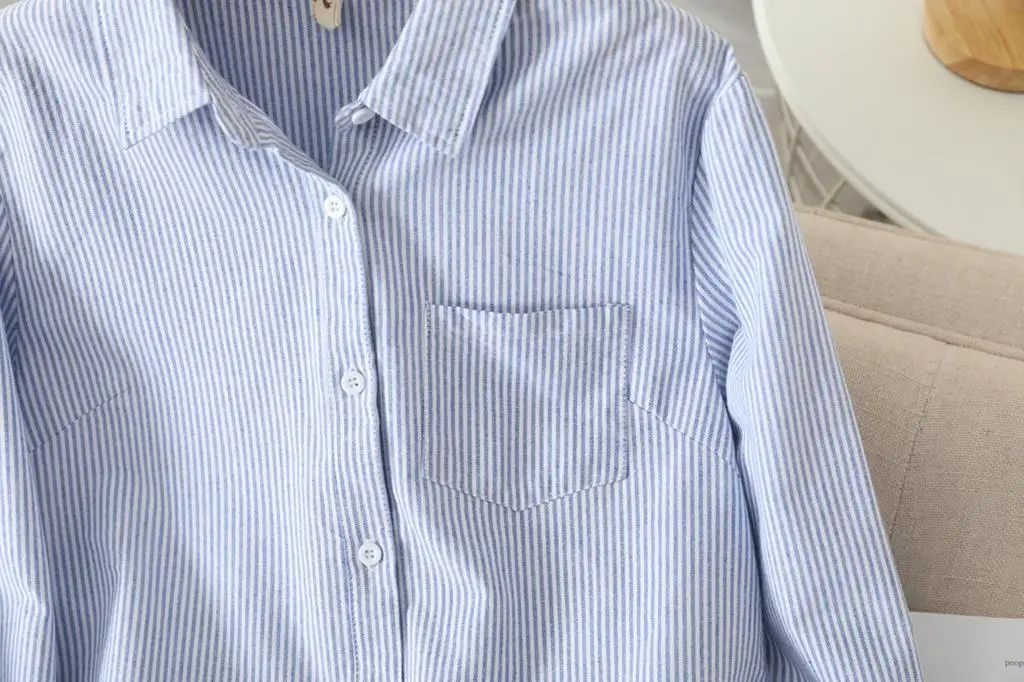 Camisa Oxford feminina casual de algodão, blusa listrada e tops, camisas simples de senhora, roupas brancas e azuis, novo, 2023