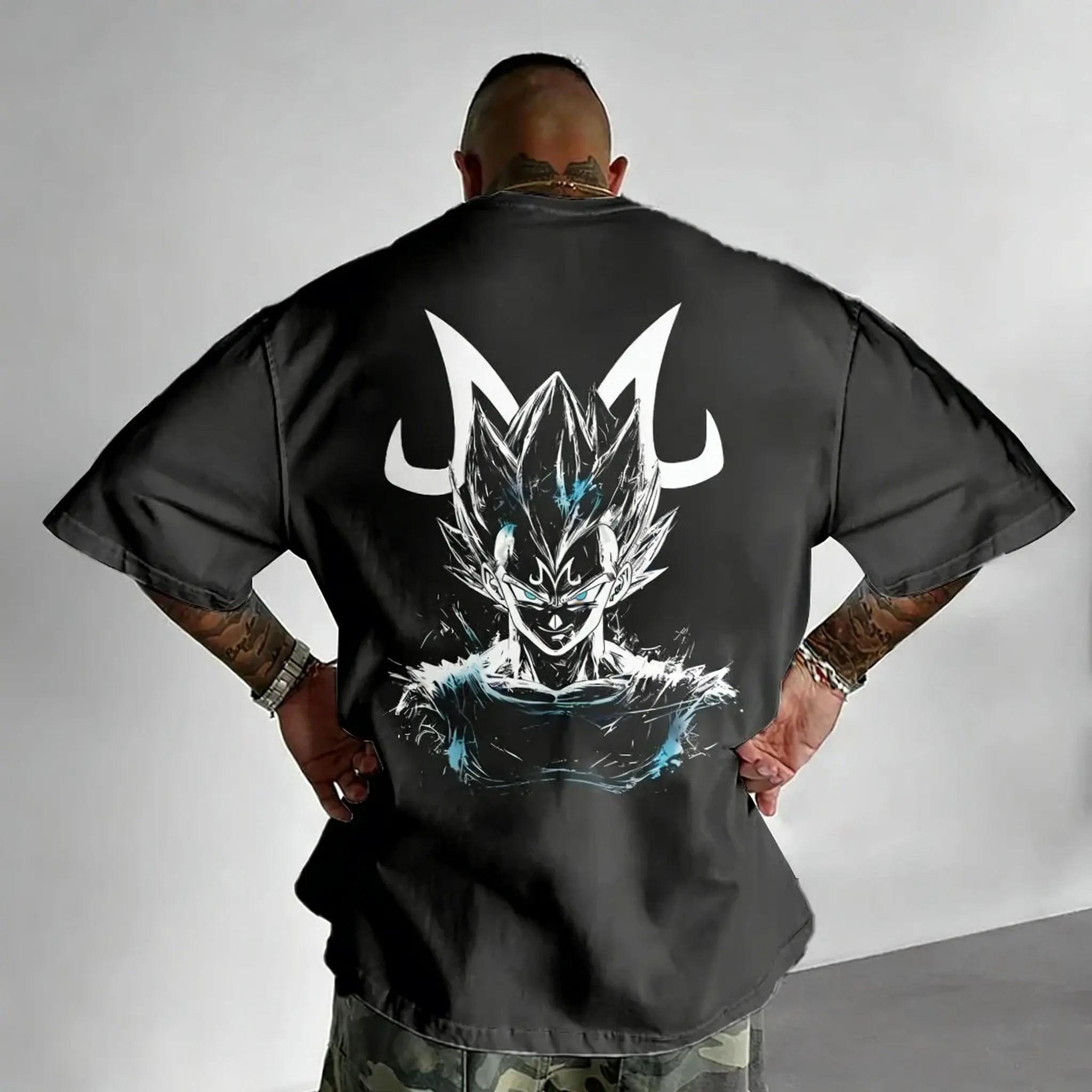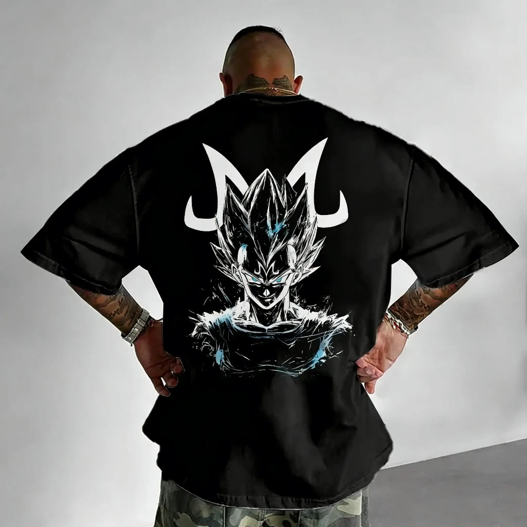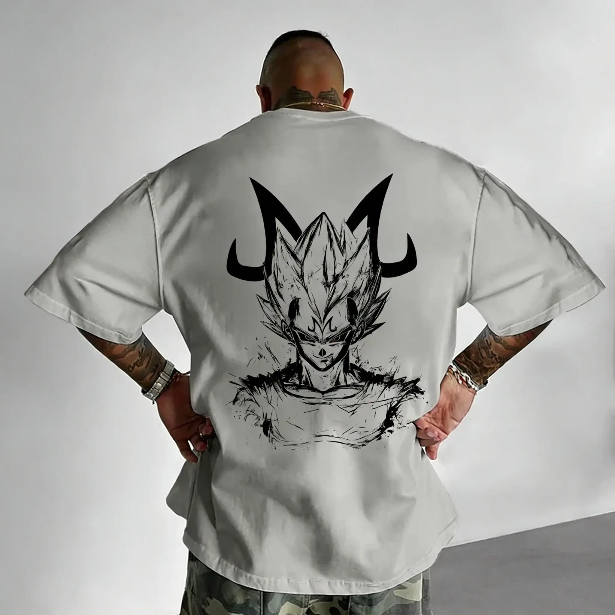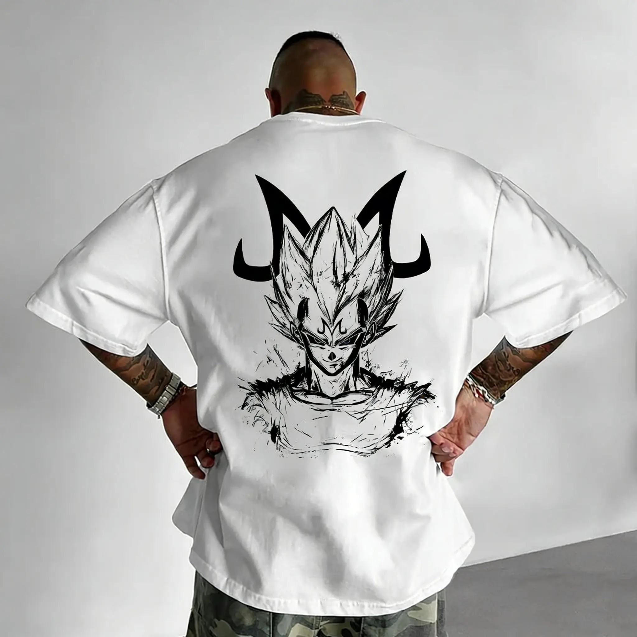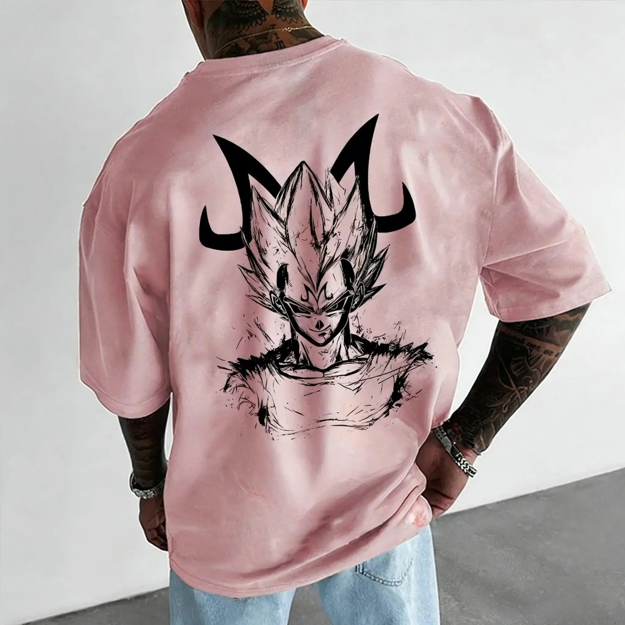 - > Camiseta Dragon Ball Z para Homens e Mulheres, T-Shirt Anime Majin Vegeta, Verão e Primavera, Camisetas de Manga Curta Oversize para Pais e Filhos