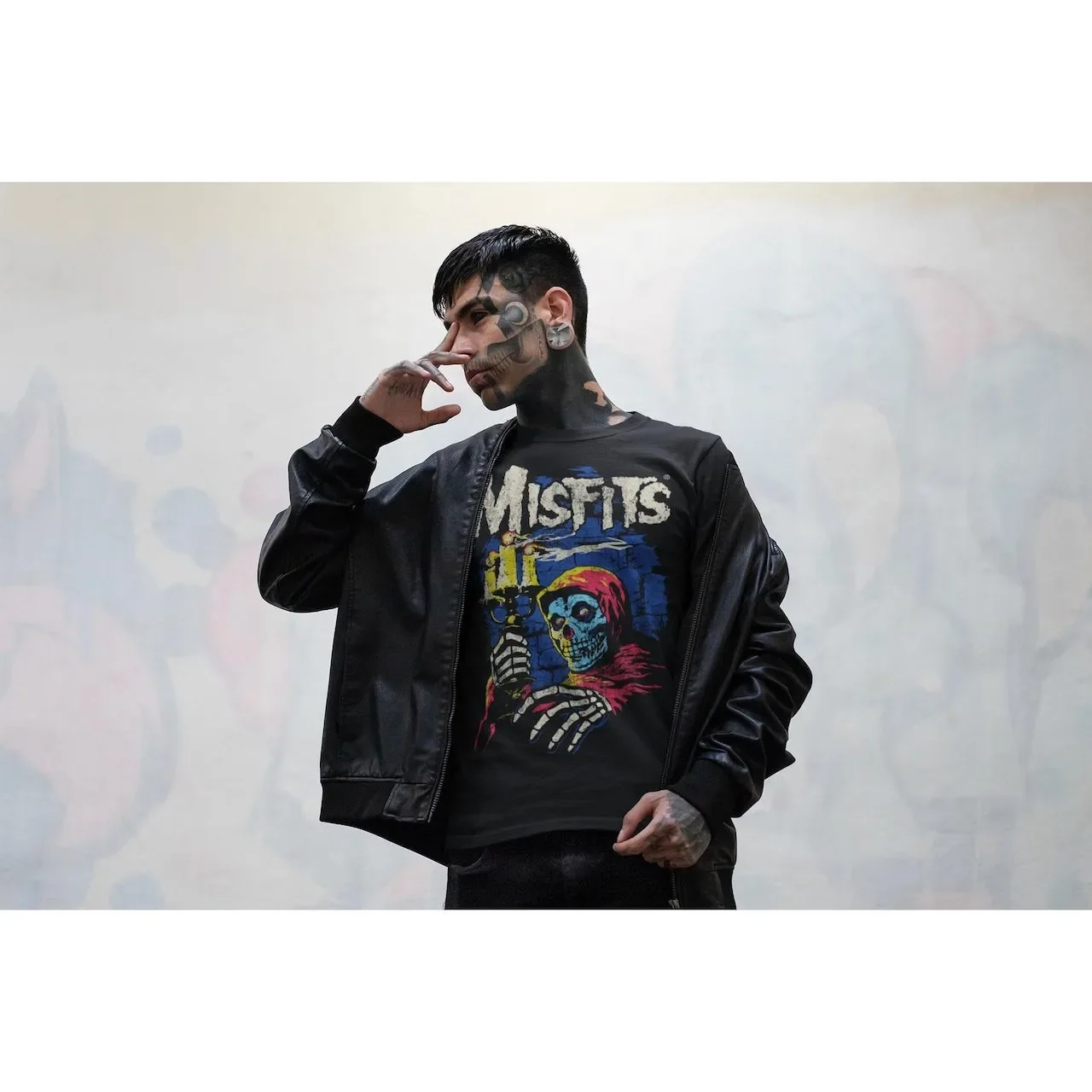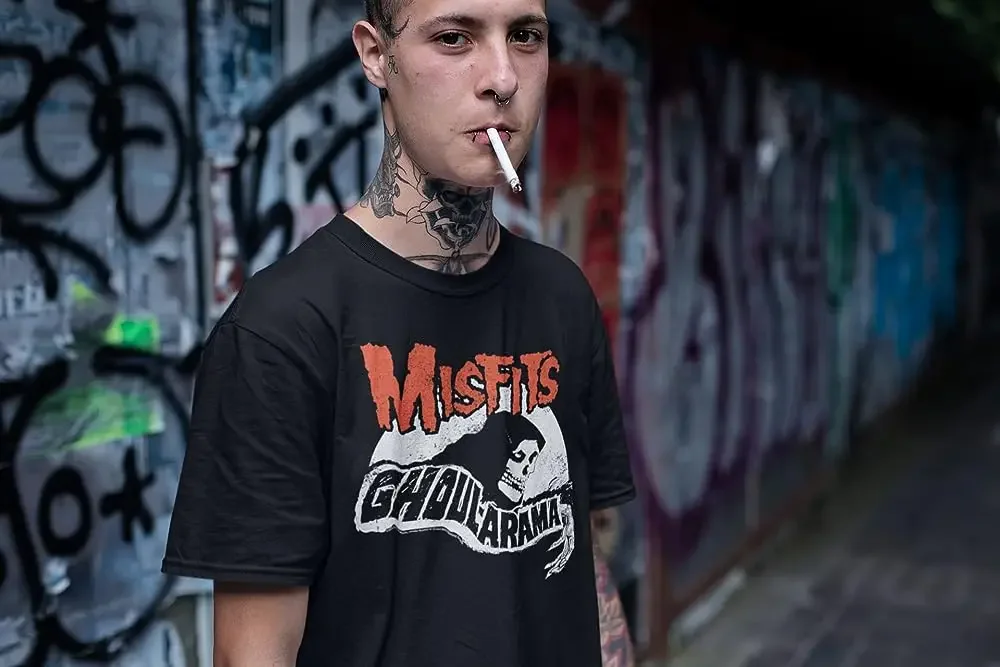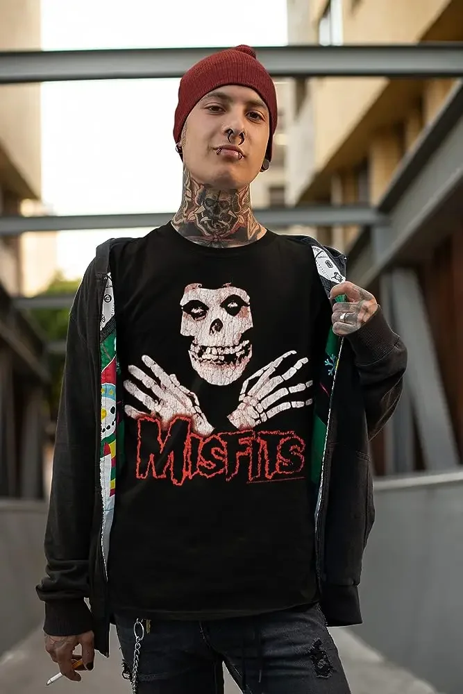 - > Camiseta masculina estilo punk, padrão de caveira de rua retrô, nova moda
