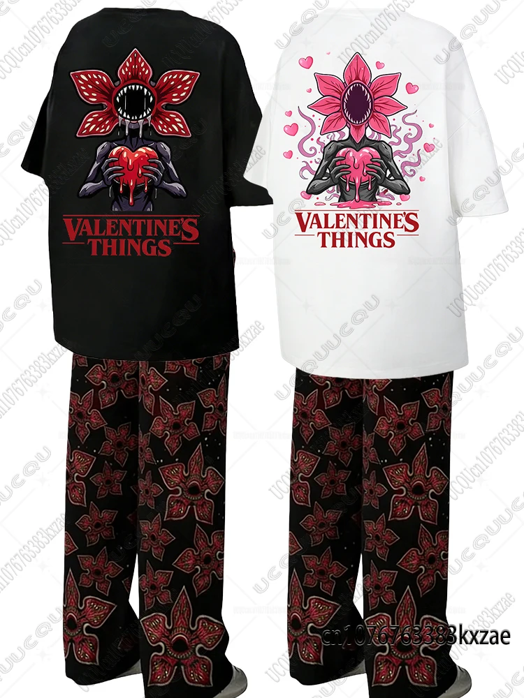 - > Camisetas de Dia dos Namorados 2026 com Calças de Pijama para Casais, Roupas Oversized para Homens e Mulheres, Moda de Casa, Inspiradas no Sucesso de TV Americano