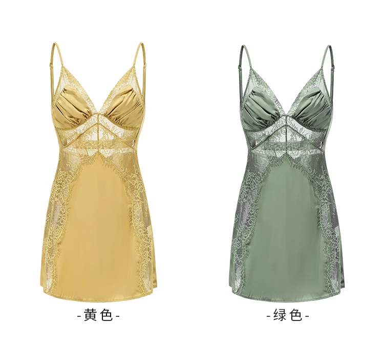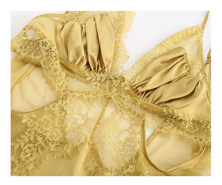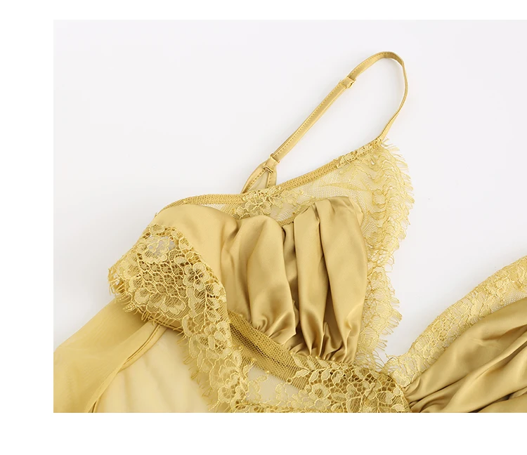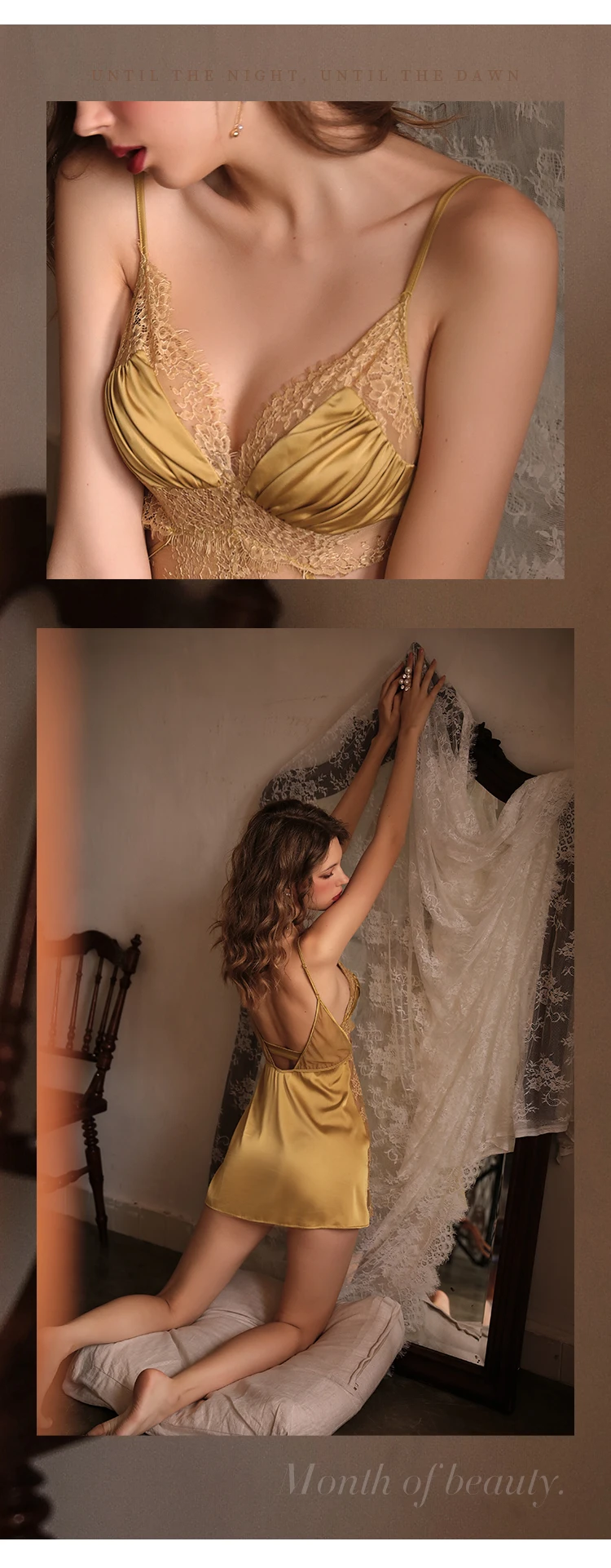- > Camisola de luxo moda de seda sleepwear feminino vestido de noite rendas oco para fora sling vestido sexy sleepwear sem costas nighty