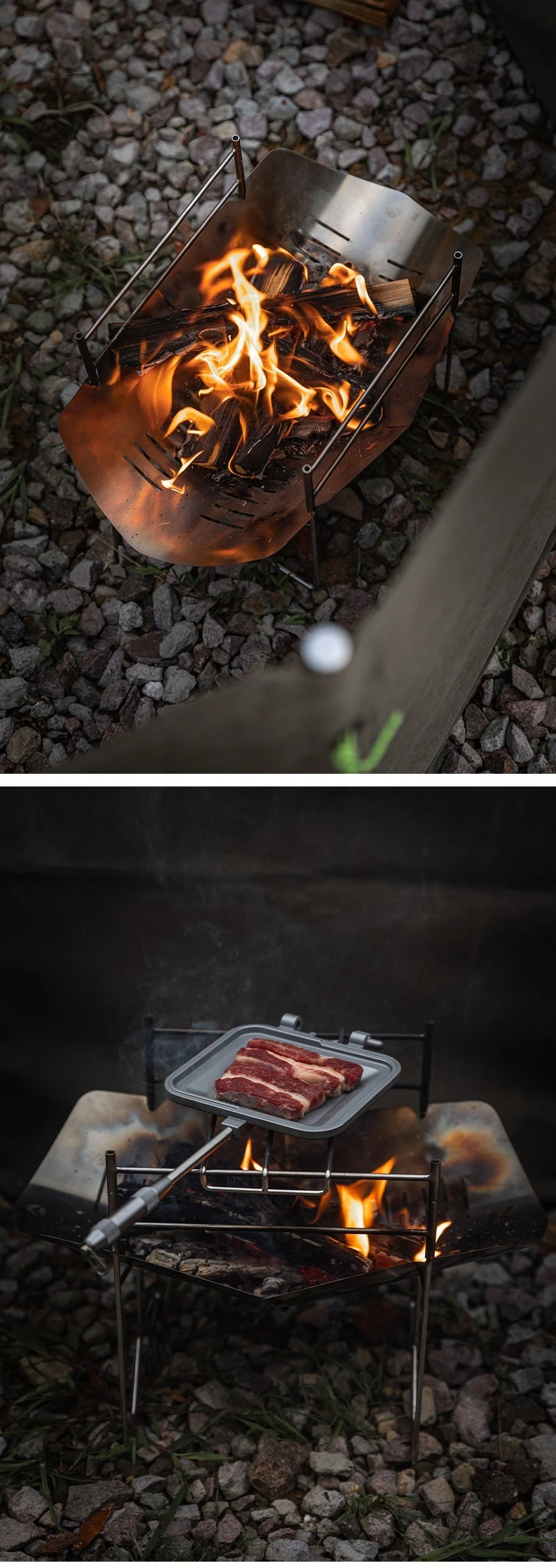 Campingmoon ao ar livre portátil dobrável jardim de aço inoxidável churrasqueira acampamento portátil dobrável acampamento ao ar livre churrasqueira