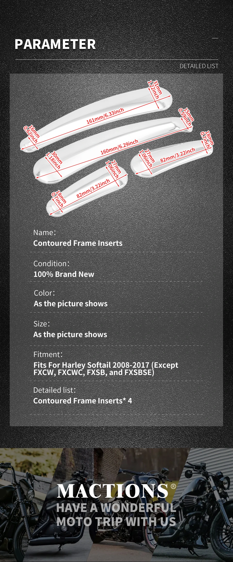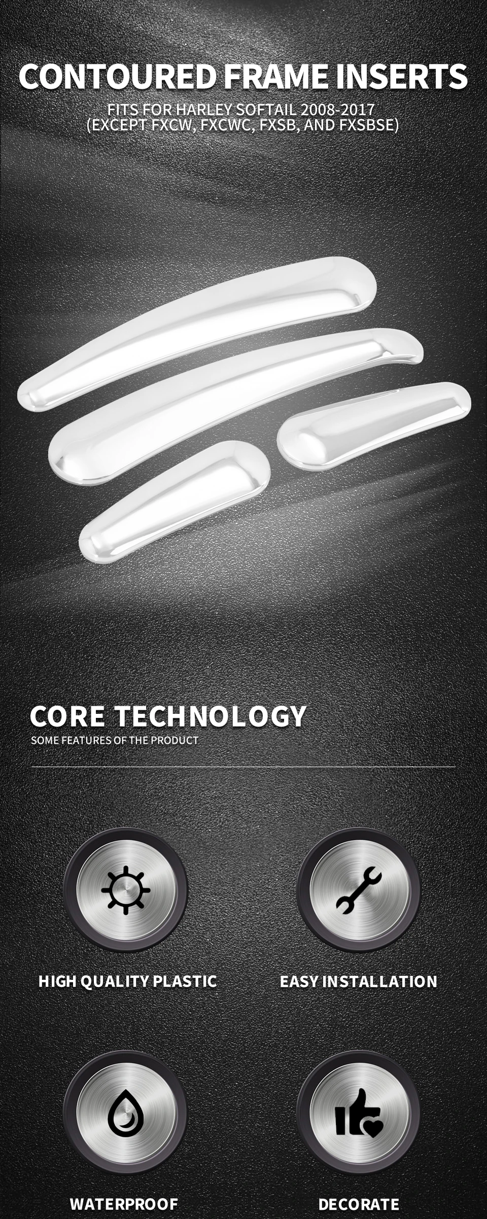 Conjunto de inserções de cor cromada de quatro peças veste-se para qualquer moldura Softail