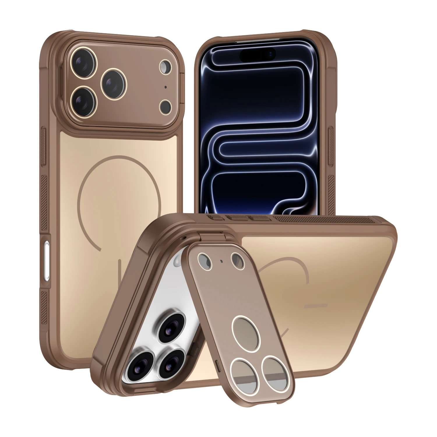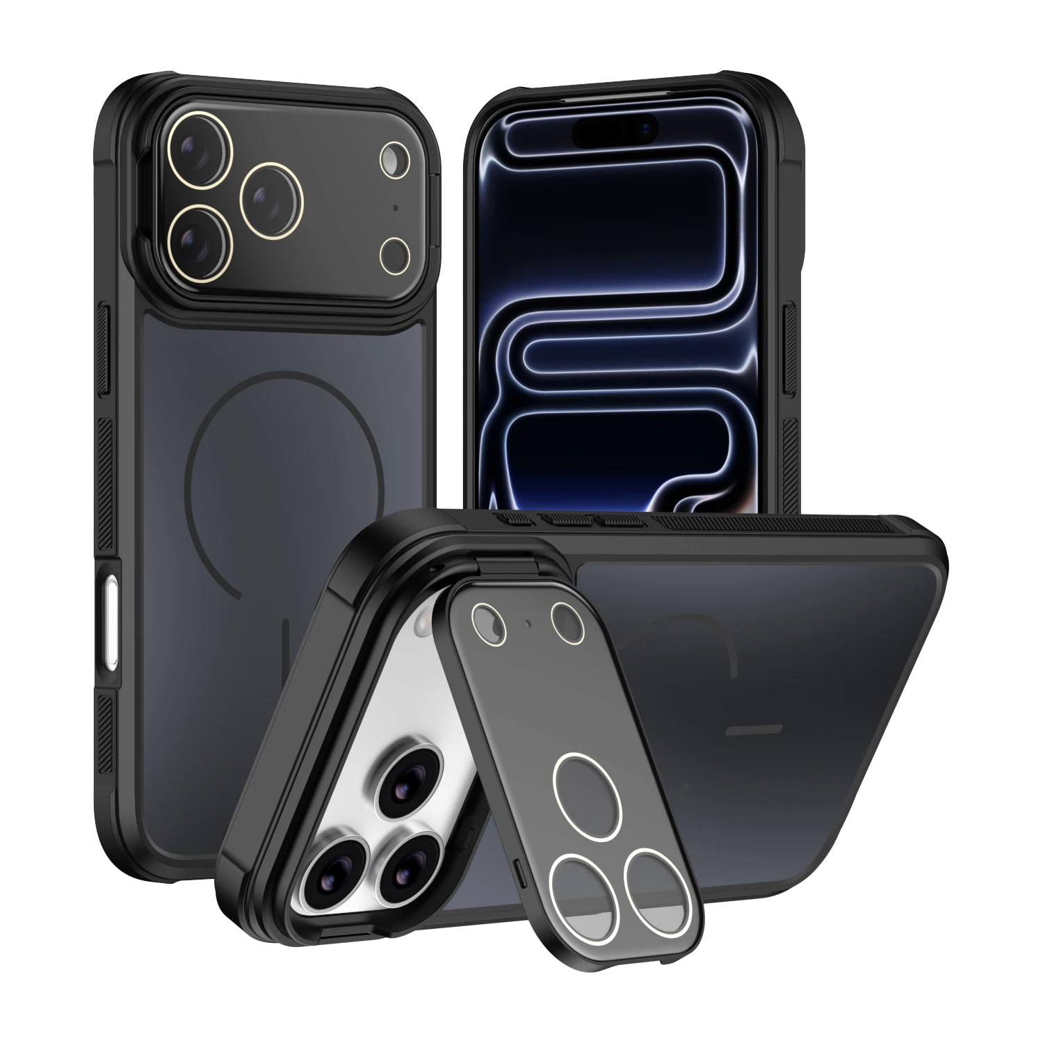- > Capa de Câmera com Suporte Dobrável e Tampa de Lente para iPhone 17 16 Pro Max Air 11 12 13 14 15 Pro Max Plus, Armadura Fosca para Carregador Magsafe
