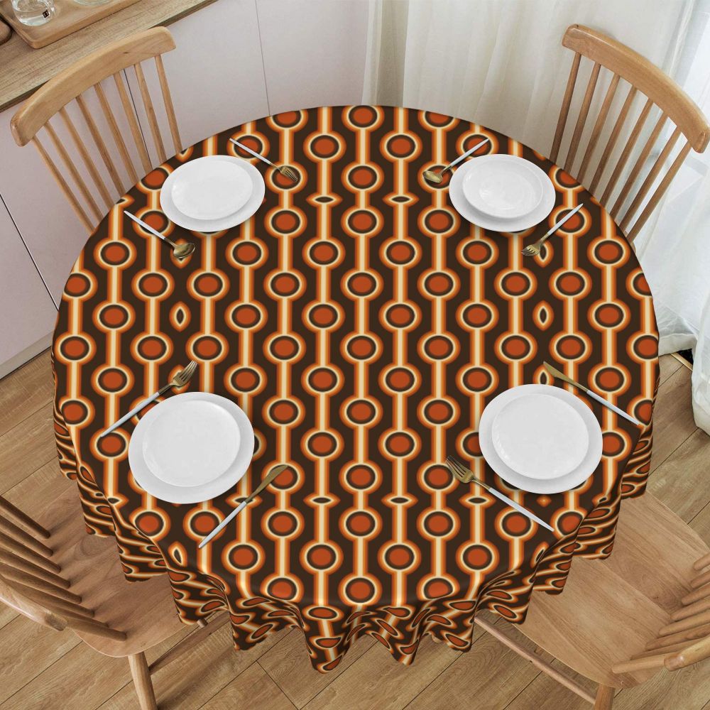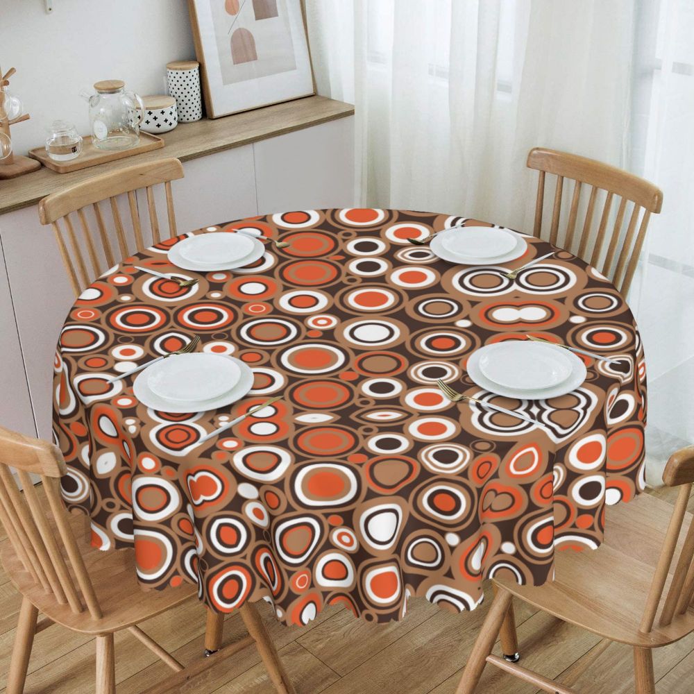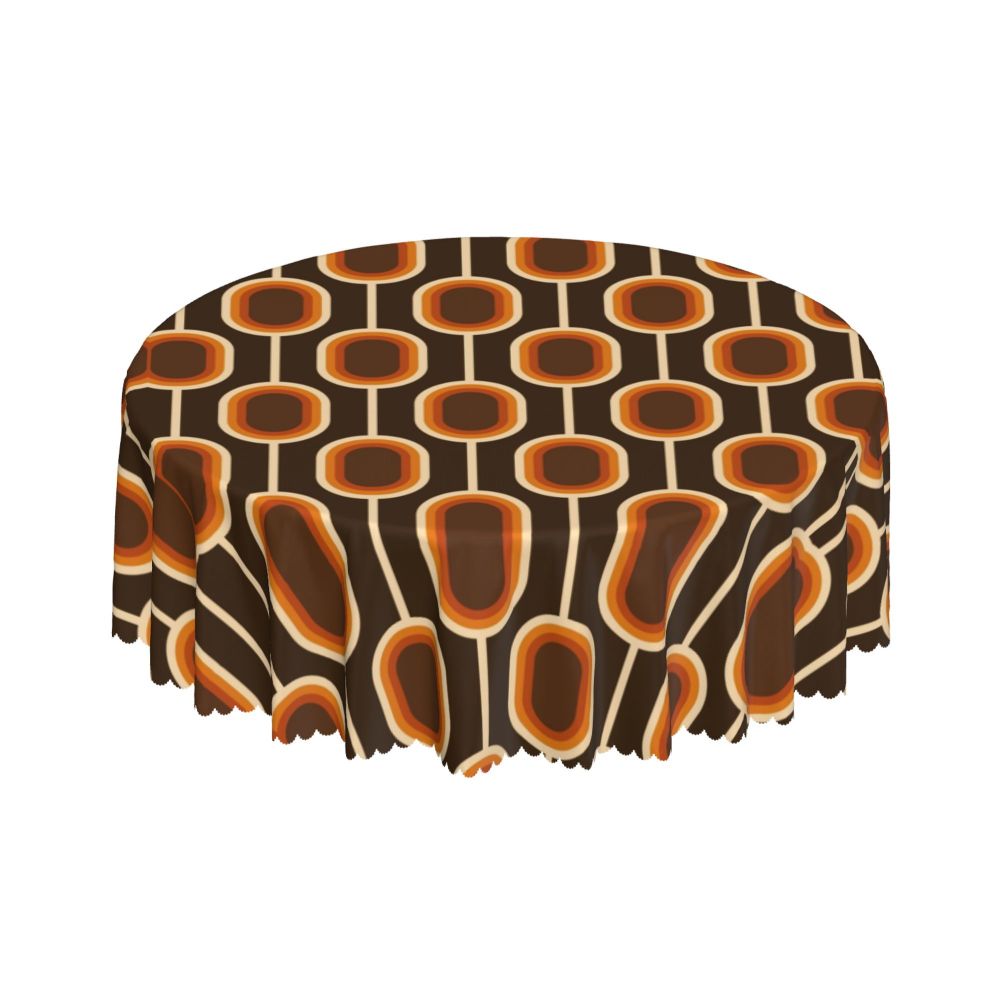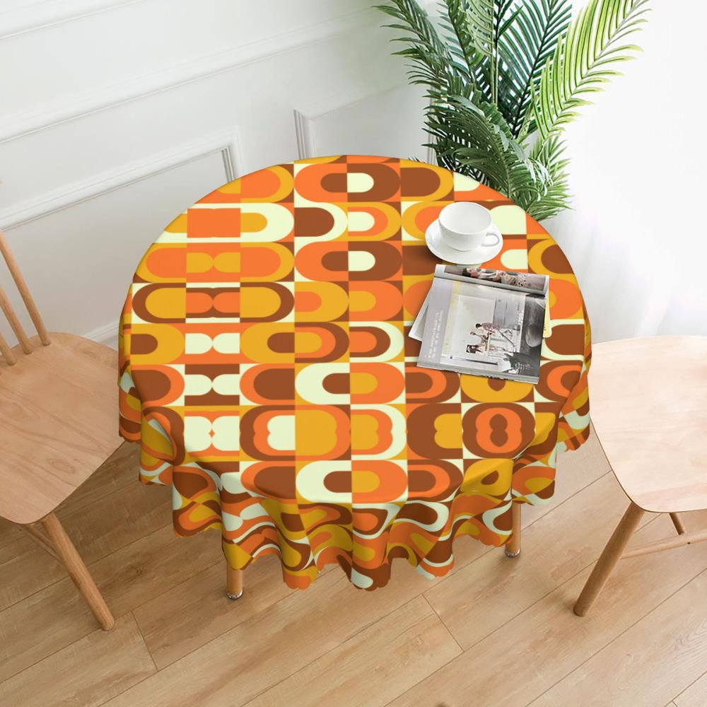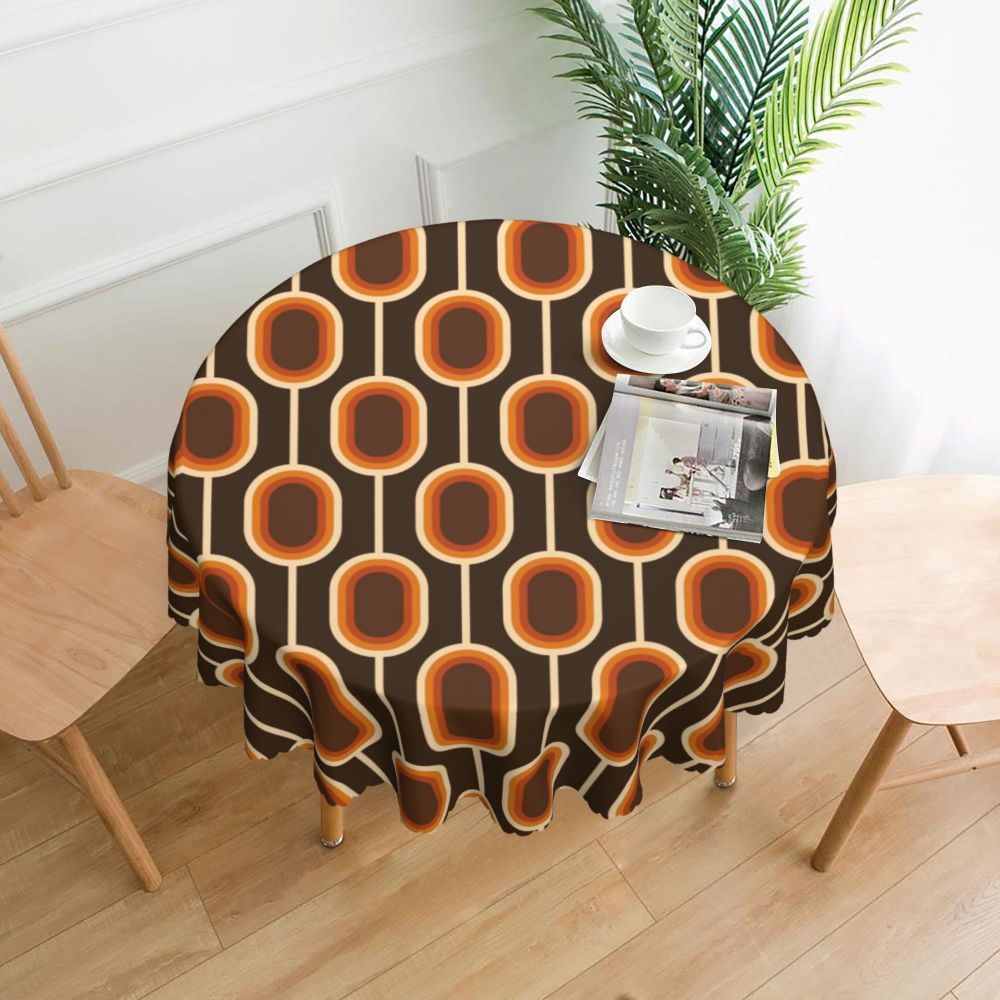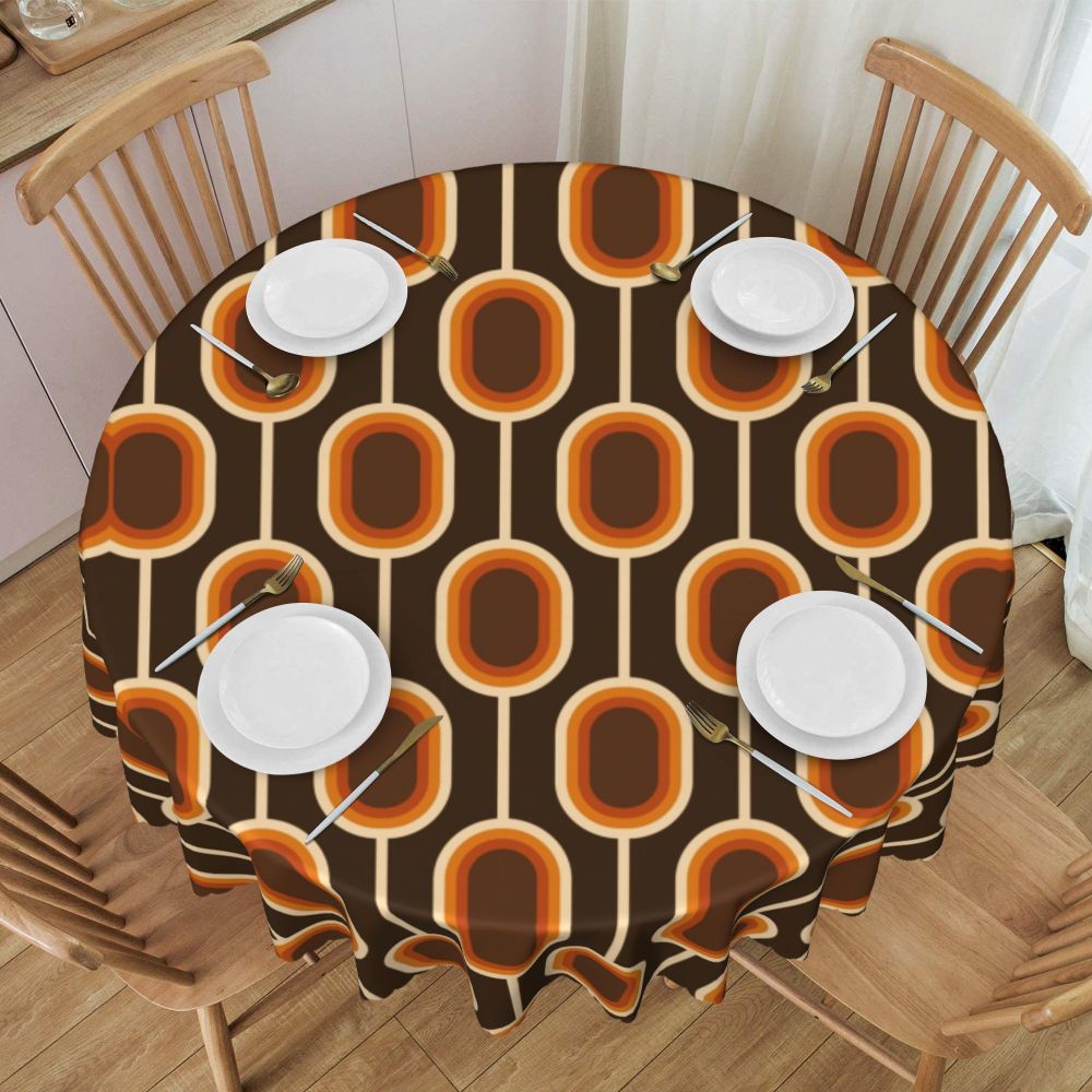 Capa de mesa para jantar de cozinha, padrão anos 70, retro, tons laranja e marrom, redonda, anos 70