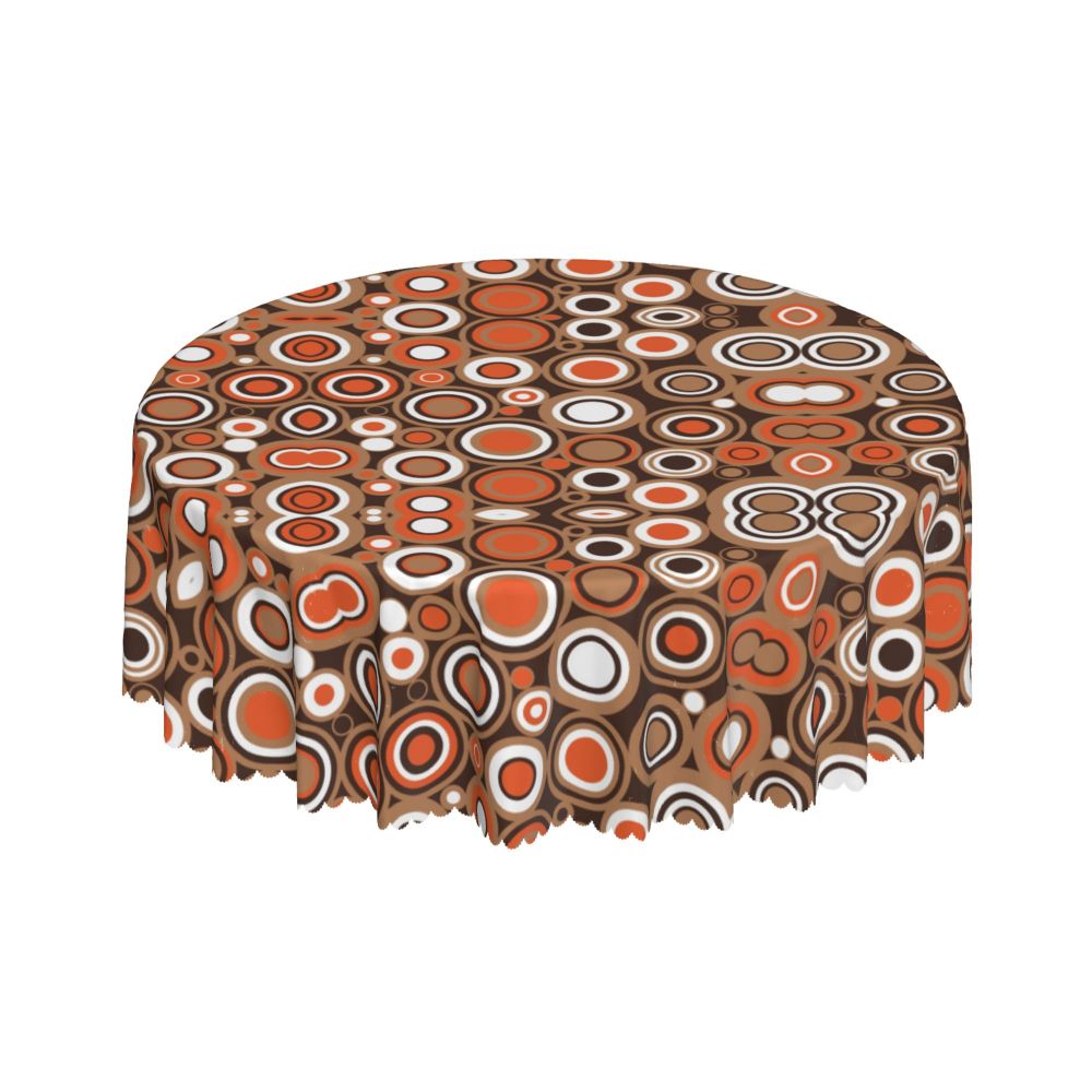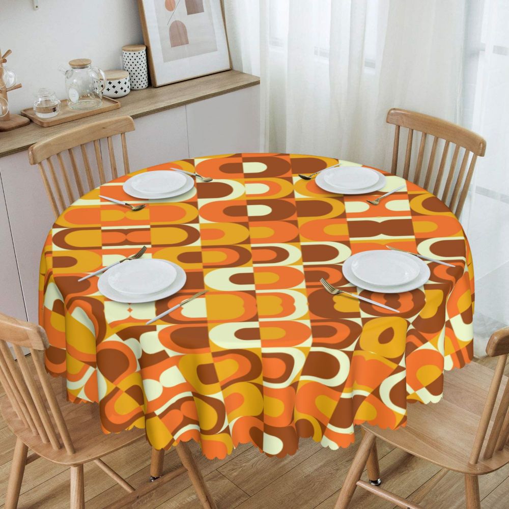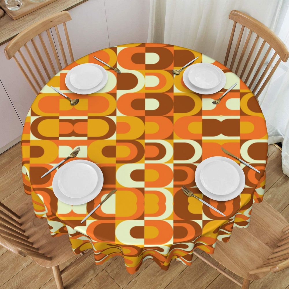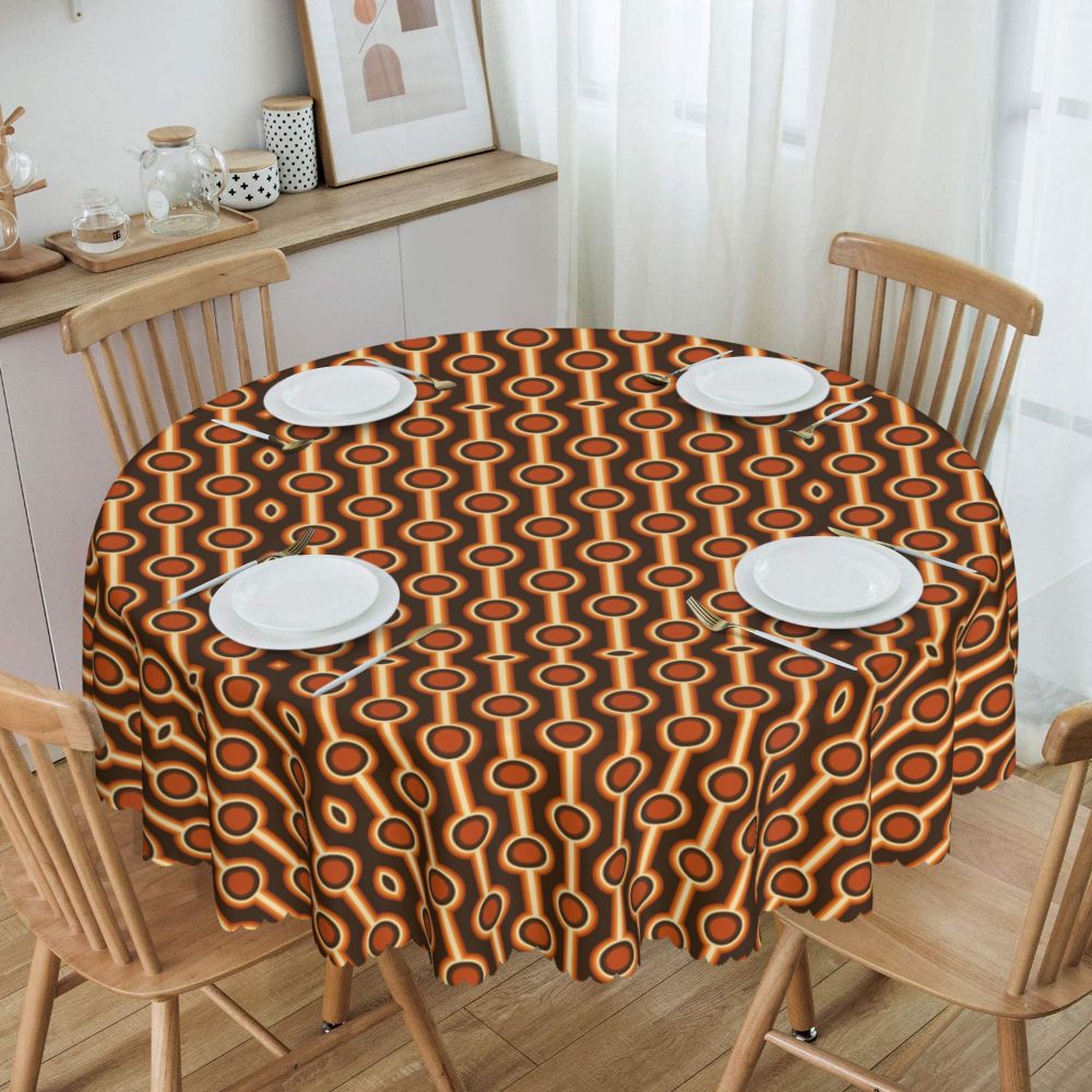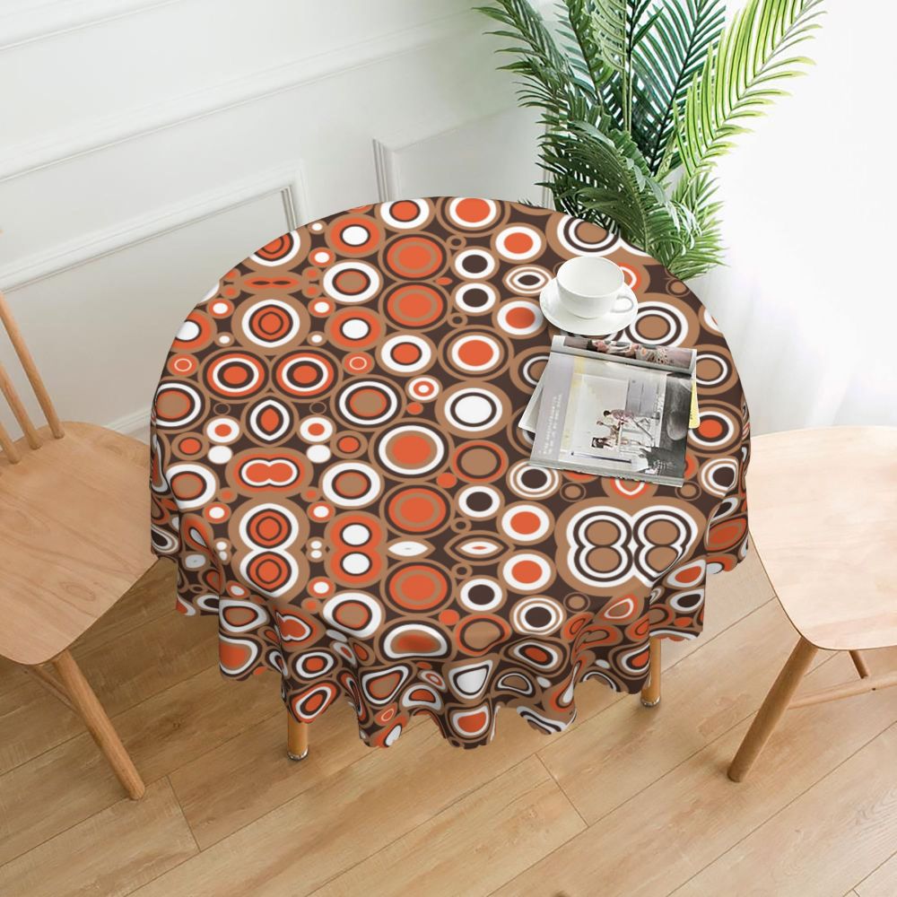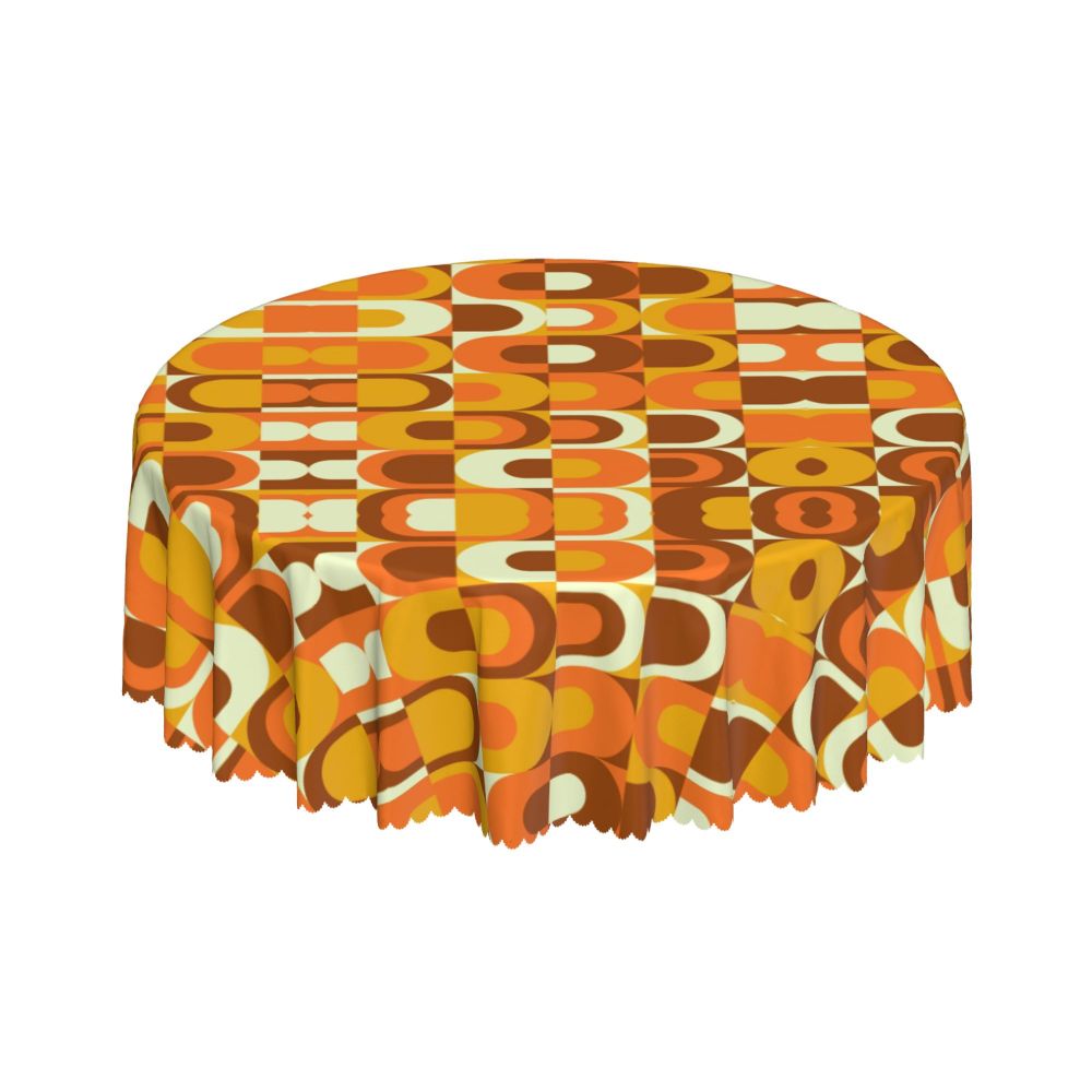 Capa de mesa para jantar de cozinha, padrão anos 70, retro, tons laranja e marrom, redonda, anos 70