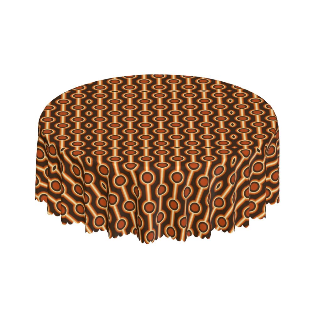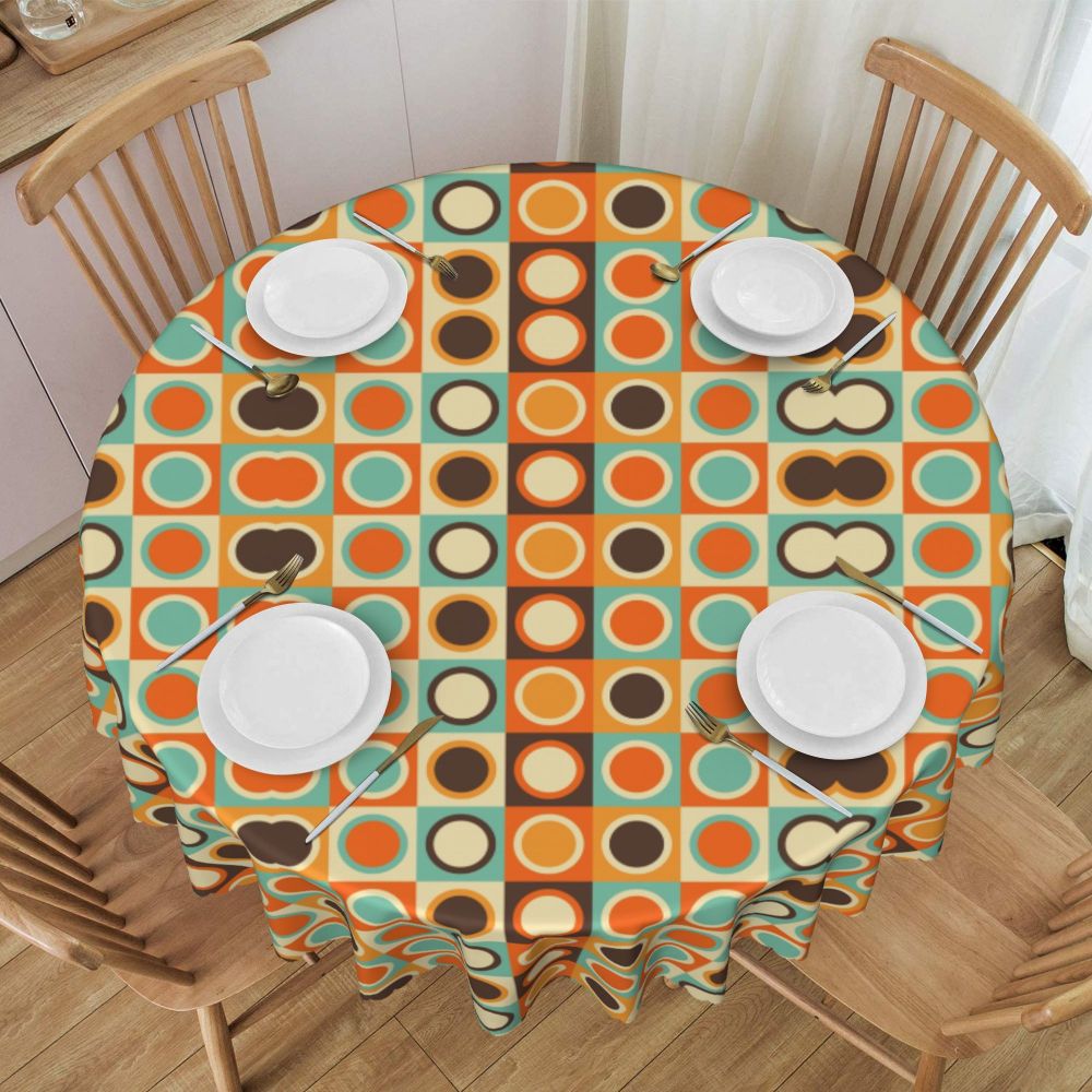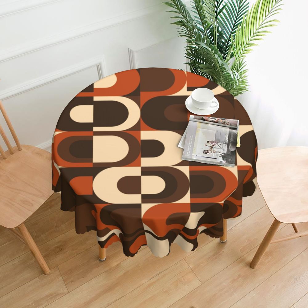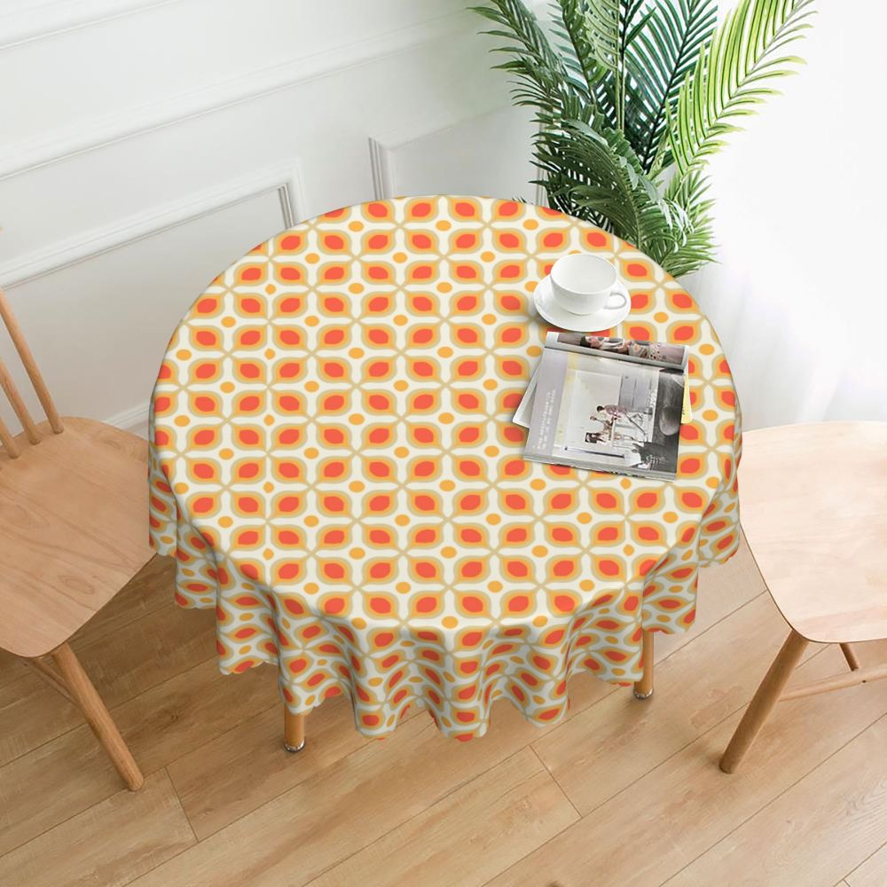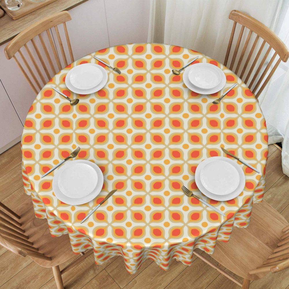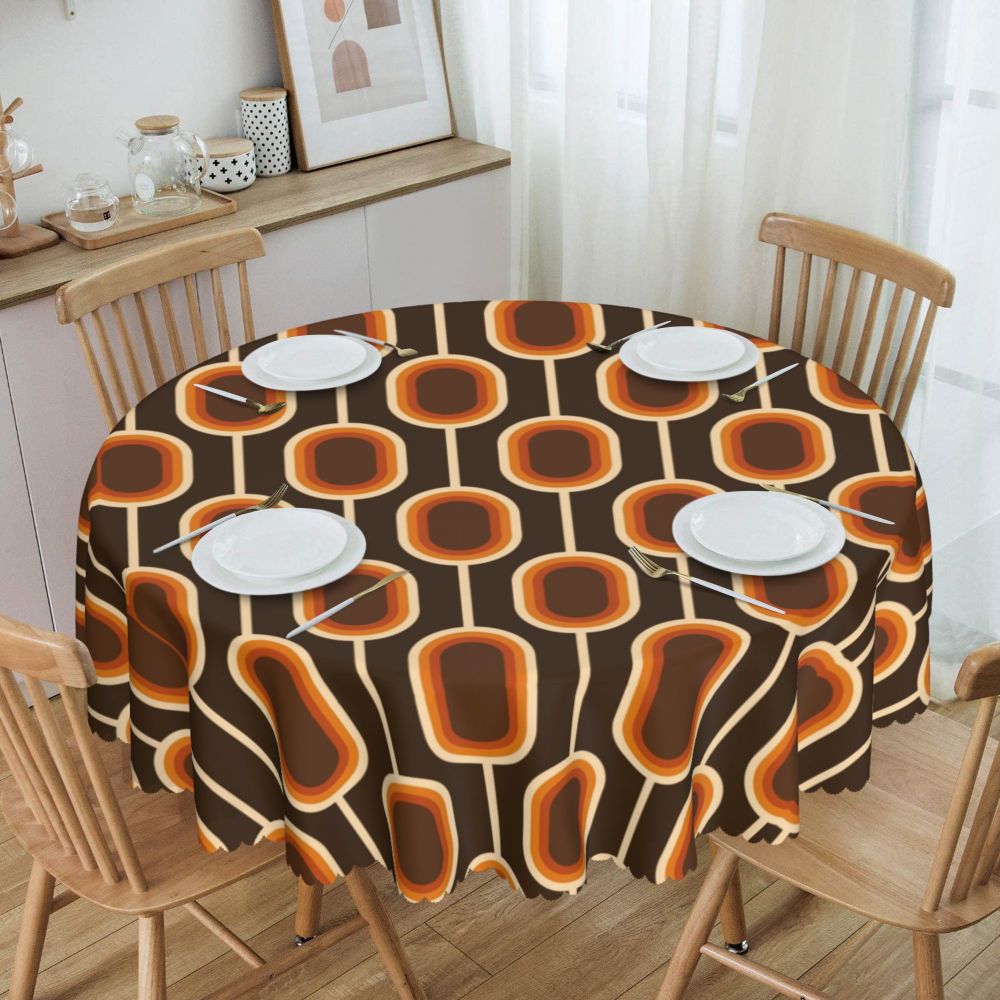 Capa de mesa para jantar de cozinha, padrão anos 70, retro, tons laranja e marrom, redonda, anos 70