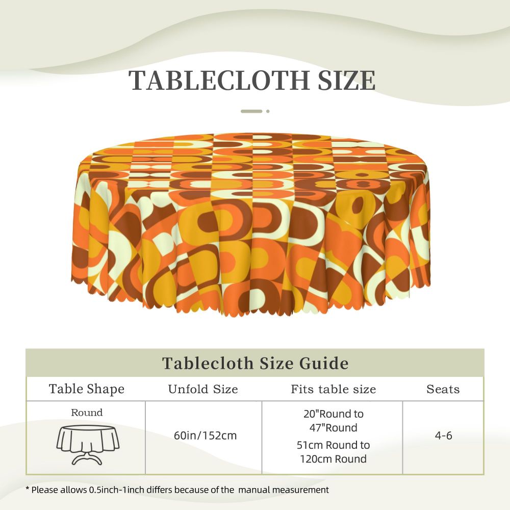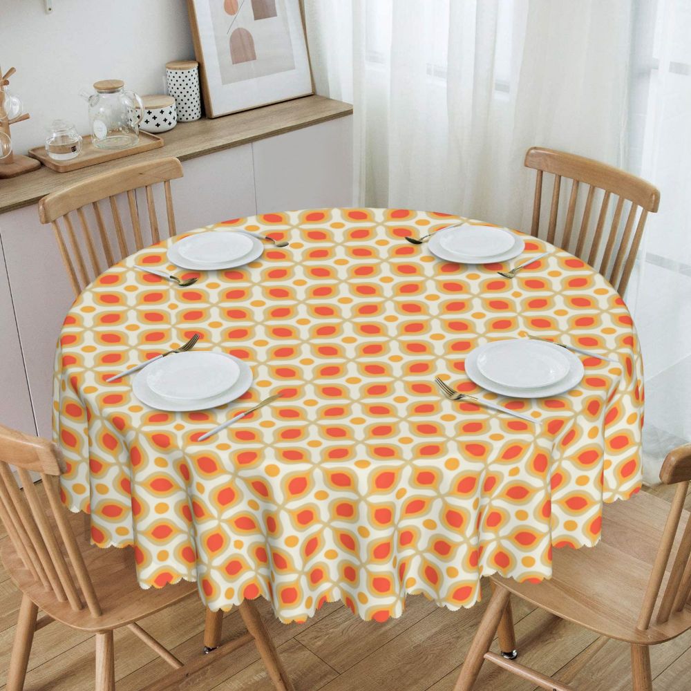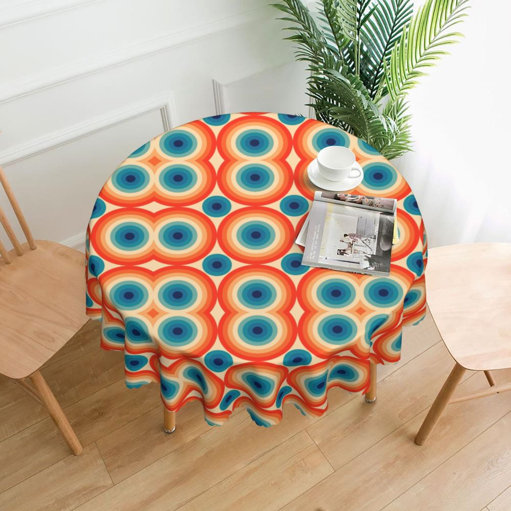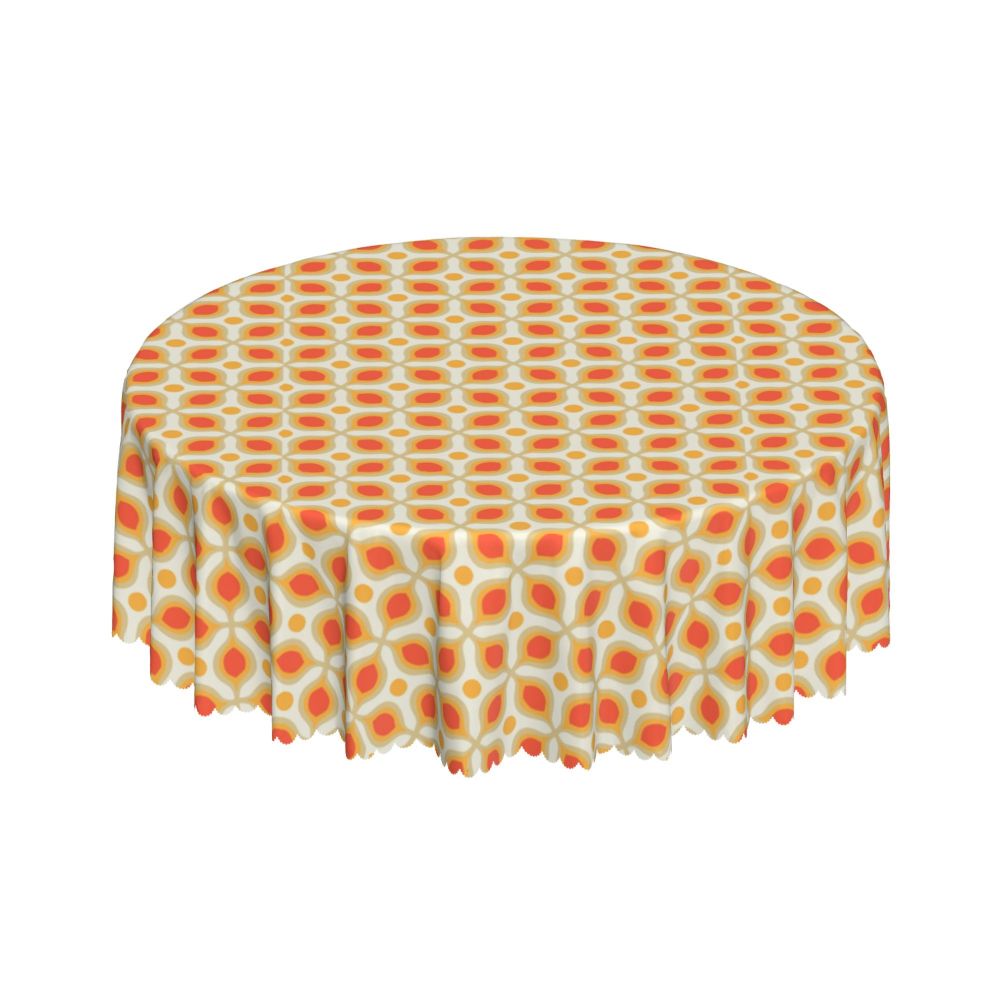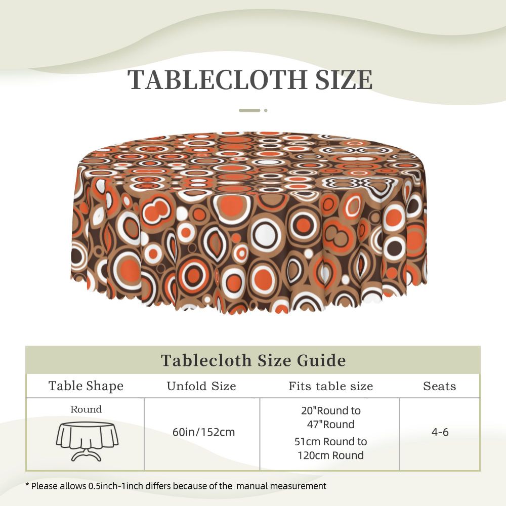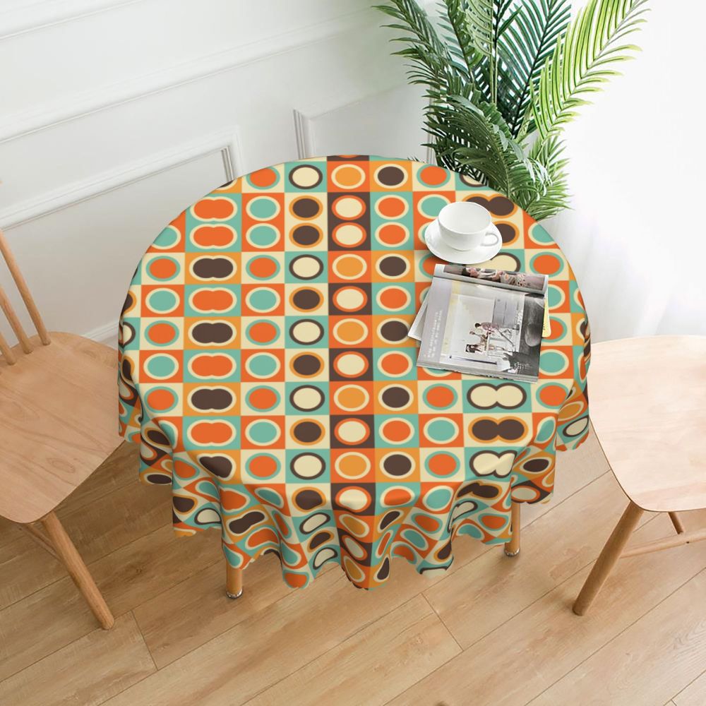Capa de mesa para jantar de cozinha, padrão anos 70, retro, tons laranja e marrom, redonda, anos 70