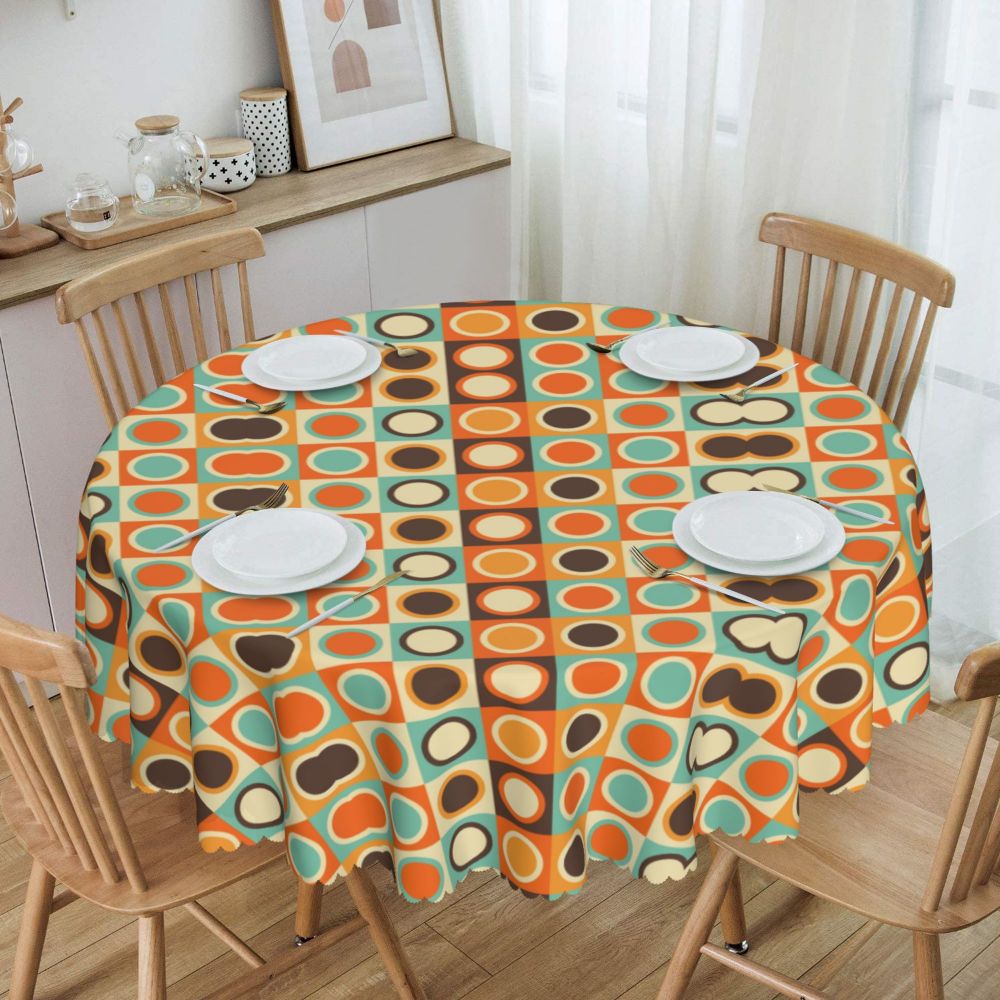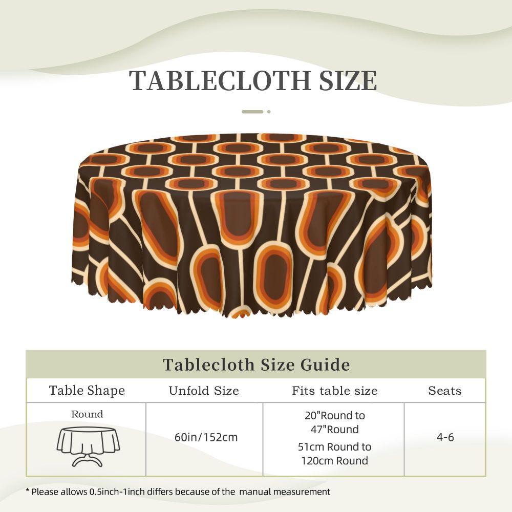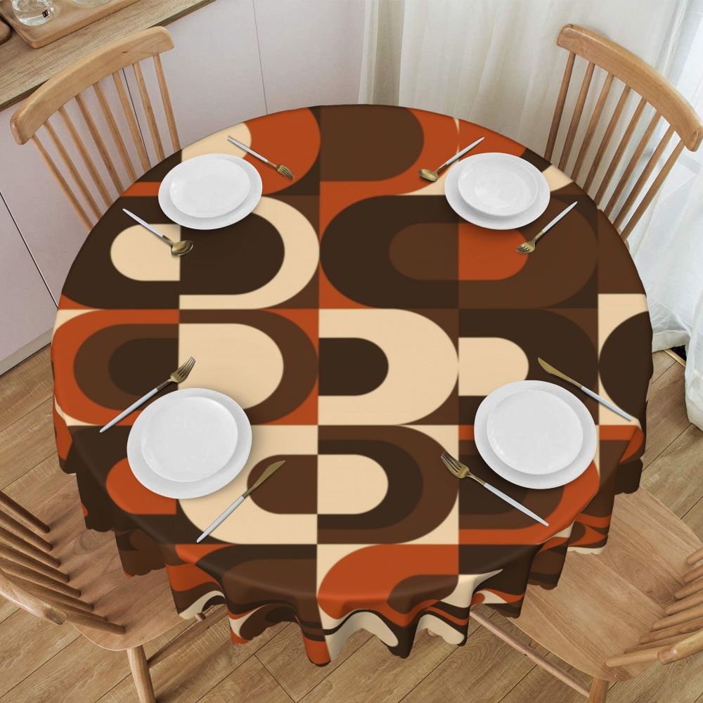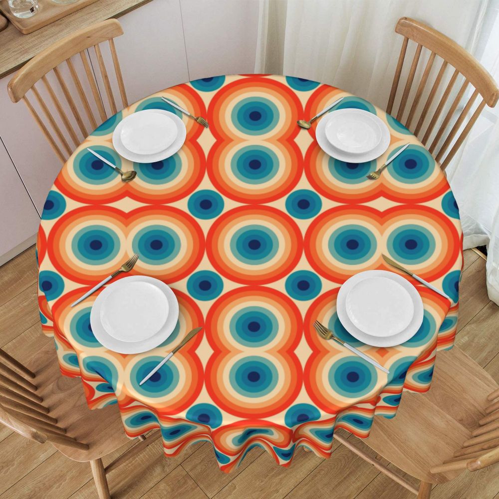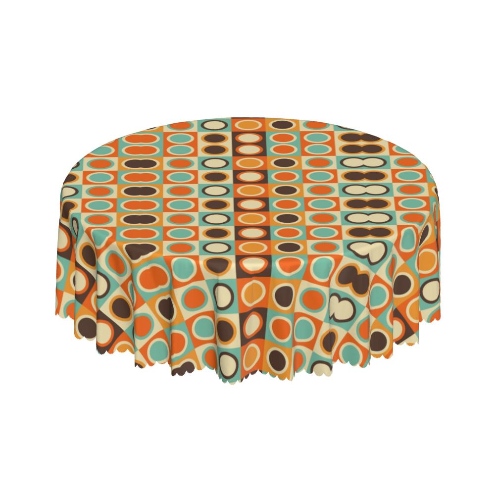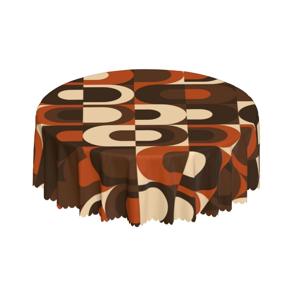 Capa de mesa para jantar de cozinha, padrão anos 70, retro, tons laranja e marrom, redonda, anos 70